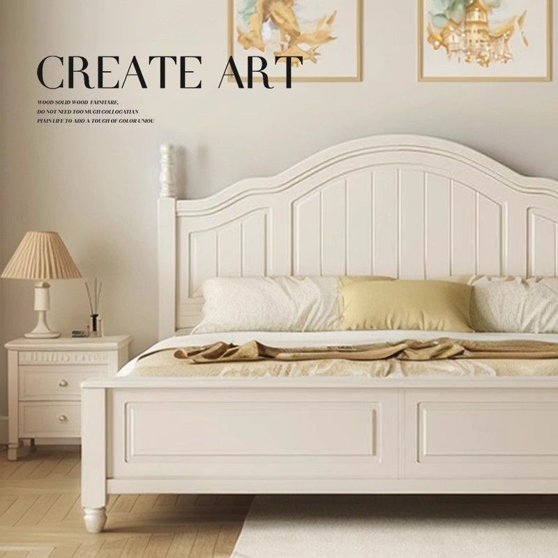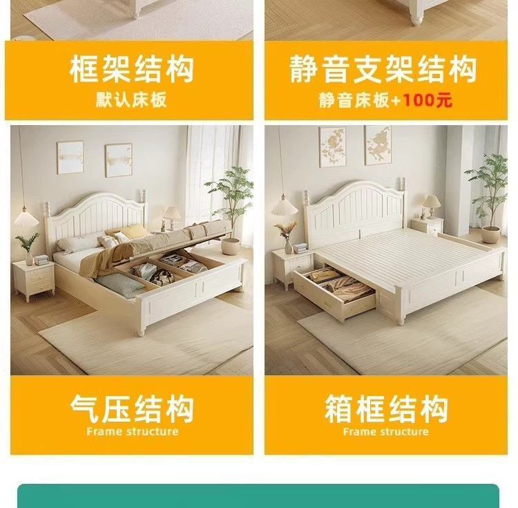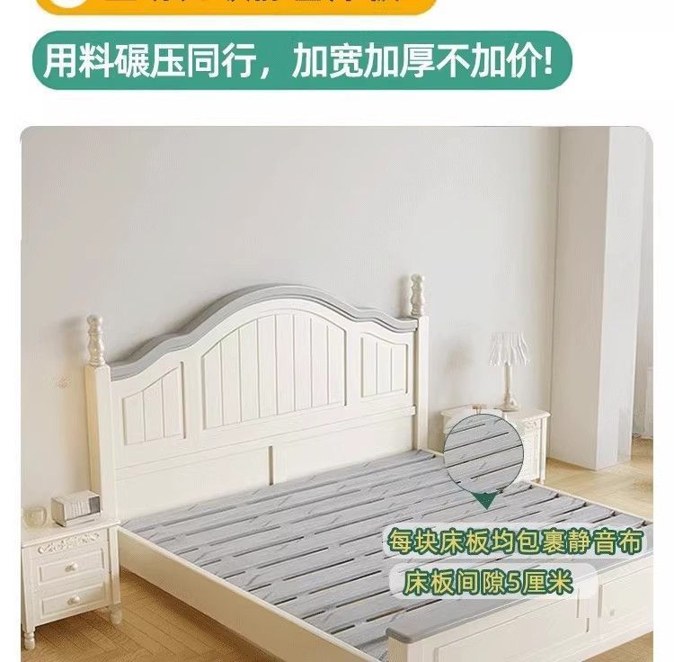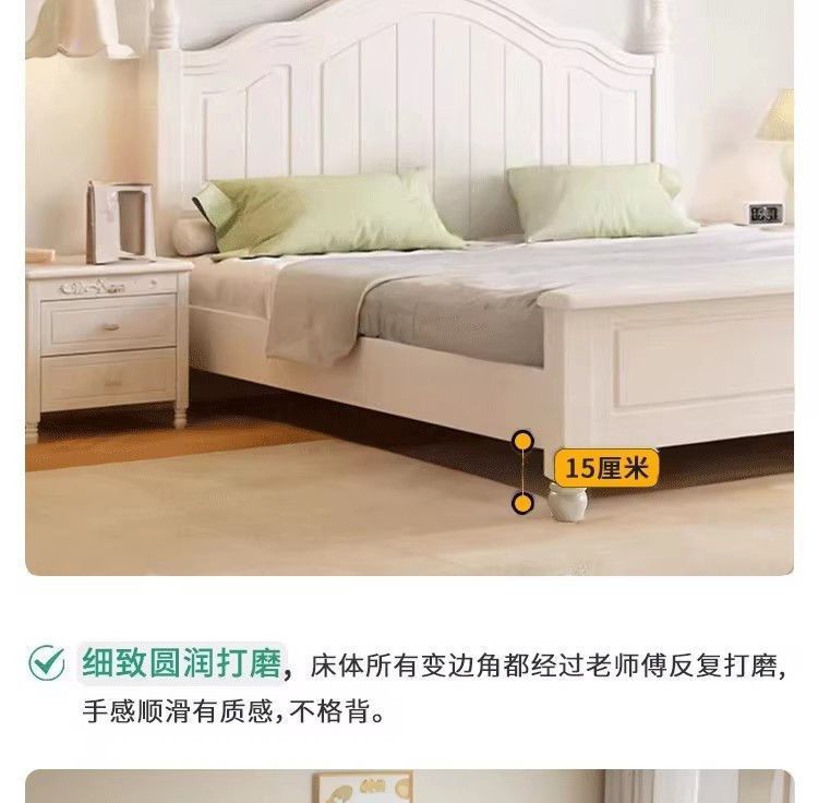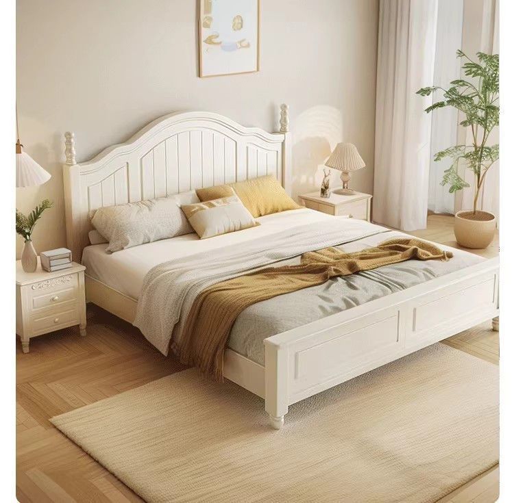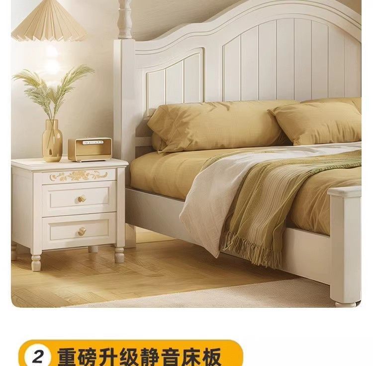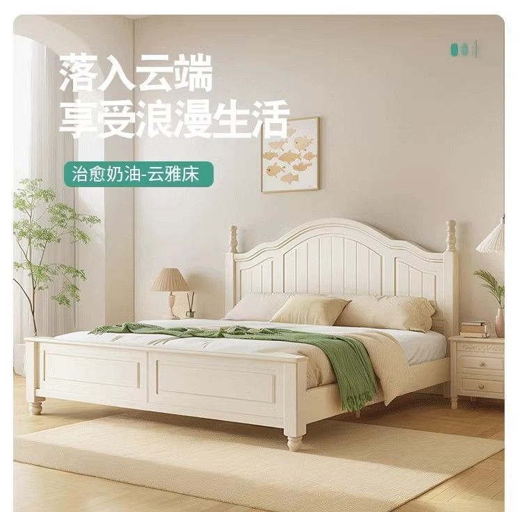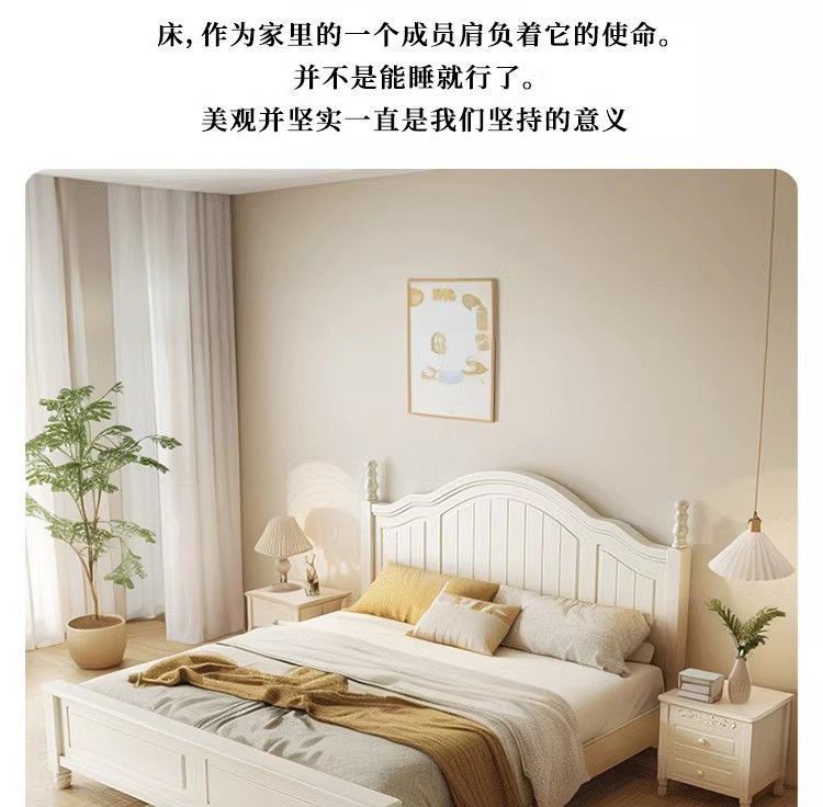 화이트 아메리칸 심플 스타일 모던 더블 우드 침대 1.8m 프렌치 더블 침대 1.5 미터 프린세스 홈 크림 스타일스토어 가기