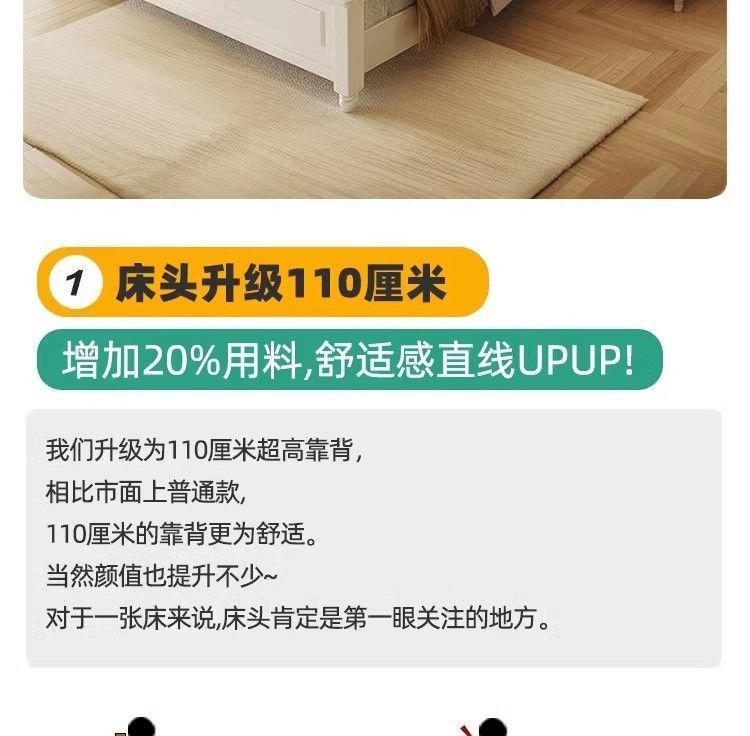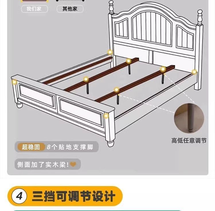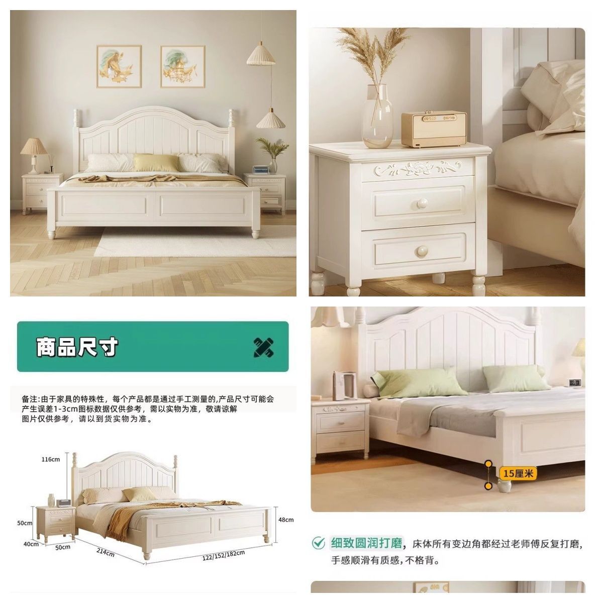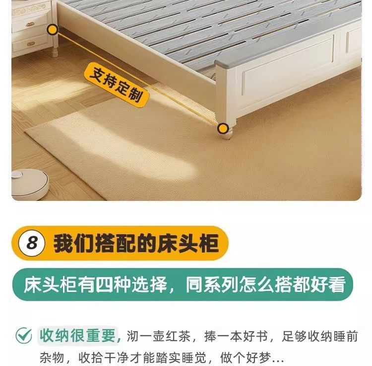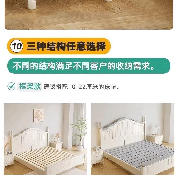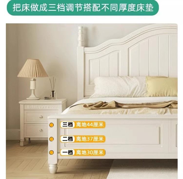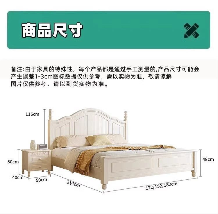 화이트 아메리칸 심플 스타일 모던 더블 우드 침대 1.8m 프렌치 더블 침대 1.5 미터 프린세스 홈 크림 스타일스토어 가기