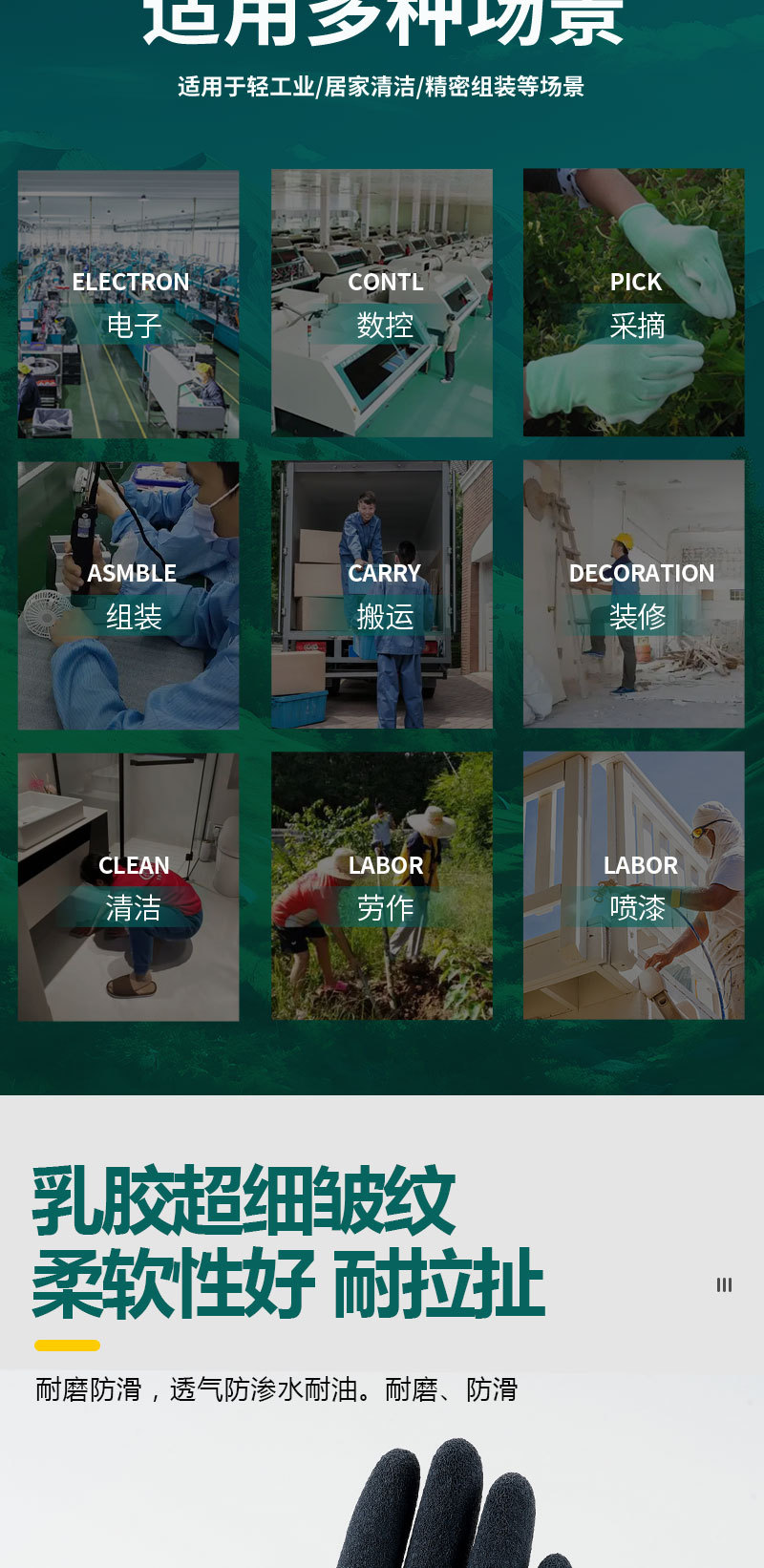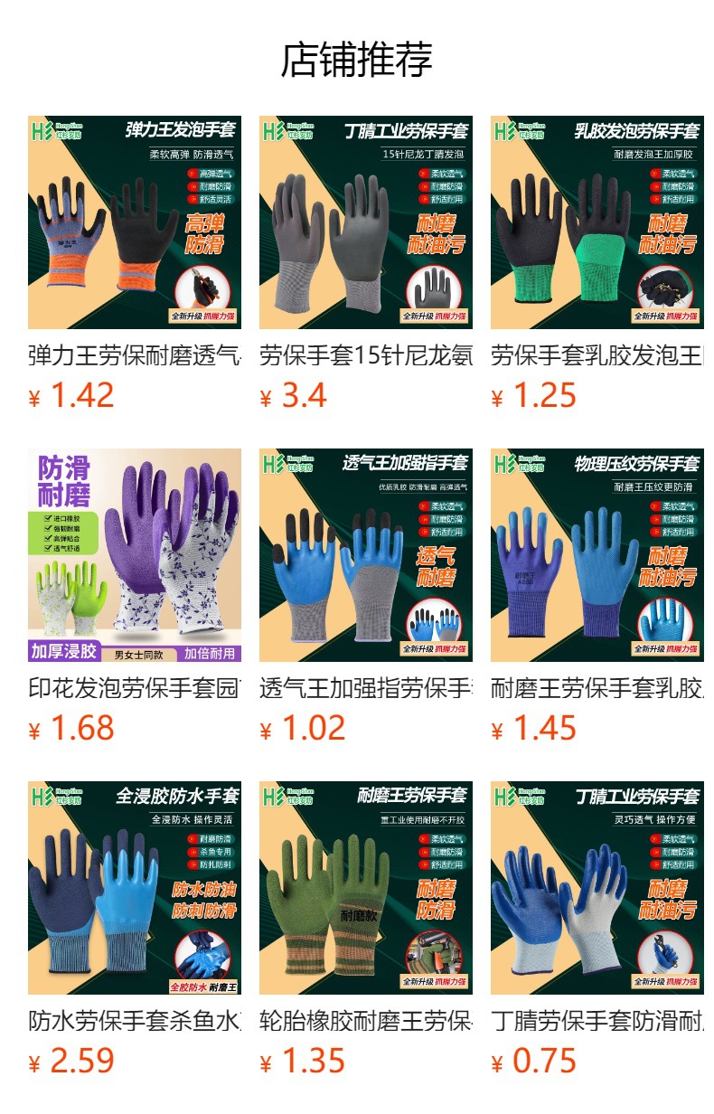 일본산 라텍스 미끄럼 방지 내마모성 통기성 공장 운반 물류 원예 보호 내구성 작업 보호 장갑 경량 통기성스토어 가기