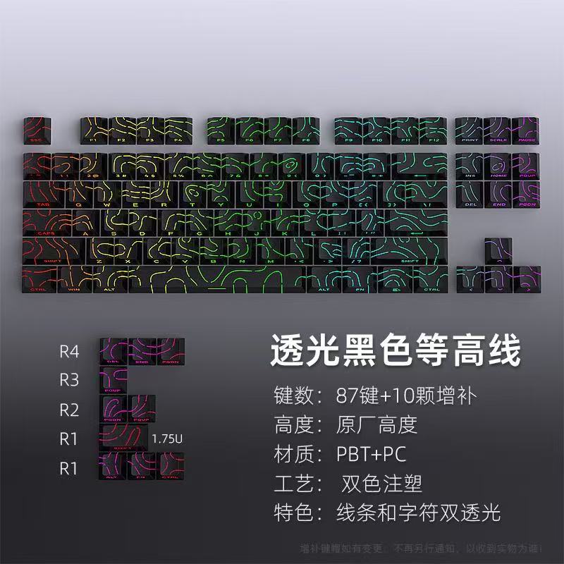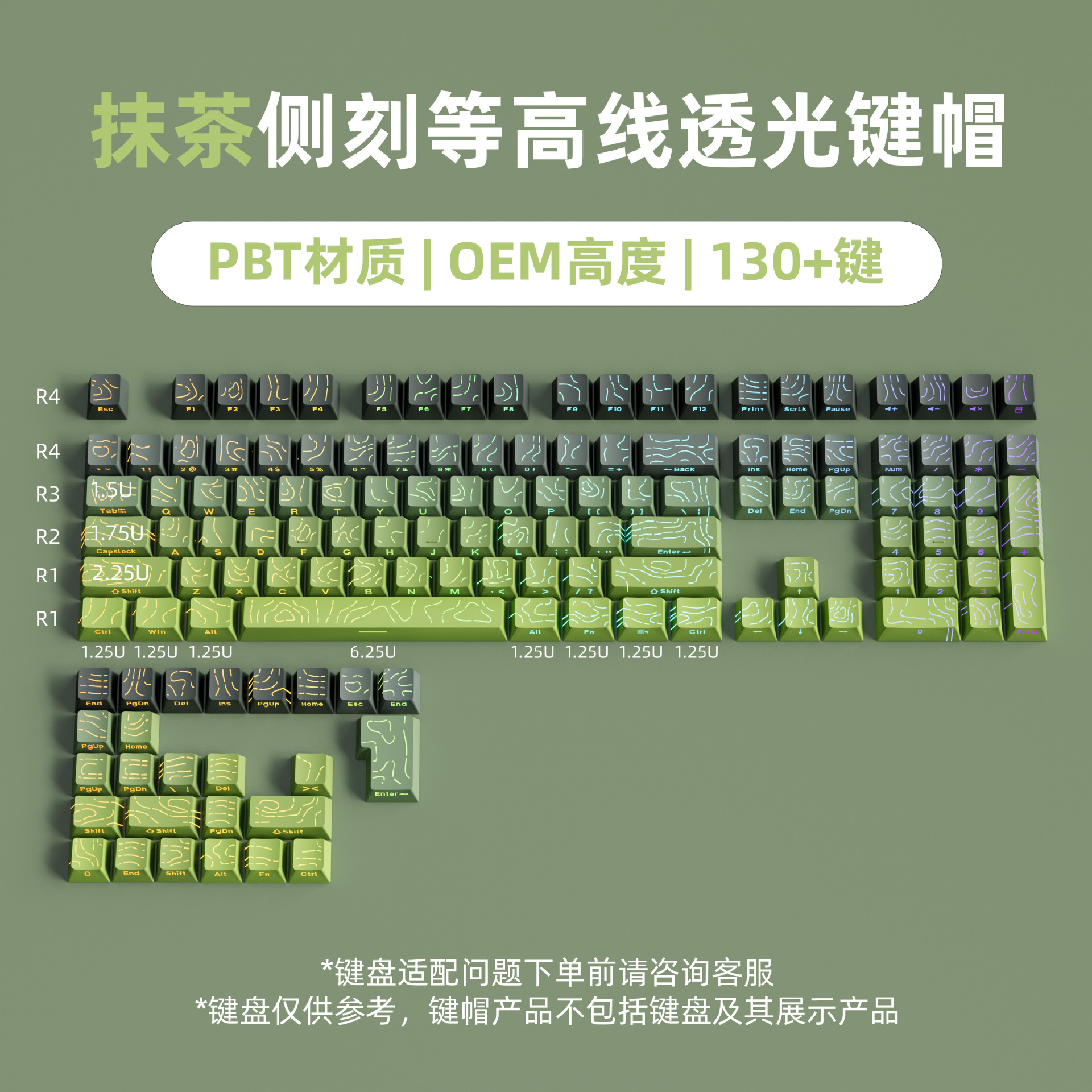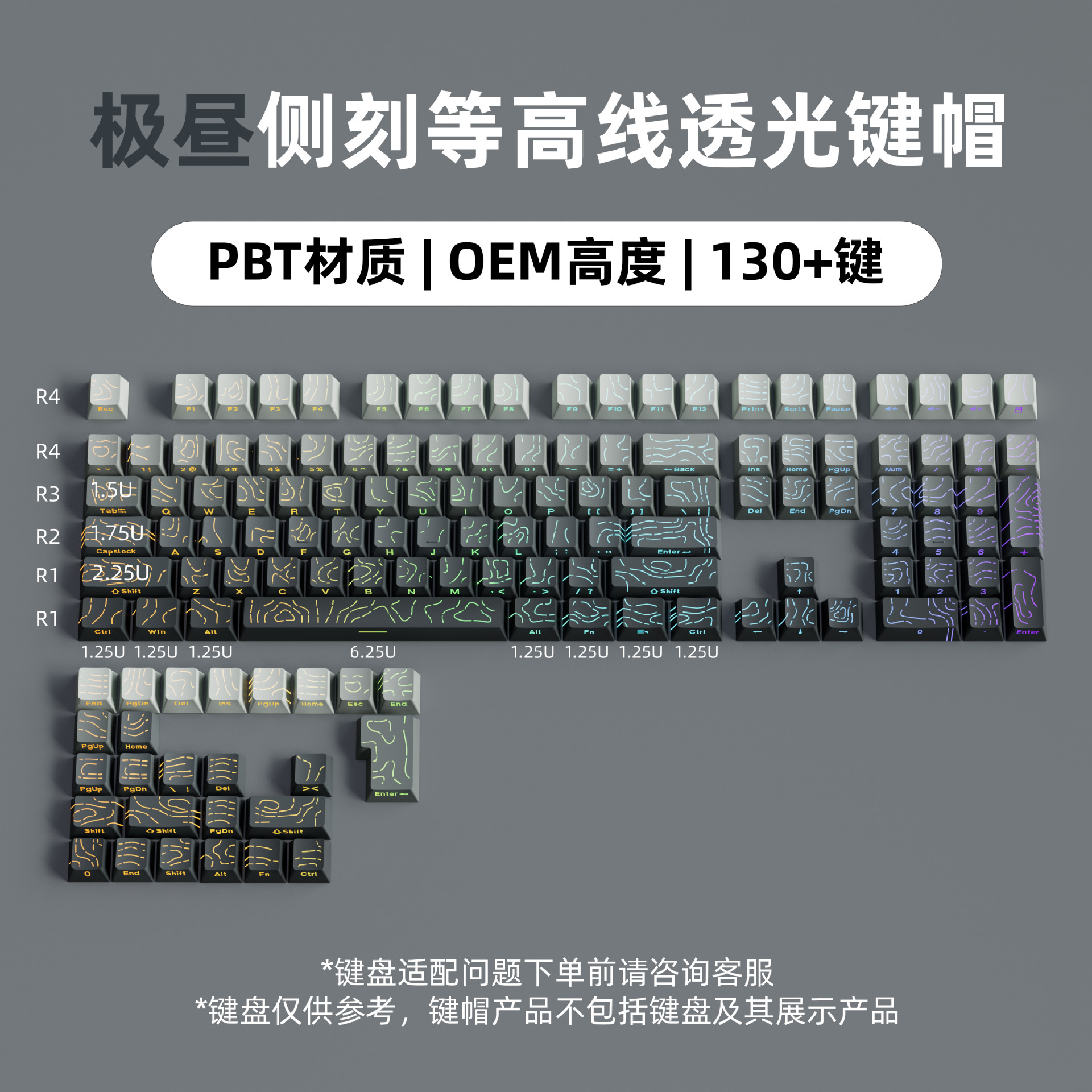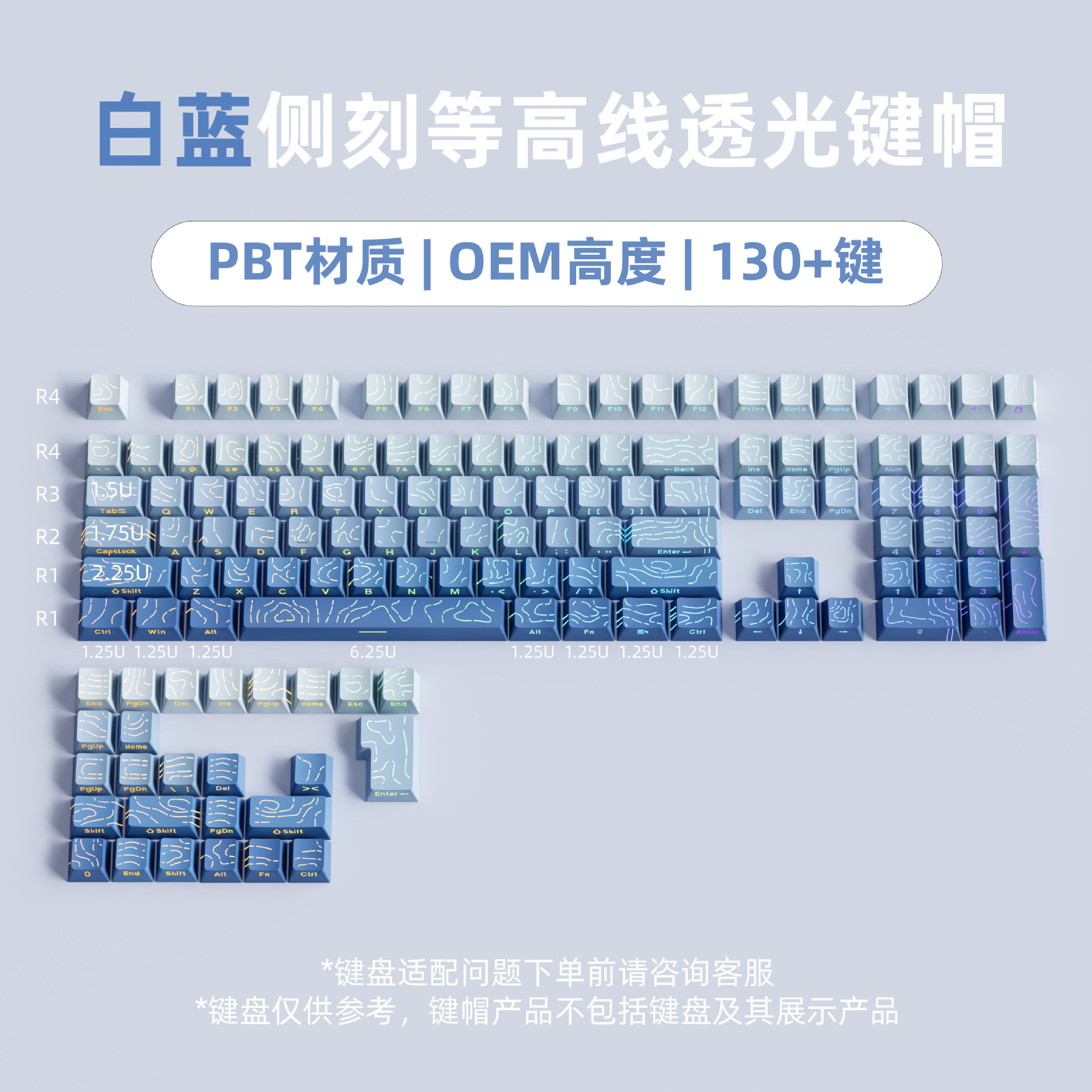 크로스보더 스팟 블랙 파우더 PBT 등고선 4.0 측면 각인 키캡 오리지널 높이 130 소재 2색 소형 풀세트