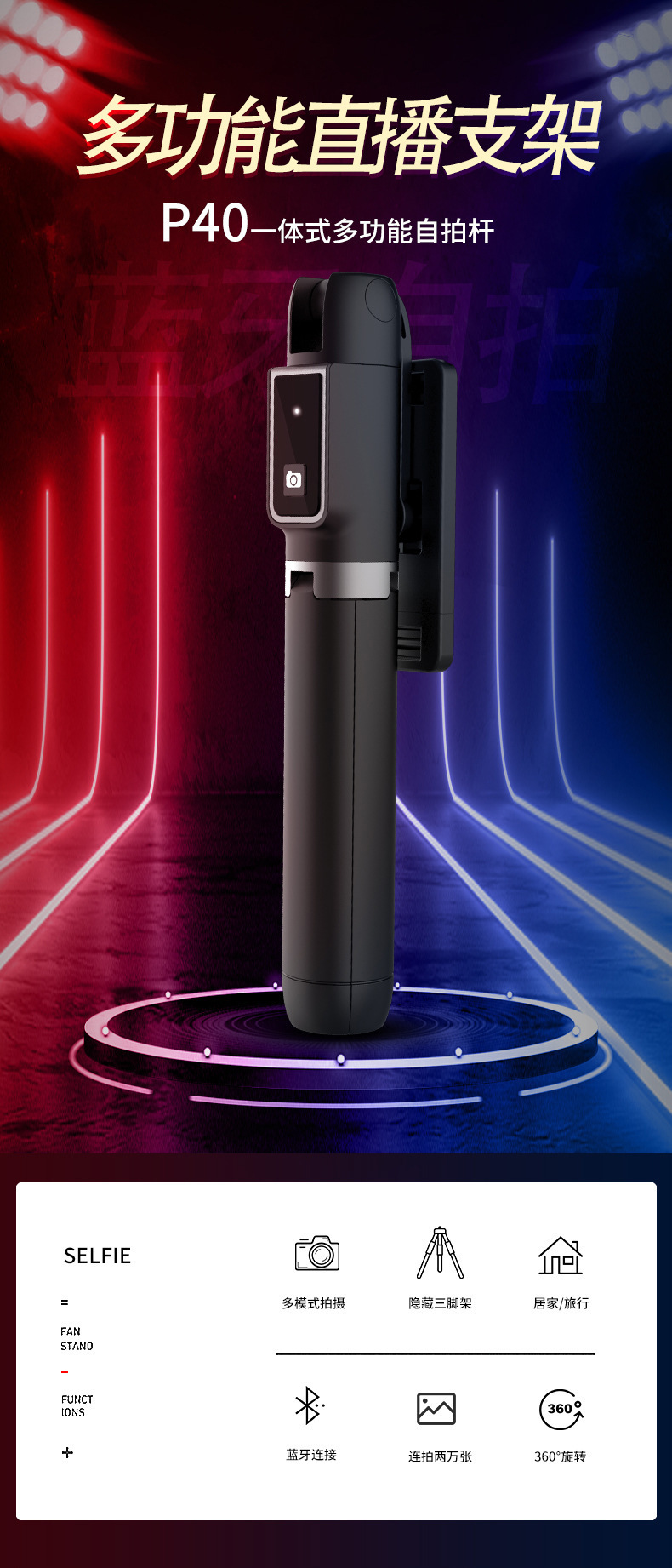 P40 휴대폰에 적합한 새로운 라이브 방송 스탠드 범용 블루투스 셀카 텔레스코픽 막대 수직 촬영 휴대용 사진 스탠드스토어 가기
