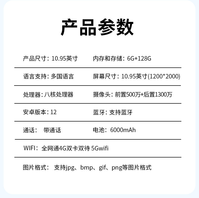 대형 스크린 10.95인치 6+128G 태블릿 컴퓨터 옥타 코어 전체 네트워크 통신 4G 엔터테인먼트 게임 학습 태블릿 로고