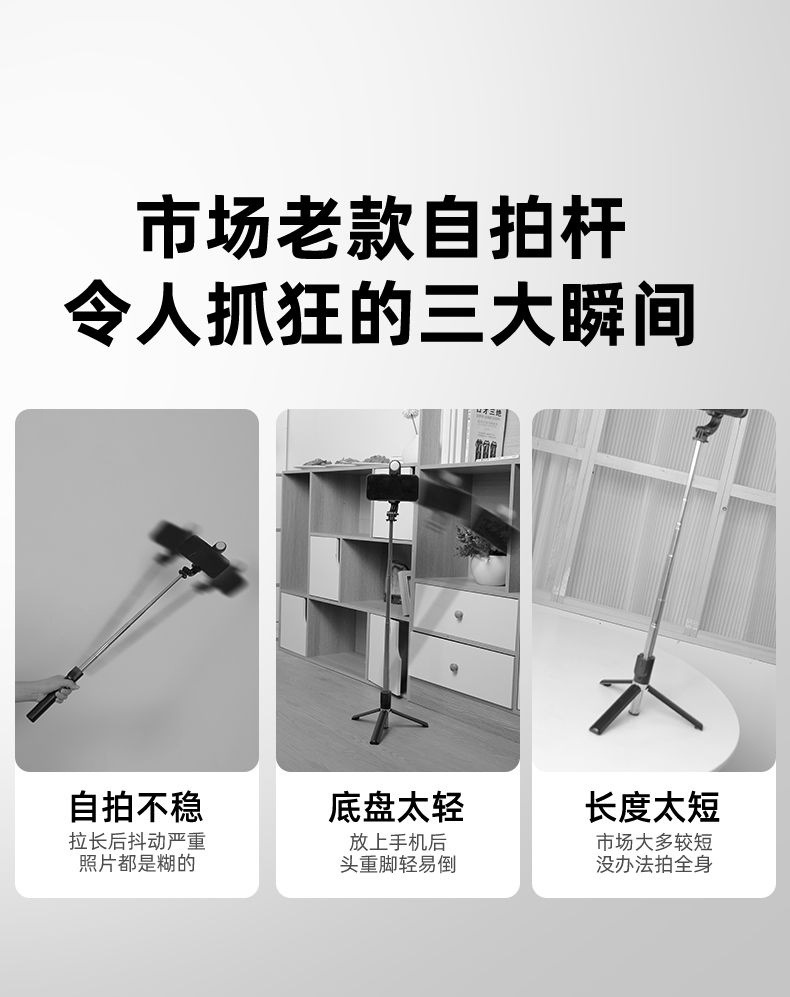 • 1.0m - 업그레이드 및 확장 [블루투스 리모컨] 손떨림 방지 - 카본 블랙 [일체형 접이식 + 삼각대 지지대]