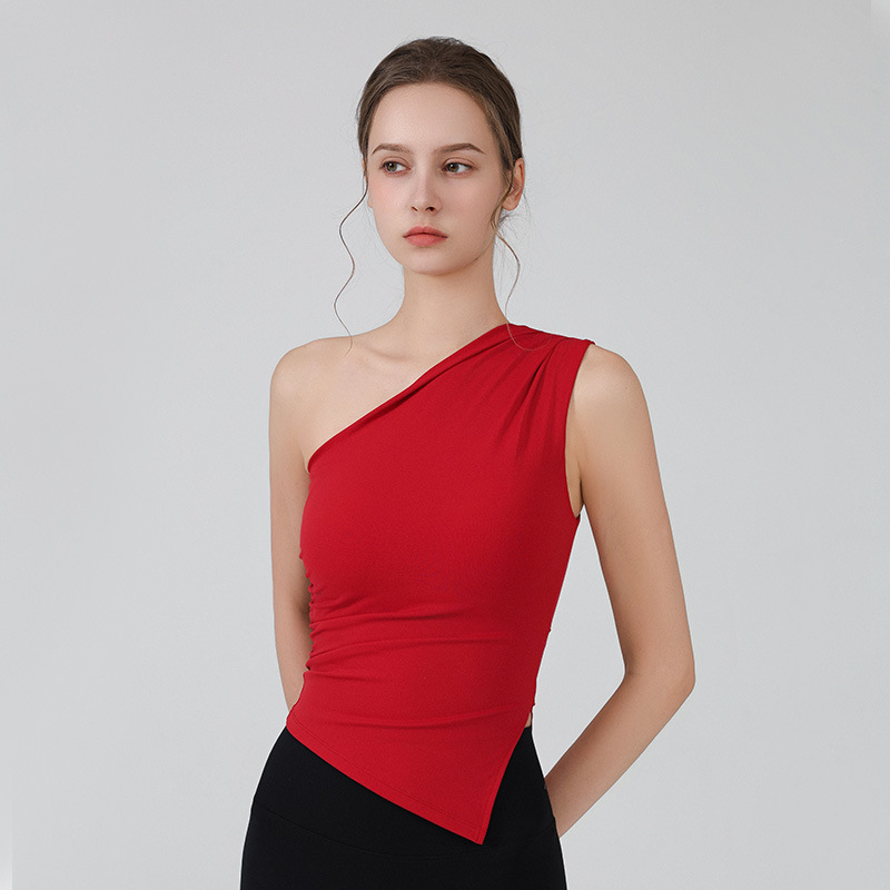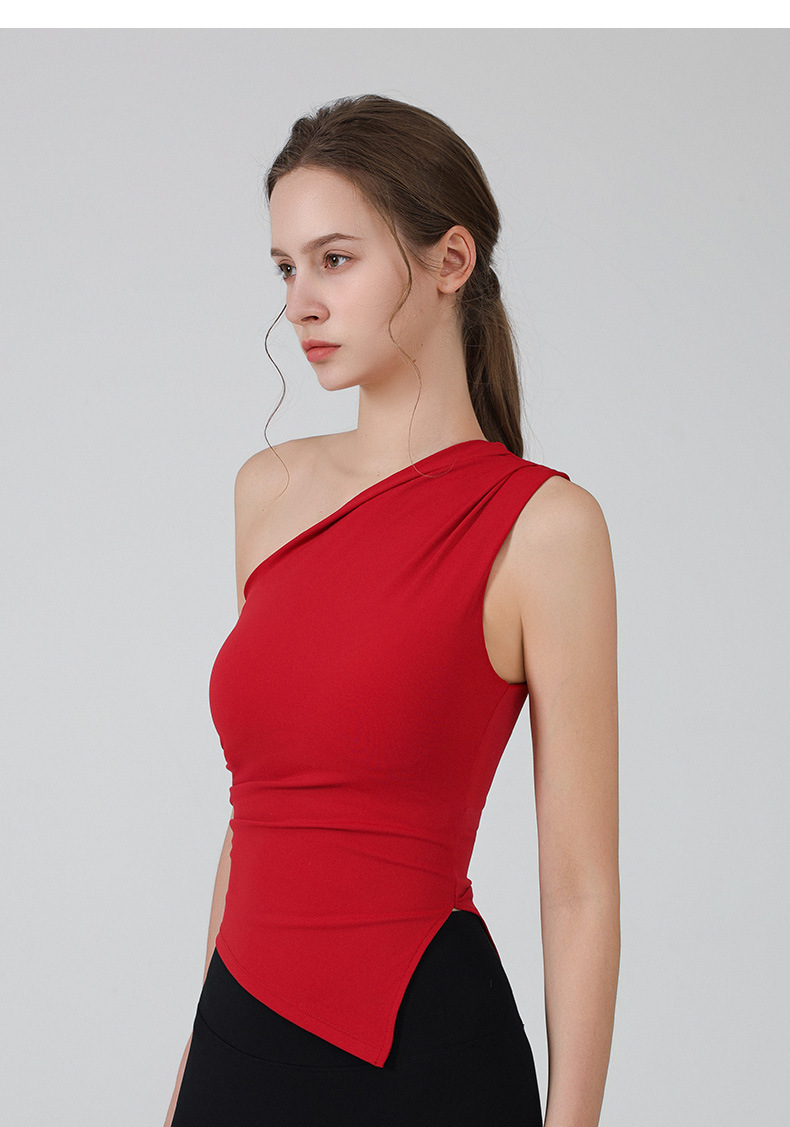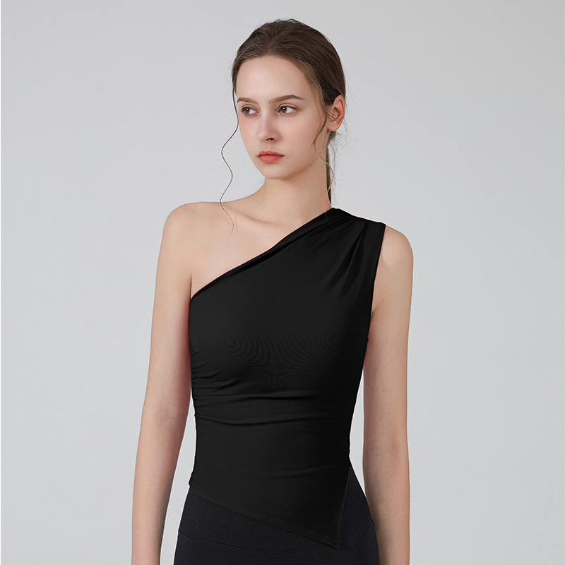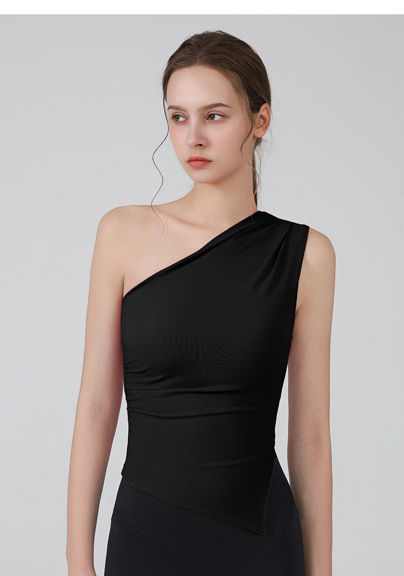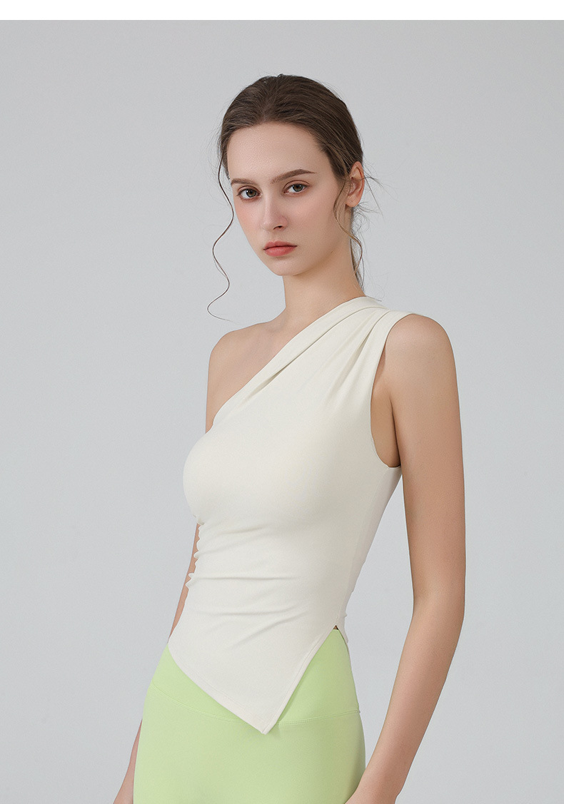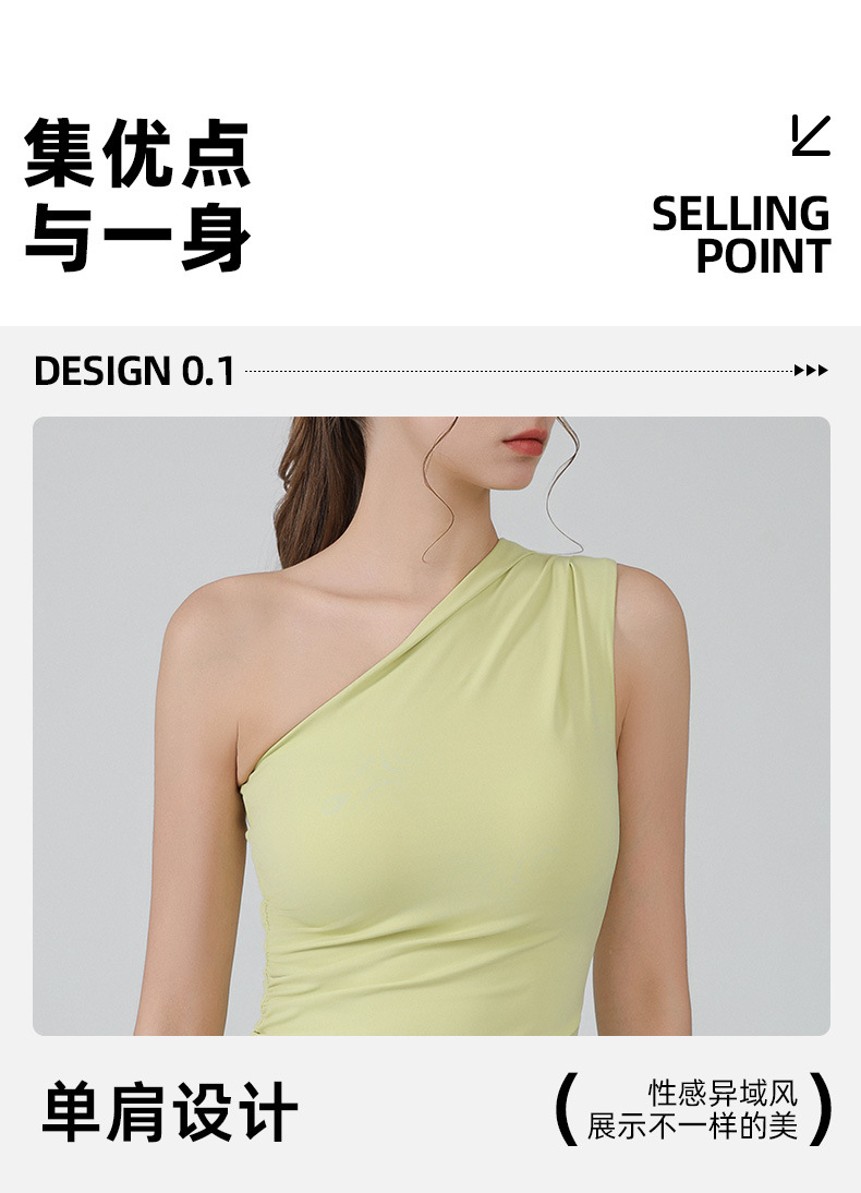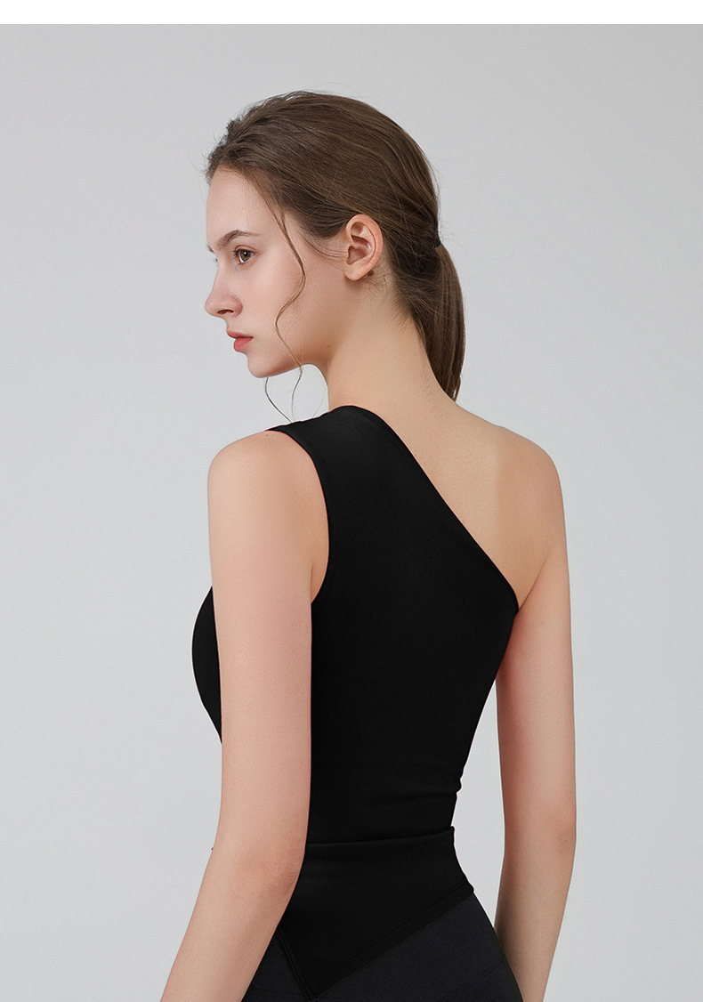 어깨가 비치는 요가복, 섹시한 상의, 아름다운 등, 가슴 패드가 있는 피트니스복, 아름다운 여성용 원숄더 스포츠 조끼스토어 가기