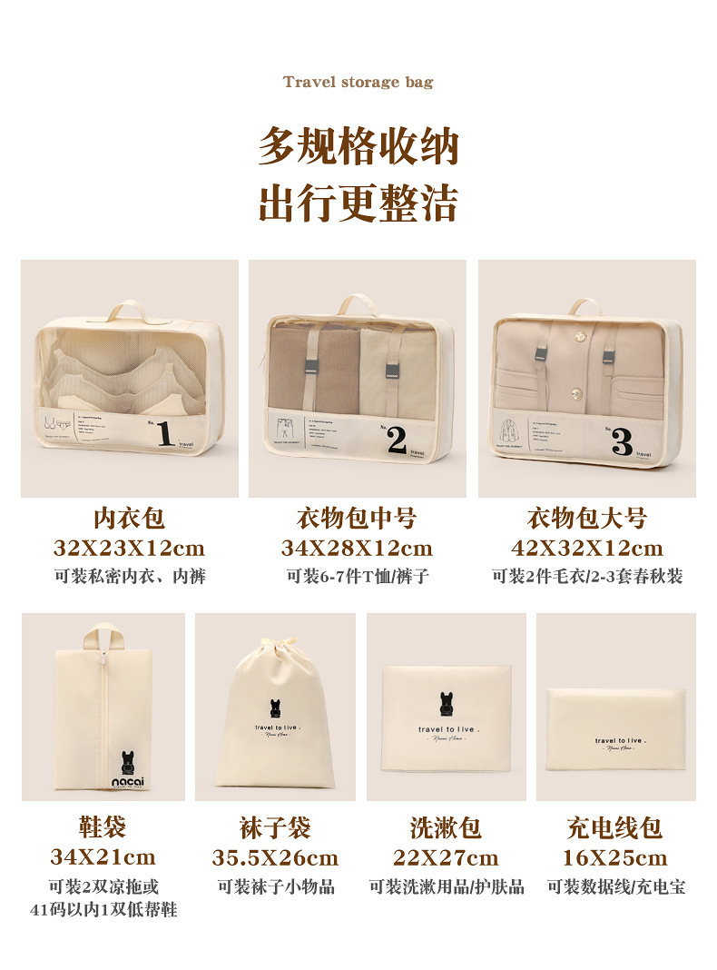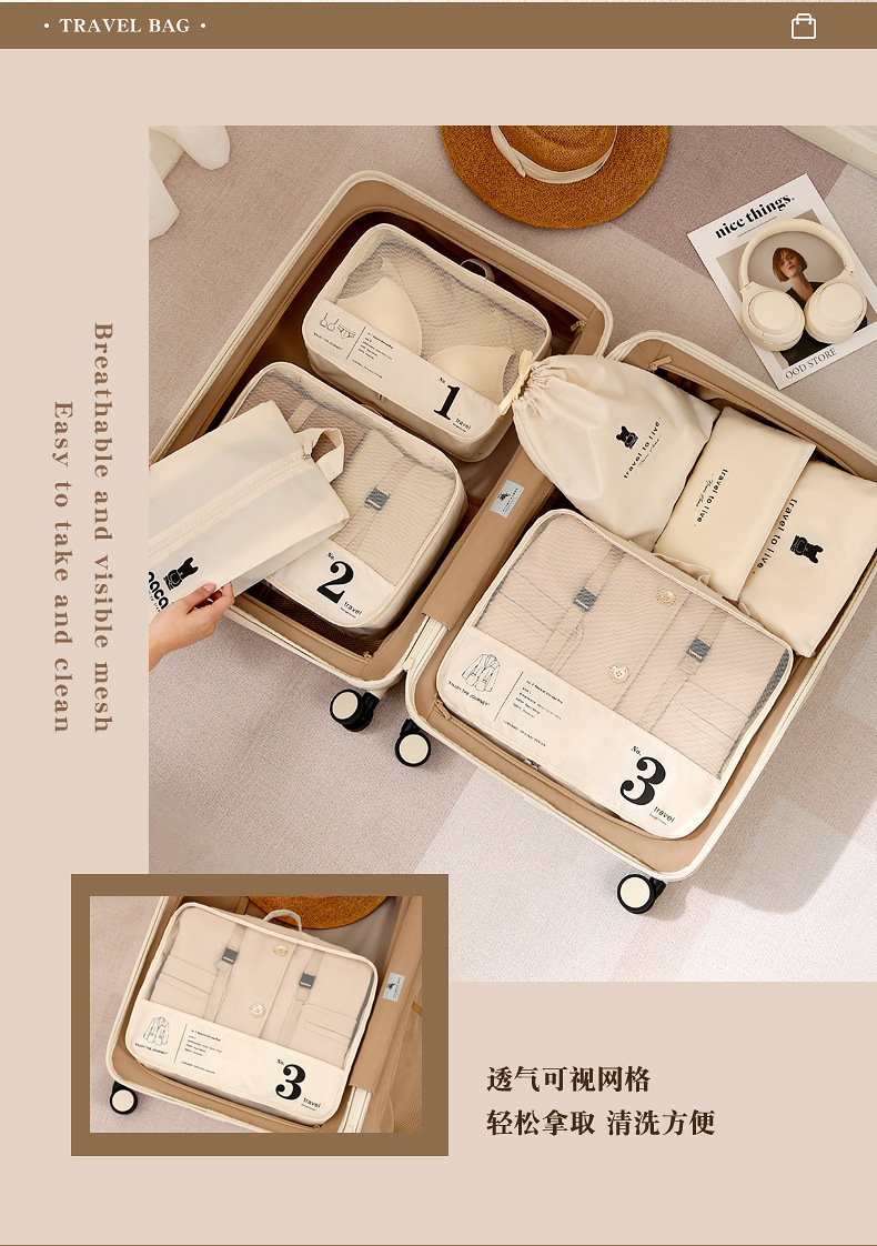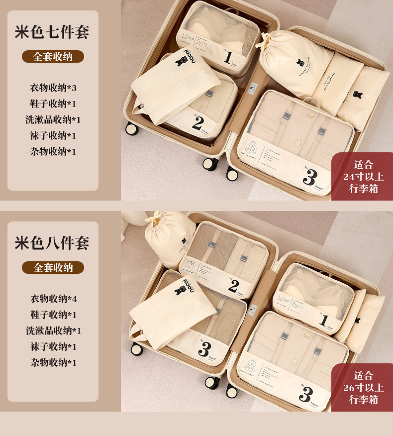맞춤형 여행용 수납 가방, 여행 가방, 방수 여행 세트, 7종 세트, 의류 및 신발 정리 및 수납 가방스토어 가기