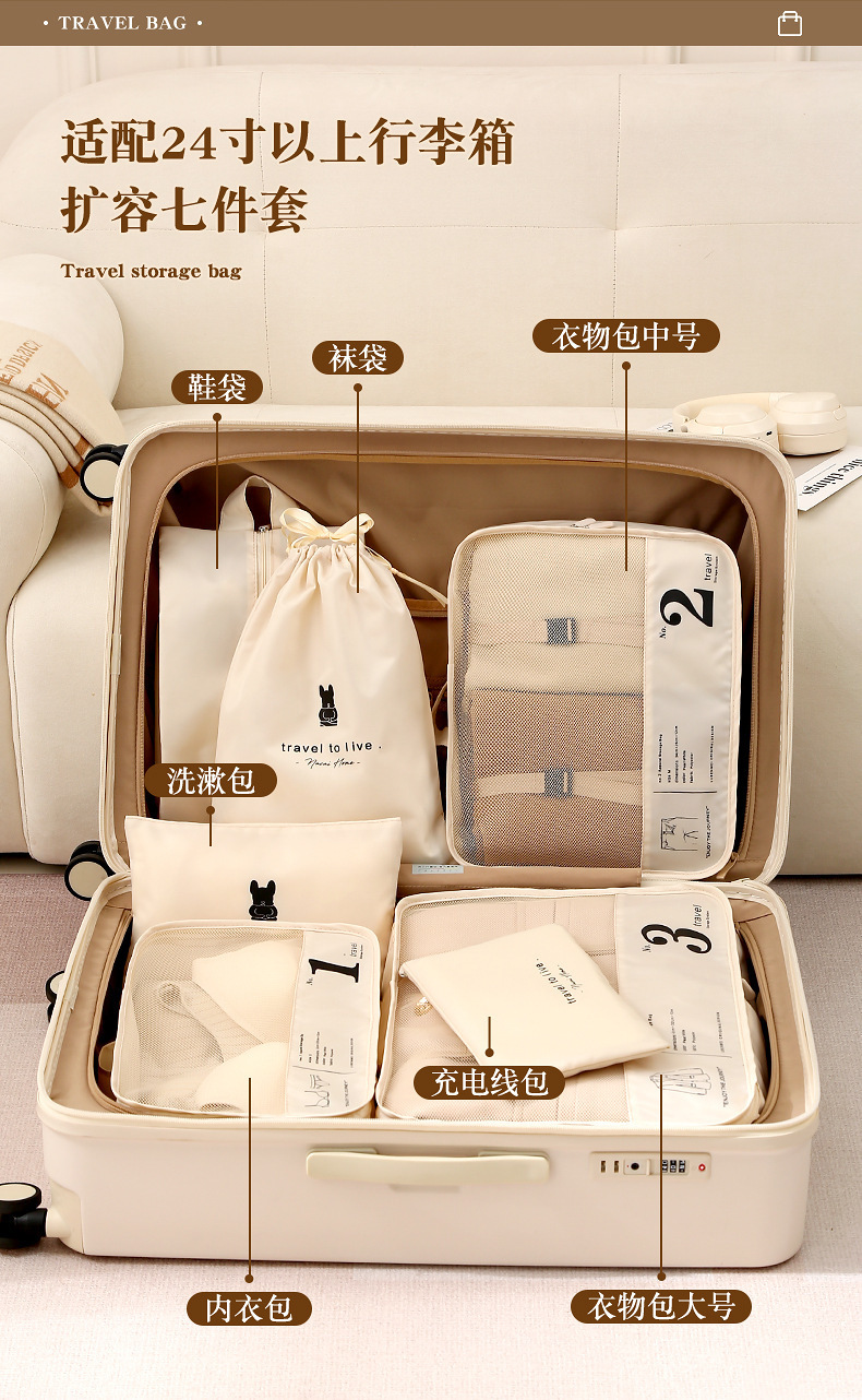 맞춤형 여행용 수납 가방, 여행 가방, 방수 여행 세트, 7종 세트, 의류 및 신발 정리 및 수납 가방
