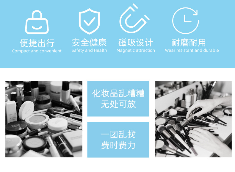 국경 간 새로운 여행 메이크업 브러쉬 보관 가방 대용량 강력한 자기 흡입 다기능 방진 청소 실리콘 뷰티 가방스토어 가기