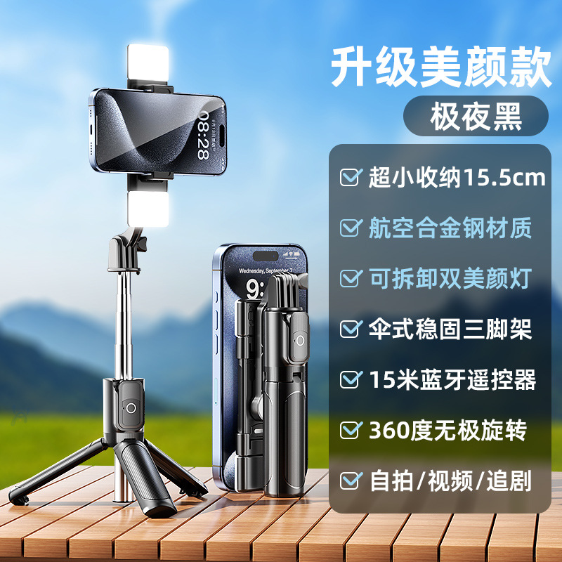R9 셀카봉 손떨림 방지 확장형 다기능 블루투스 원격 제어 라이브 셀카봉 삼각대 여행 휴대용 셀카