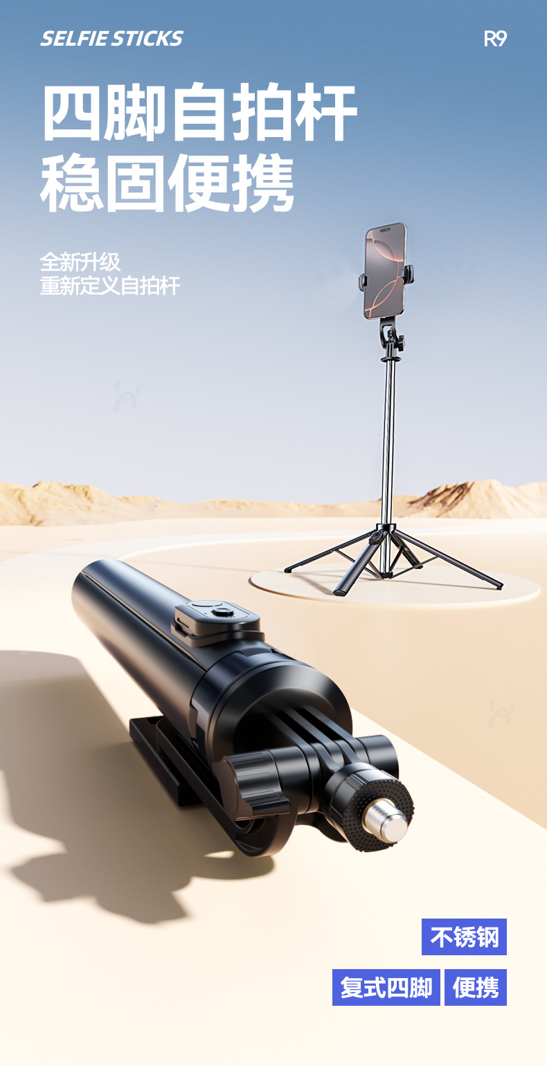 R9 셀카봉 손떨림 방지 확장형 다기능 블루투스 원격 제어 라이브 셀카봉 삼각대 여행 휴대용 셀카스토어 가기