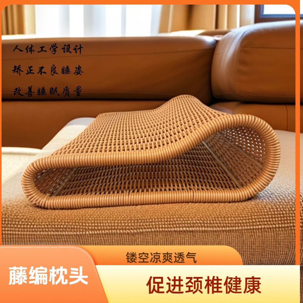 여름 시원한 베개, 경추 등나무 베개, 여름 경추 중공 목 보호대, PE 중공, 단단하고 통기성이 있는 손으로 짠