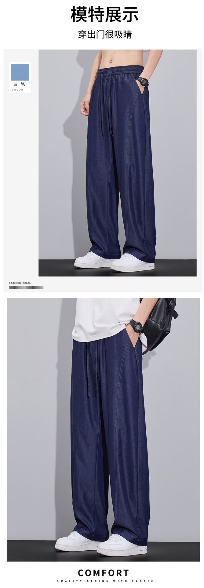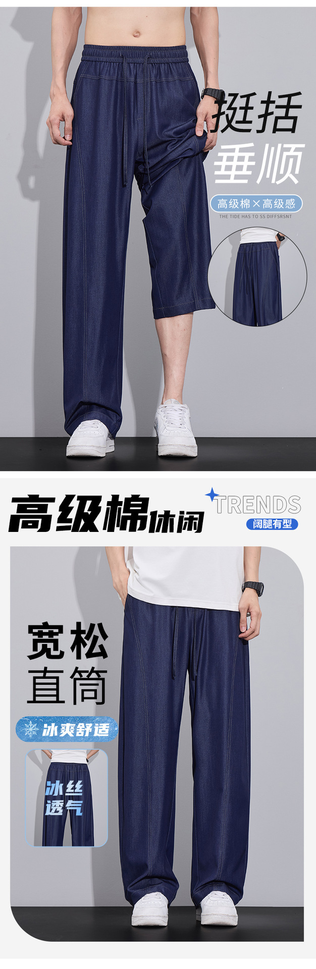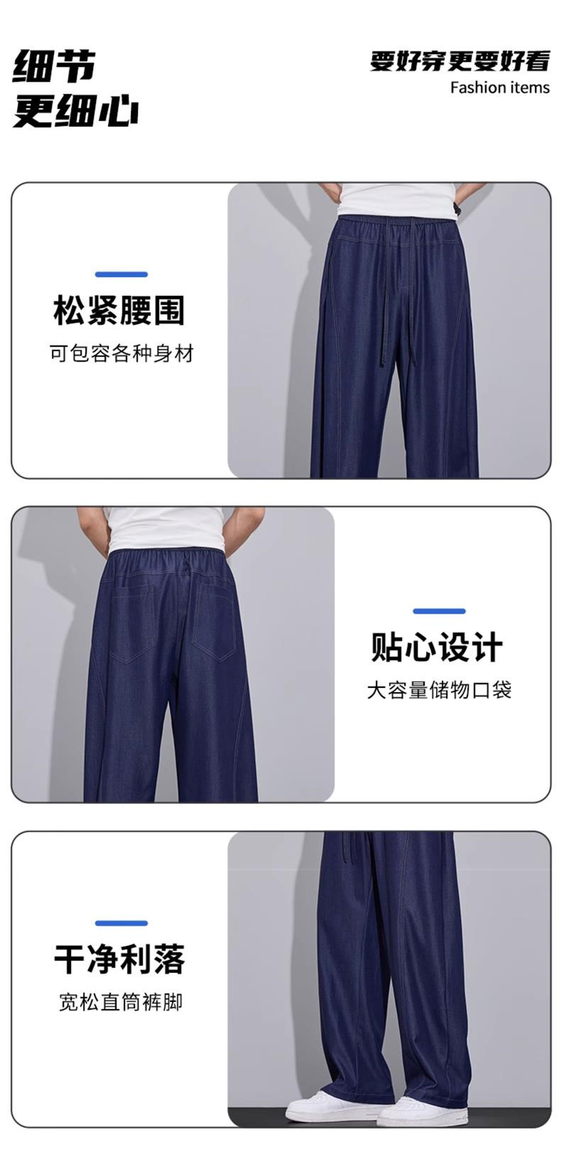 美式潮流薄款冰丝牛仔裤男2025夏季新款时尚百搭宽松直筒休闲裤子