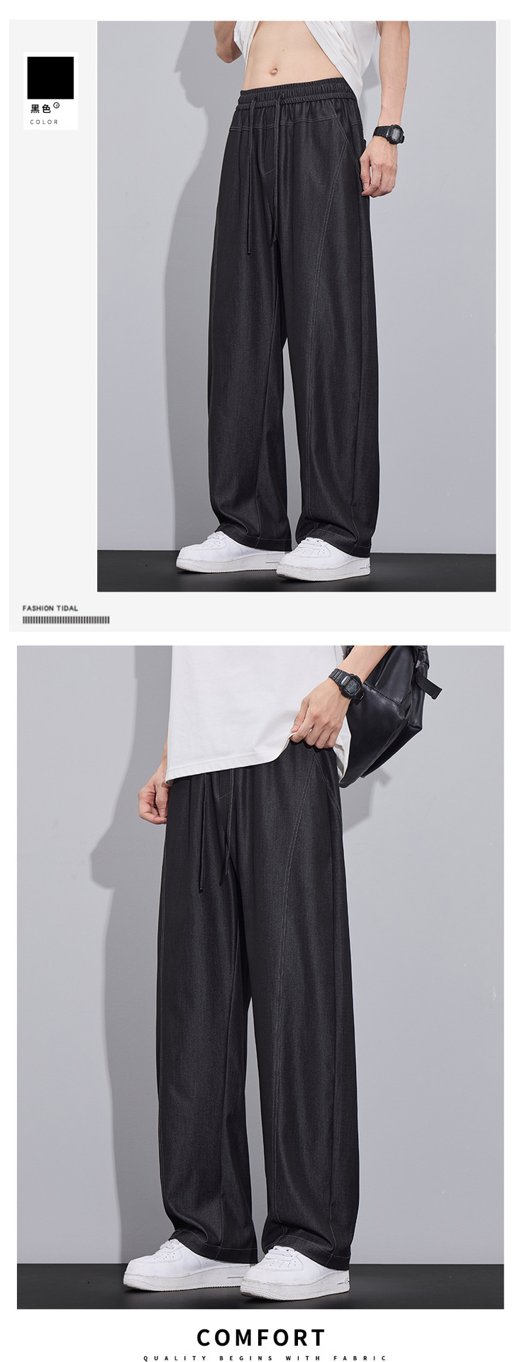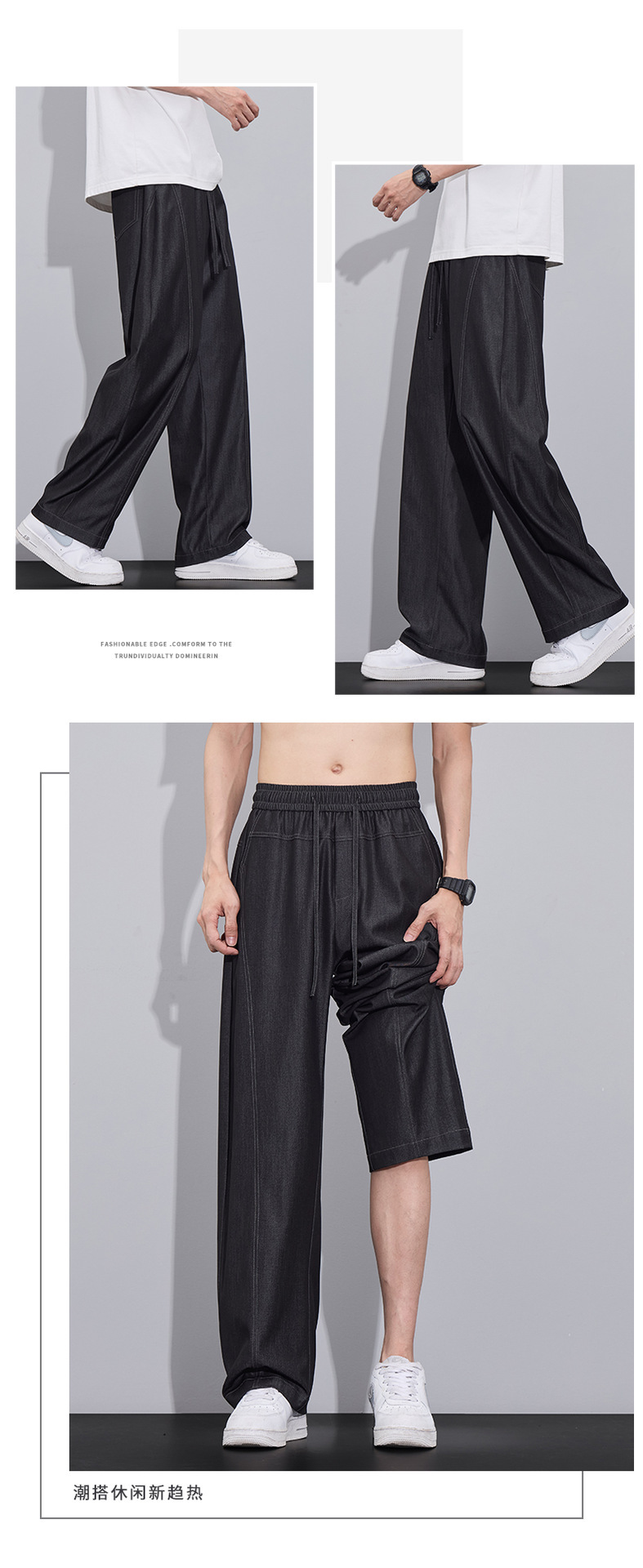 남성용 미국 트렌디 얇은 아이스 실크 청바지 2025 여름 새로운 패션 다목적 루즈 스트레이트 캐주얼 바지