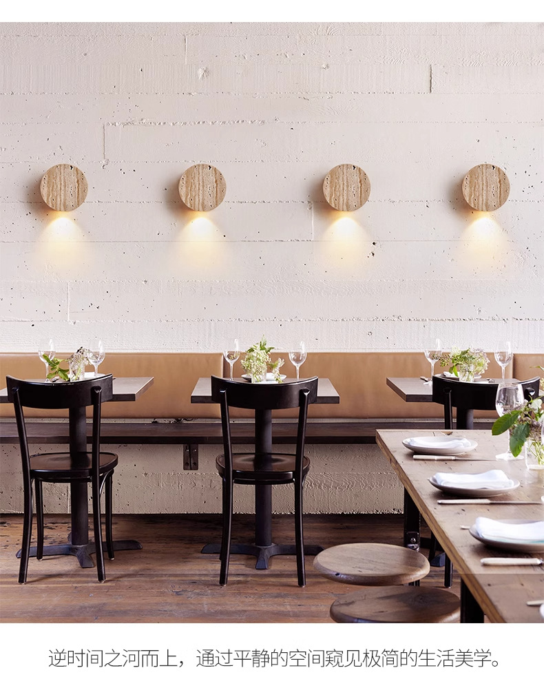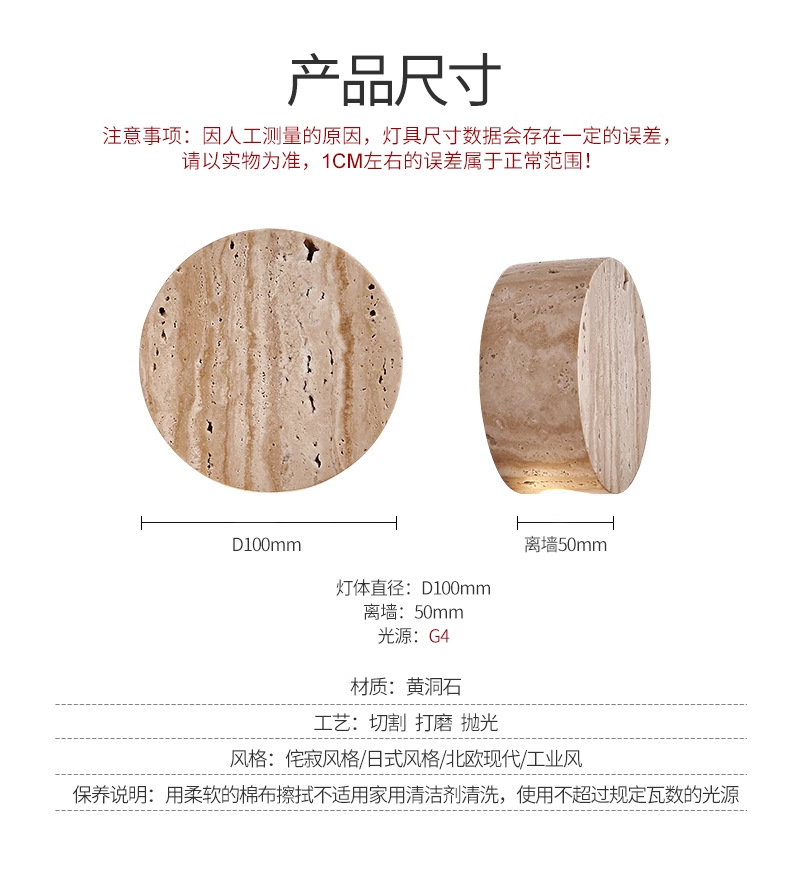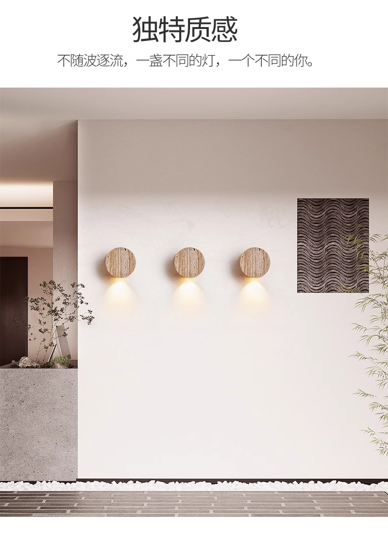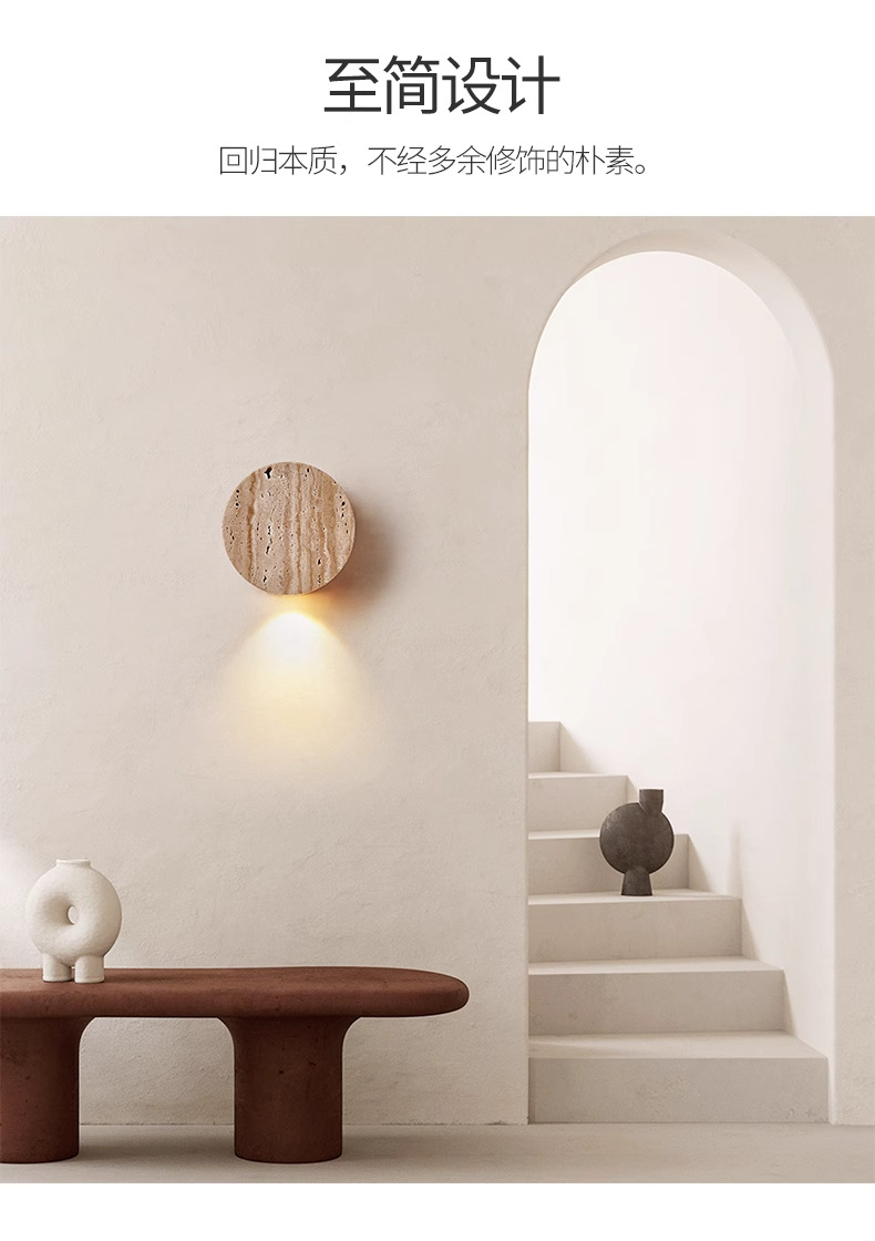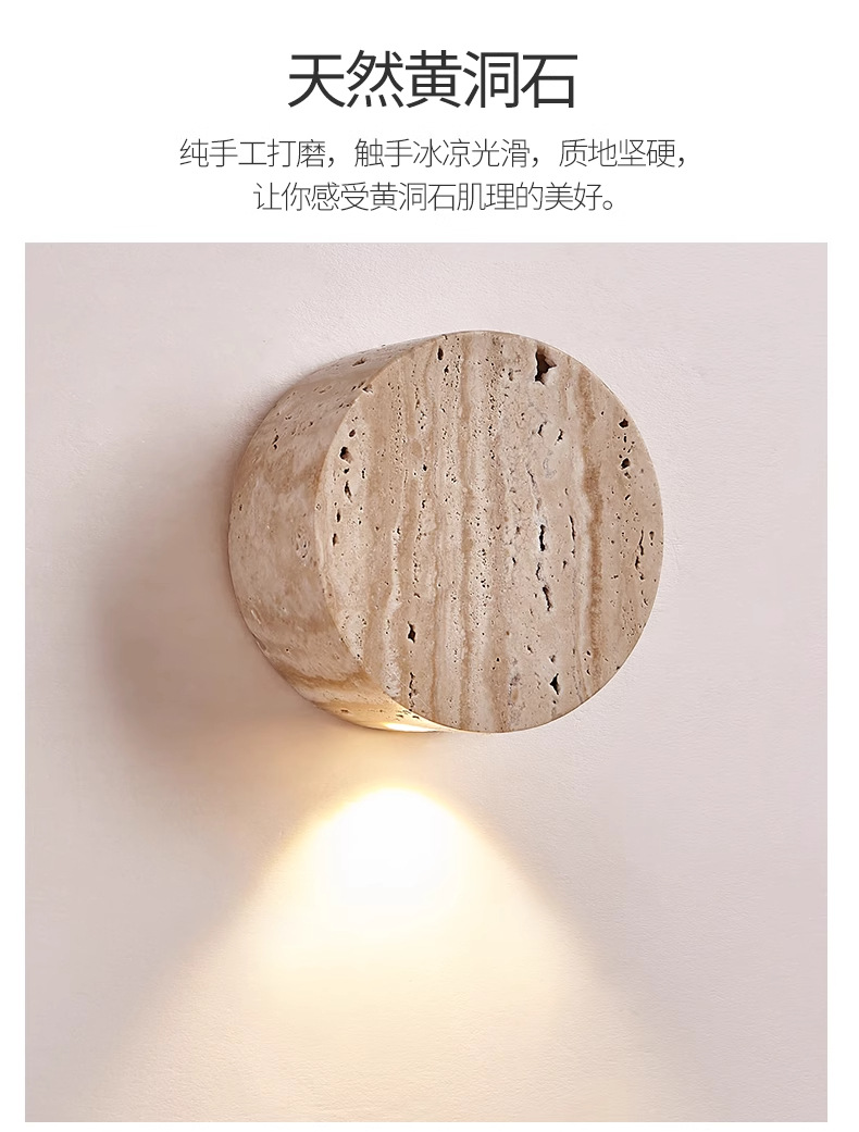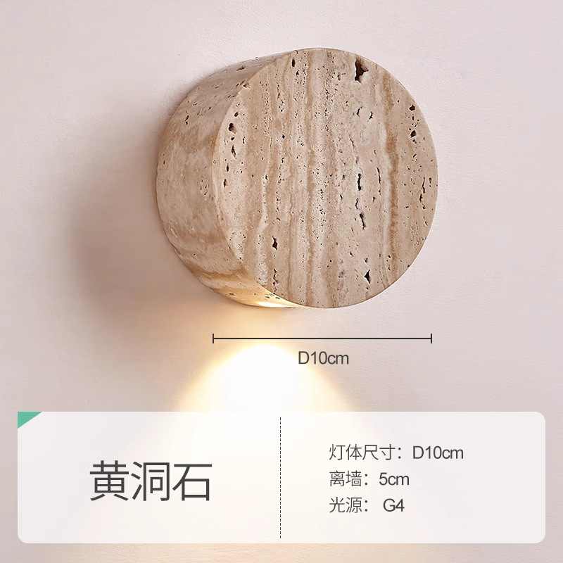 • 트래버틴 벽 램프, 직경 10cm, 무료 따뜻한 광원