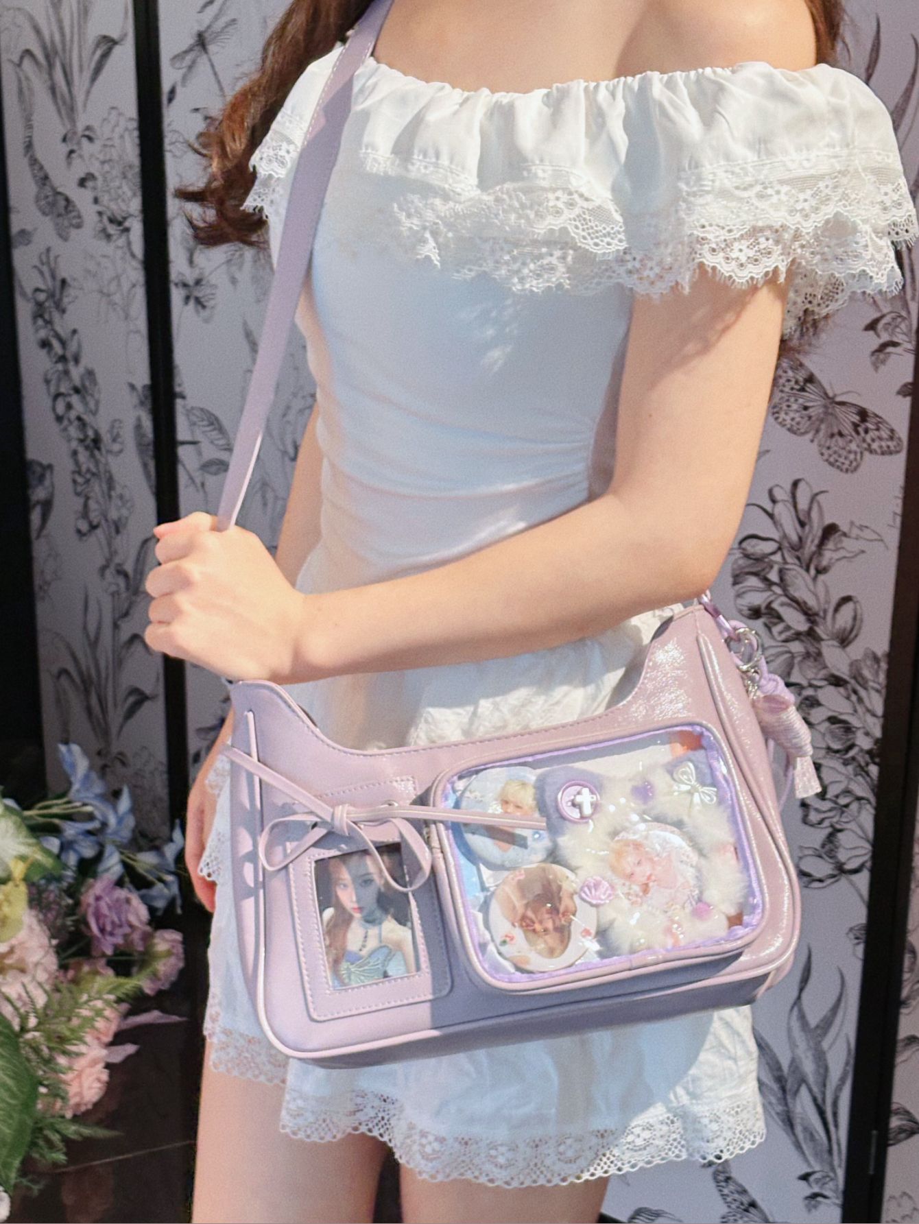 2차원 포토카드 버전 새로운 오리지널 수제 통증 가방 틈새 귀여운 스낵 크기 중학생 크로스 바디 백 여성용 가방스토어 가기