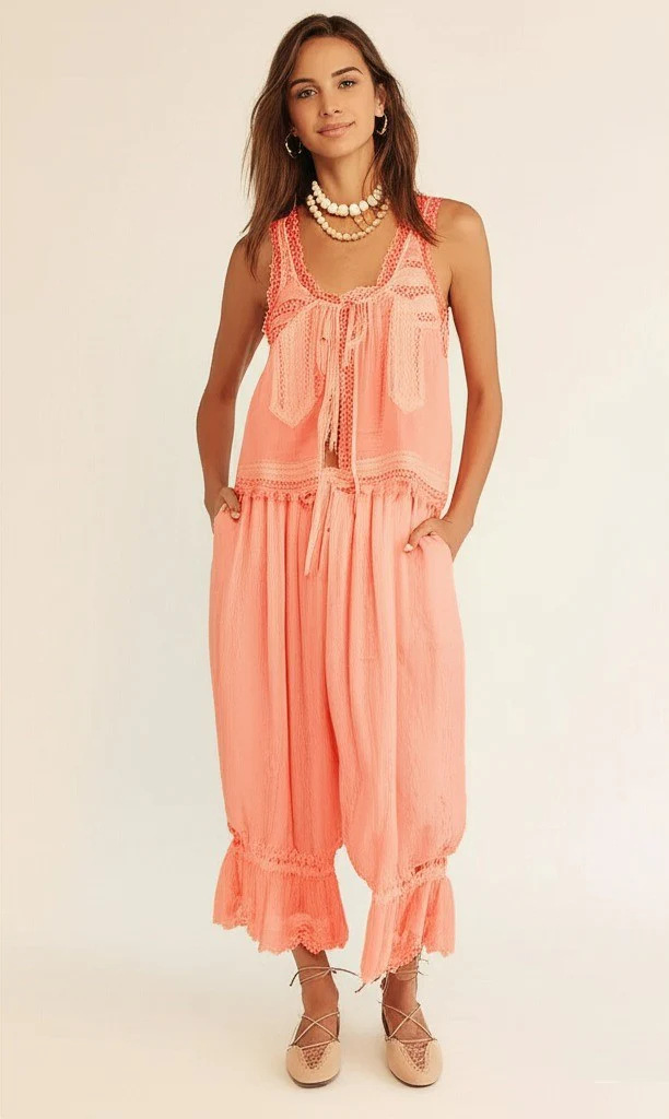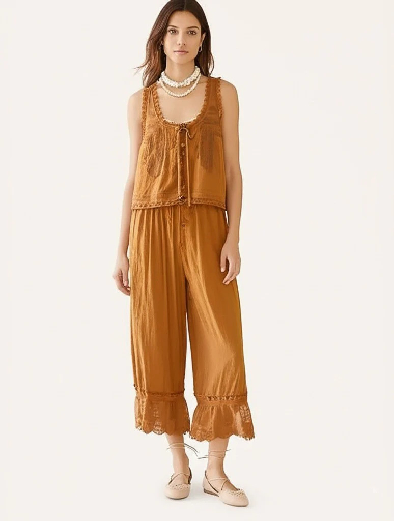 유럽과 미국의 국경 간 AliExpress Amazon 투피스 여성용 9부 바지 스플라이스 레이스 조끼 Y2K 캐주얼 슈트스토어 가기
