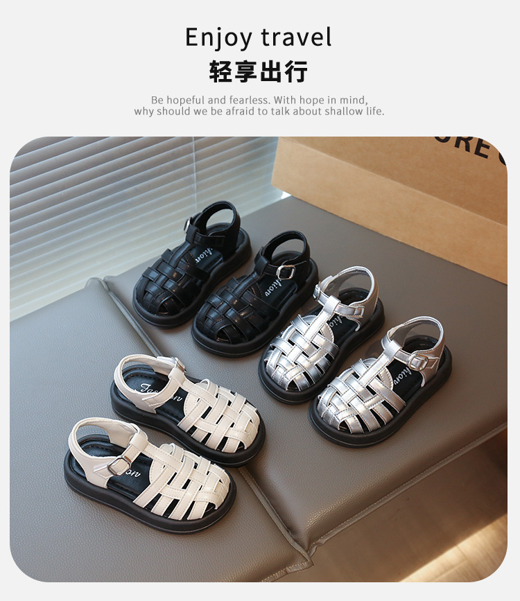 어린이 Baotou 샌들 2025 여름 새로운 어린이 안티 킥 두꺼운 밑창 중공 로마 신발 소녀 캐주얼 비치 신발스토어 가기