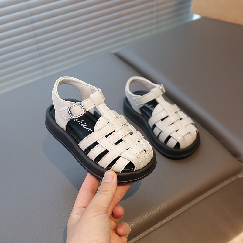 어린이 Baotou 샌들 2025 여름 새로운 어린이 안티 킥 두꺼운 밑창 중공 로마 신발 소녀 캐주얼 비치 신발