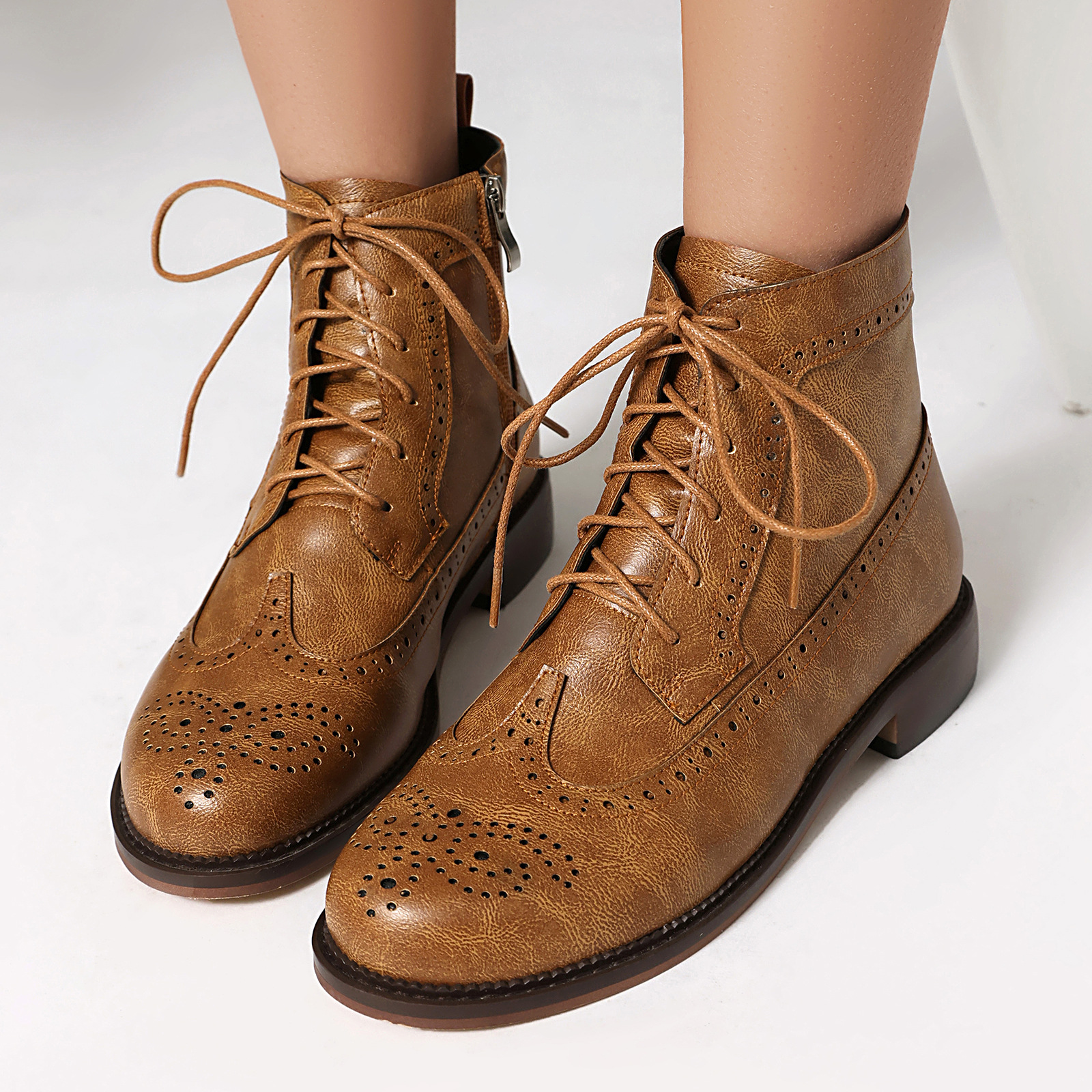 25년 신제품 외국 캐주얼 로우힐 여성화 40-48 대형 불꽃 레이스 업 사이드 지퍼 로우 부츠
