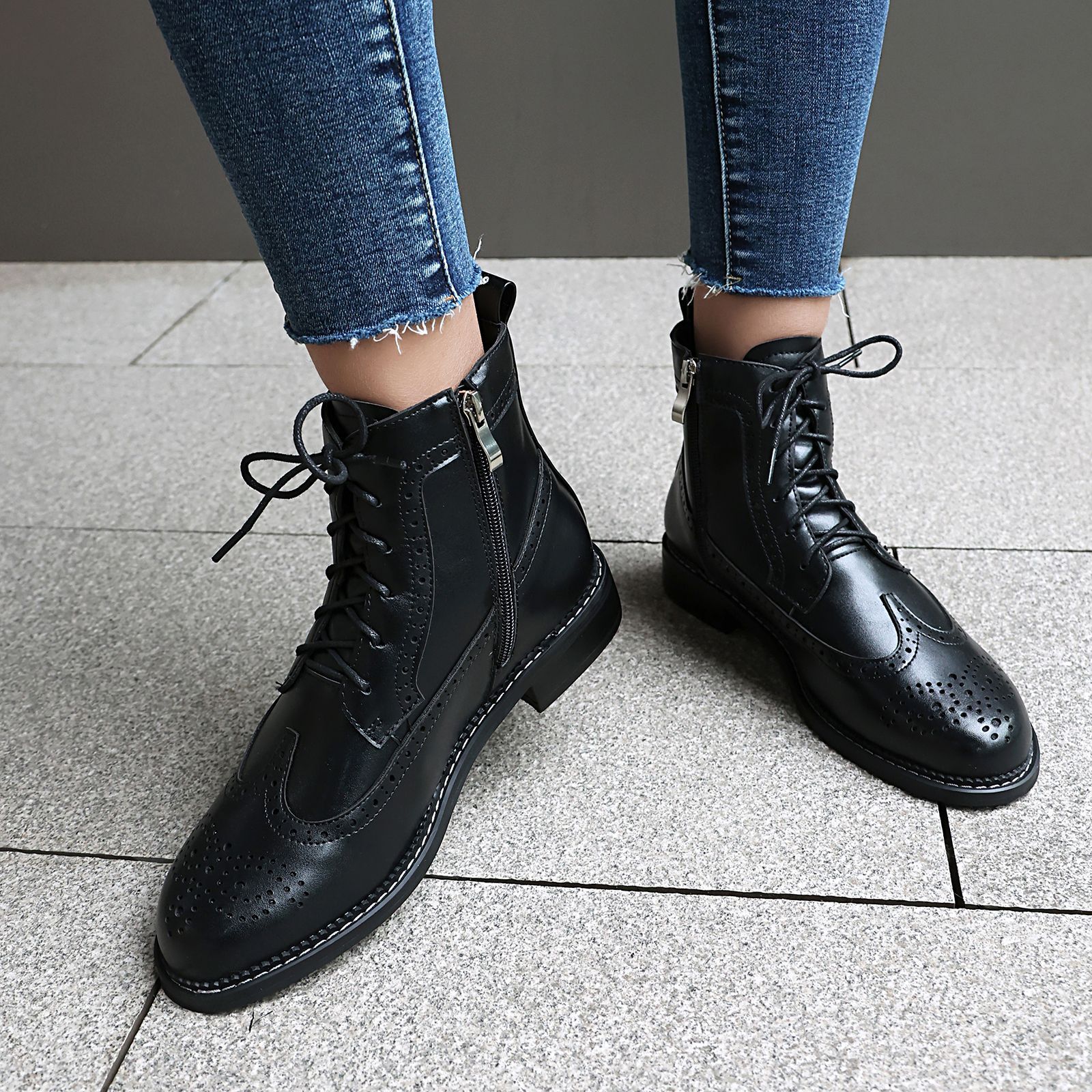 25년 신제품 외국 캐주얼 로우힐 여성화 40-48 대형 불꽃 레이스 업 사이드 지퍼 로우 부츠스토어 가기