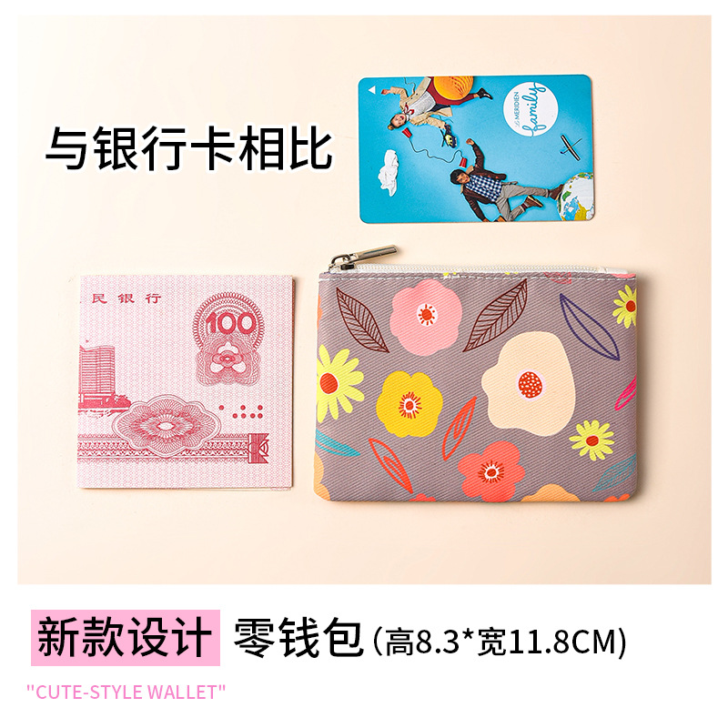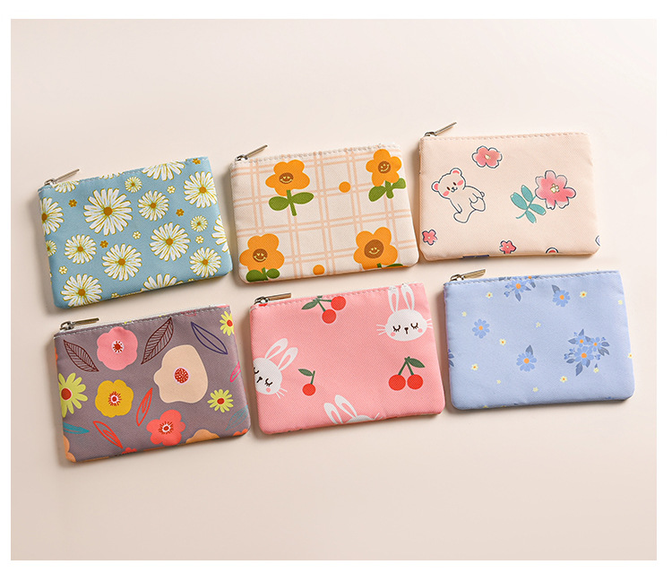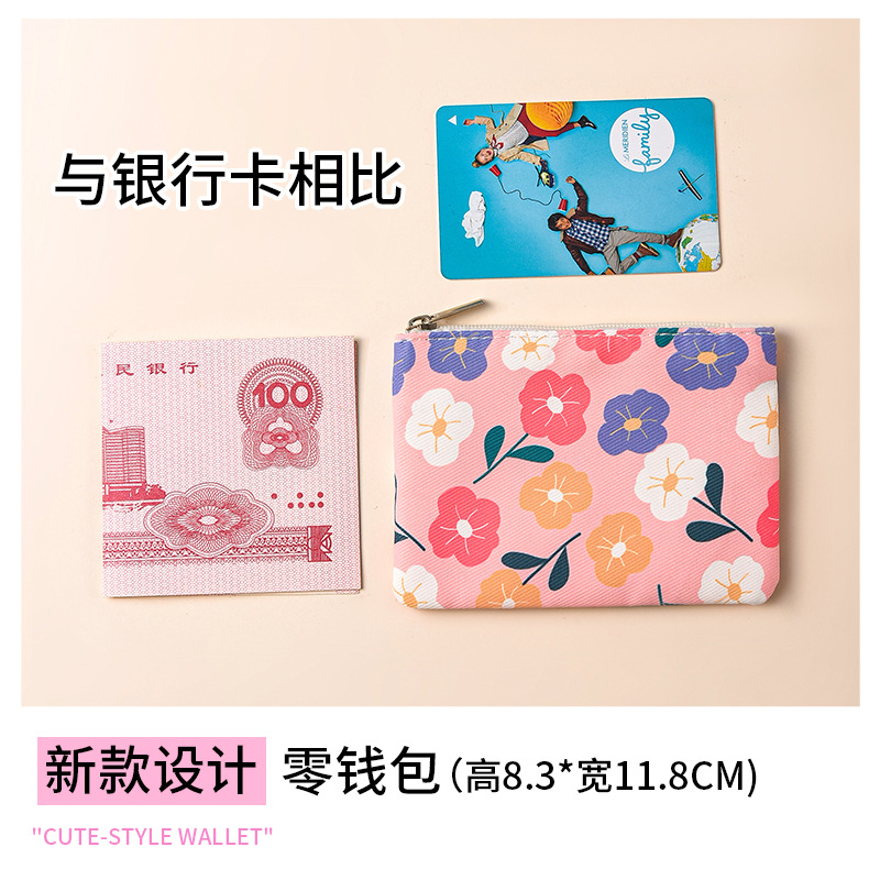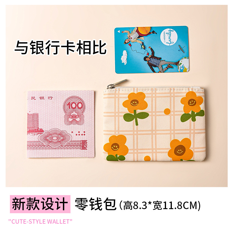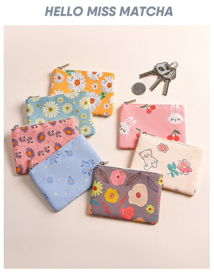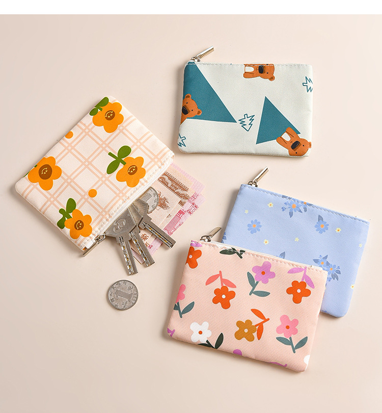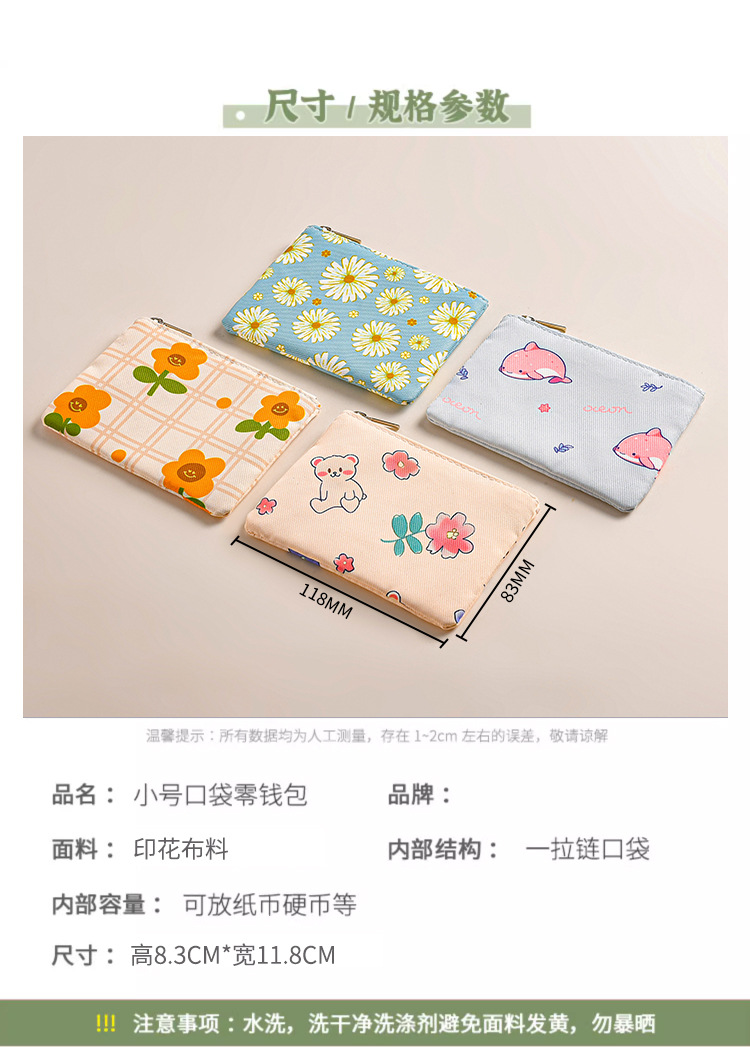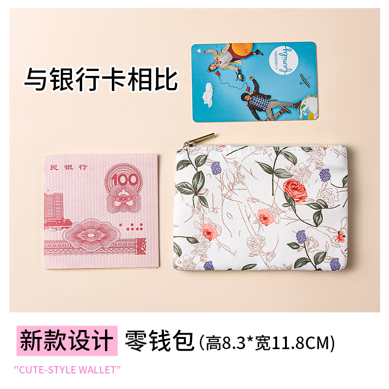 미니 포켓 지갑 작은 신선한 캔버스 꽃 패브릭 카드 홀더 지퍼 동전 지갑 학생 동전 보관 가방