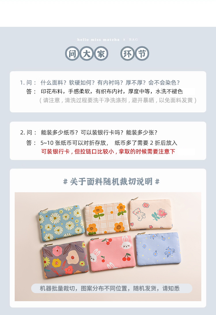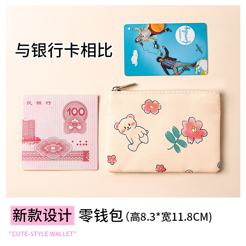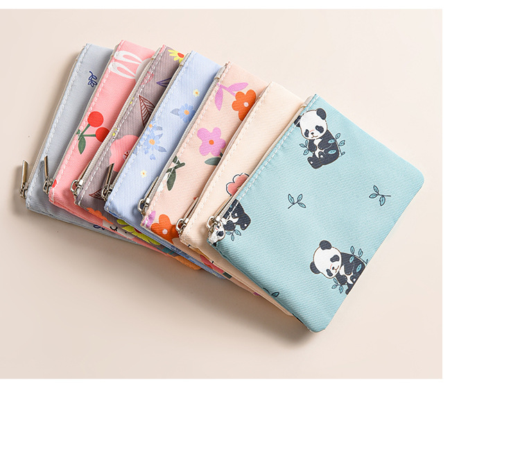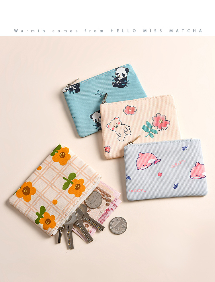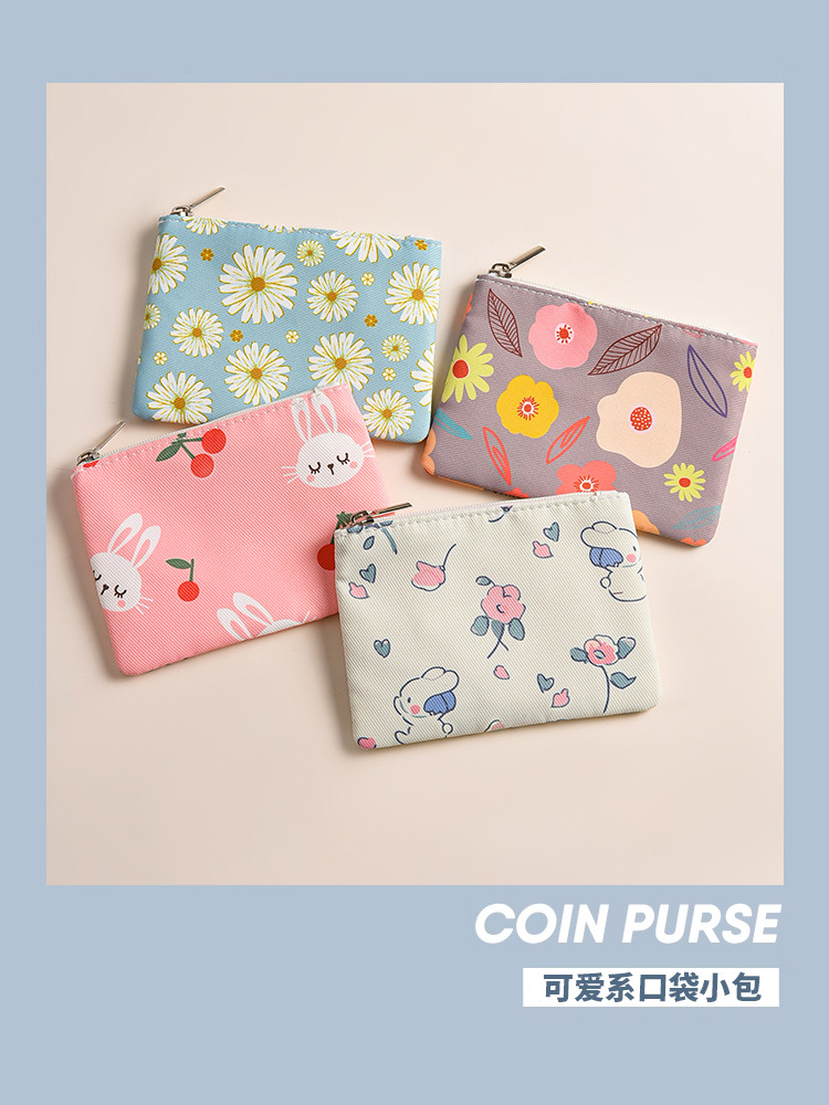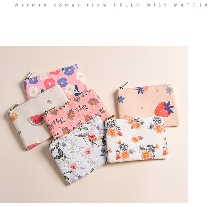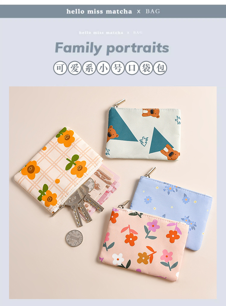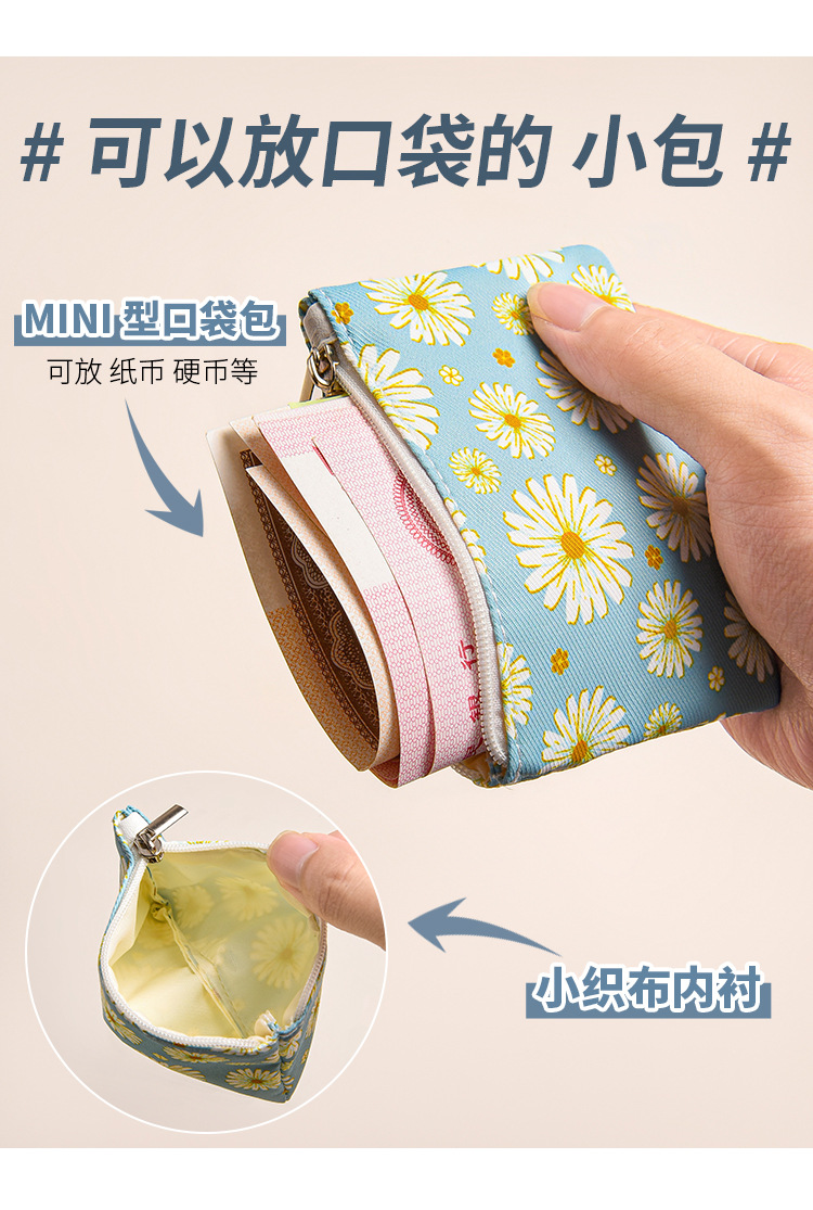 미니 포켓 지갑 작은 신선한 캔버스 꽃 패브릭 카드 홀더 지퍼 동전 지갑 학생 동전 보관 가방