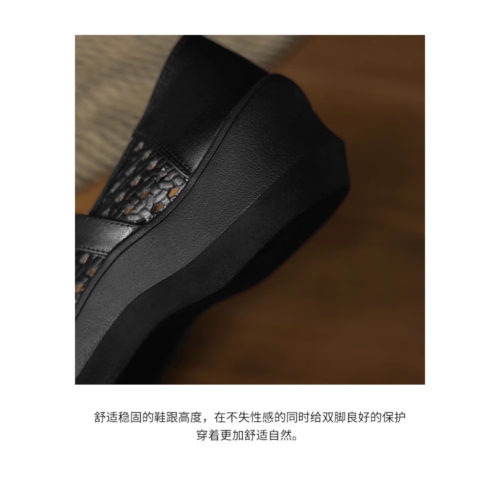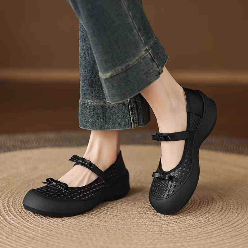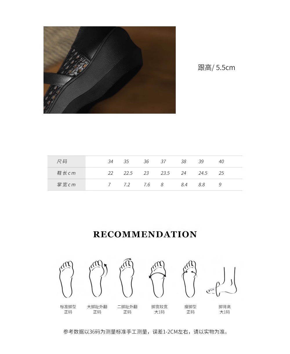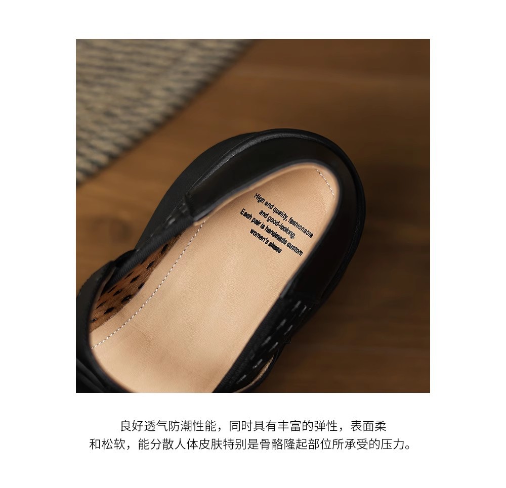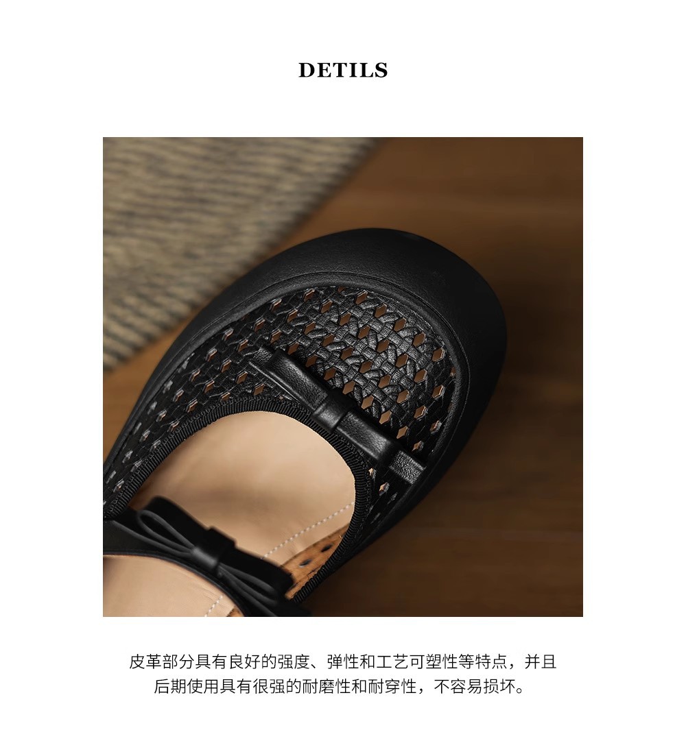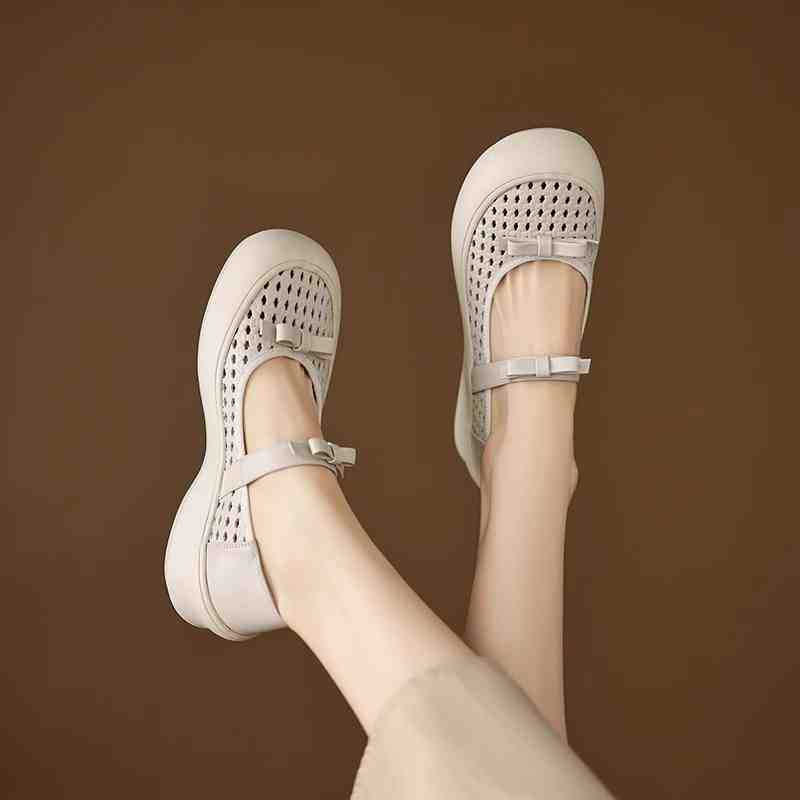 [재고 있음] 5.5cm 부드러운 가죽 두꺼운 밑창 샌들 여성 2025 신작 여름 여성 신발 중공 나비 매듭 캐주얼스토어 가기