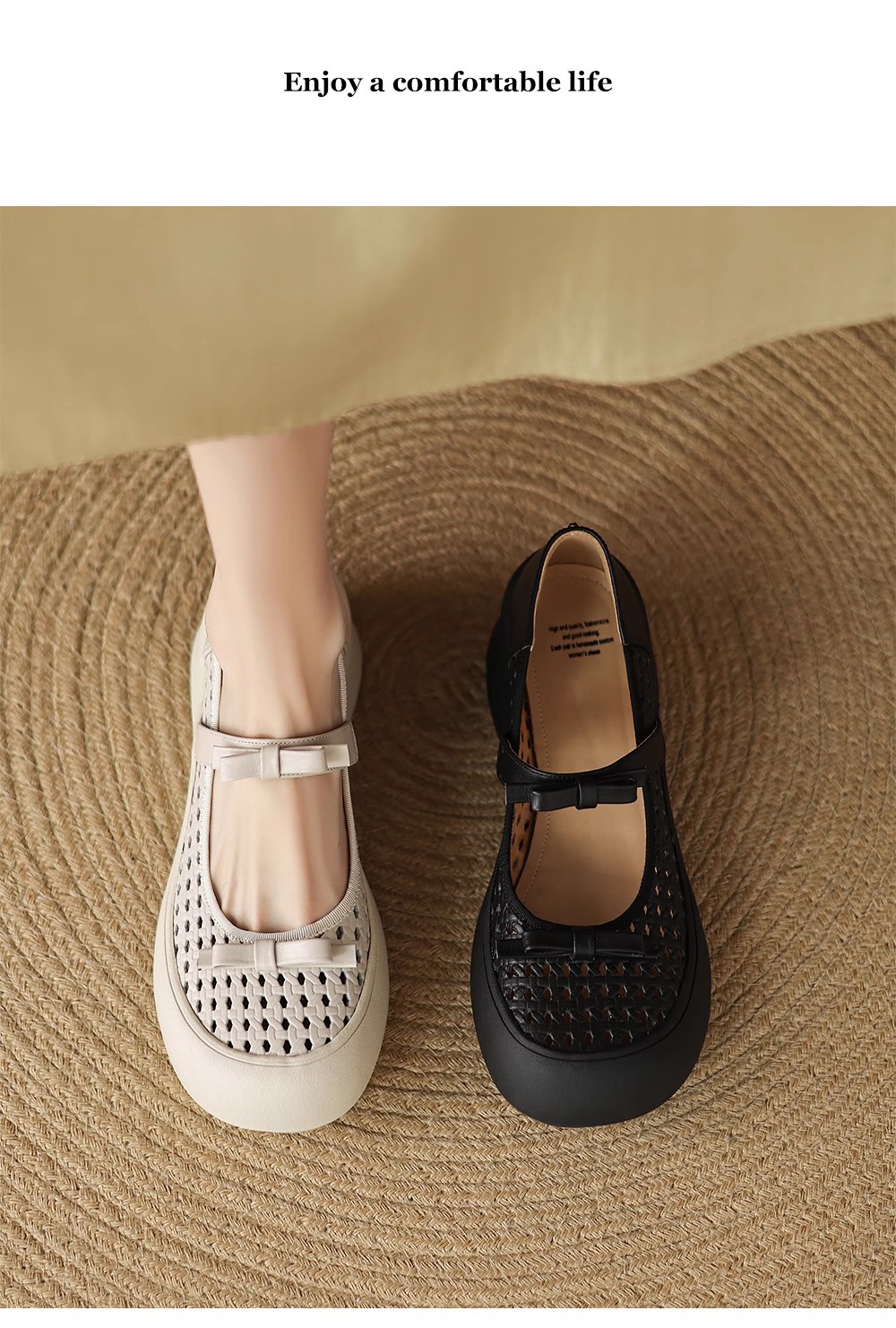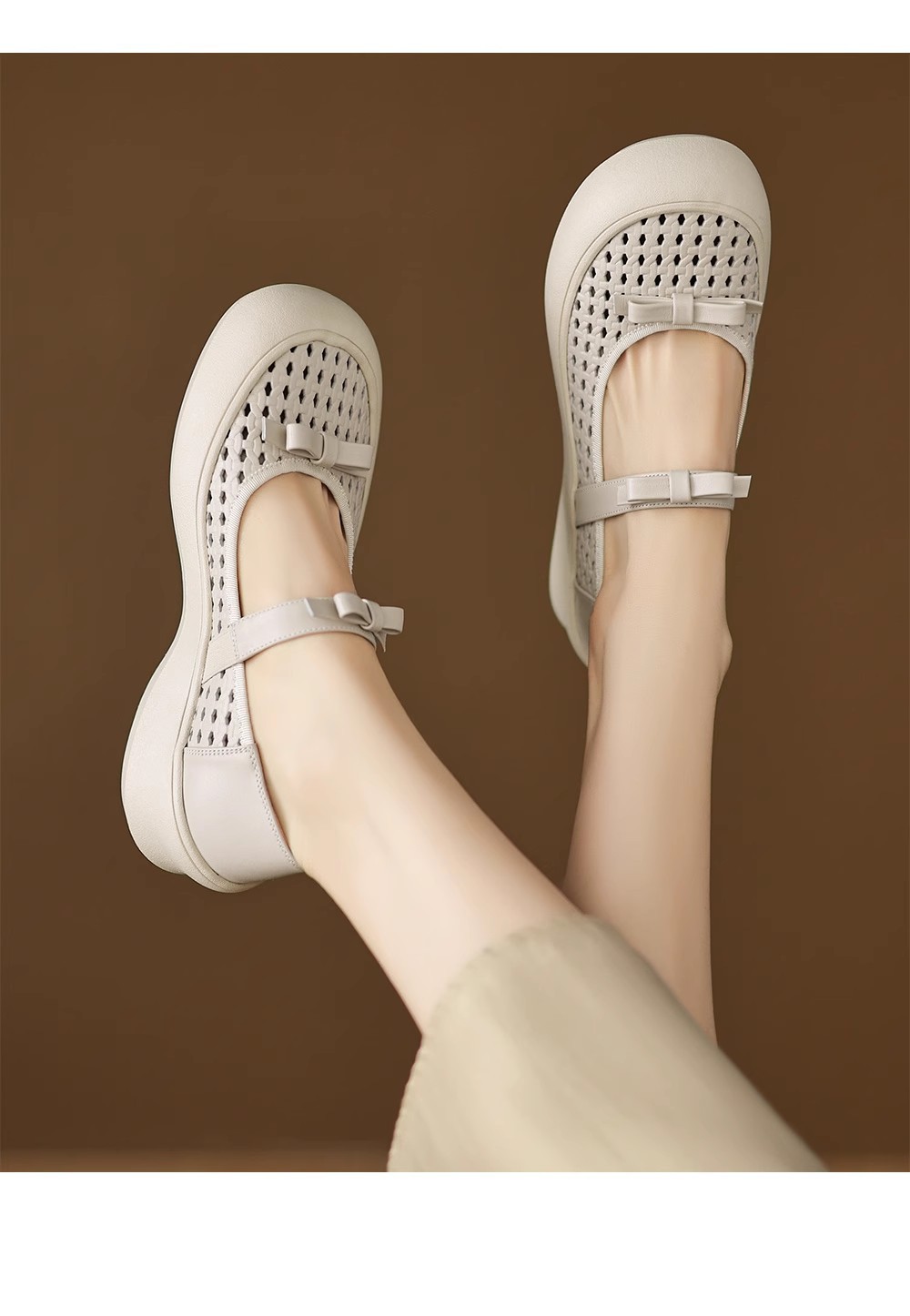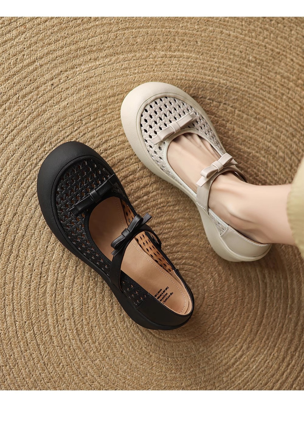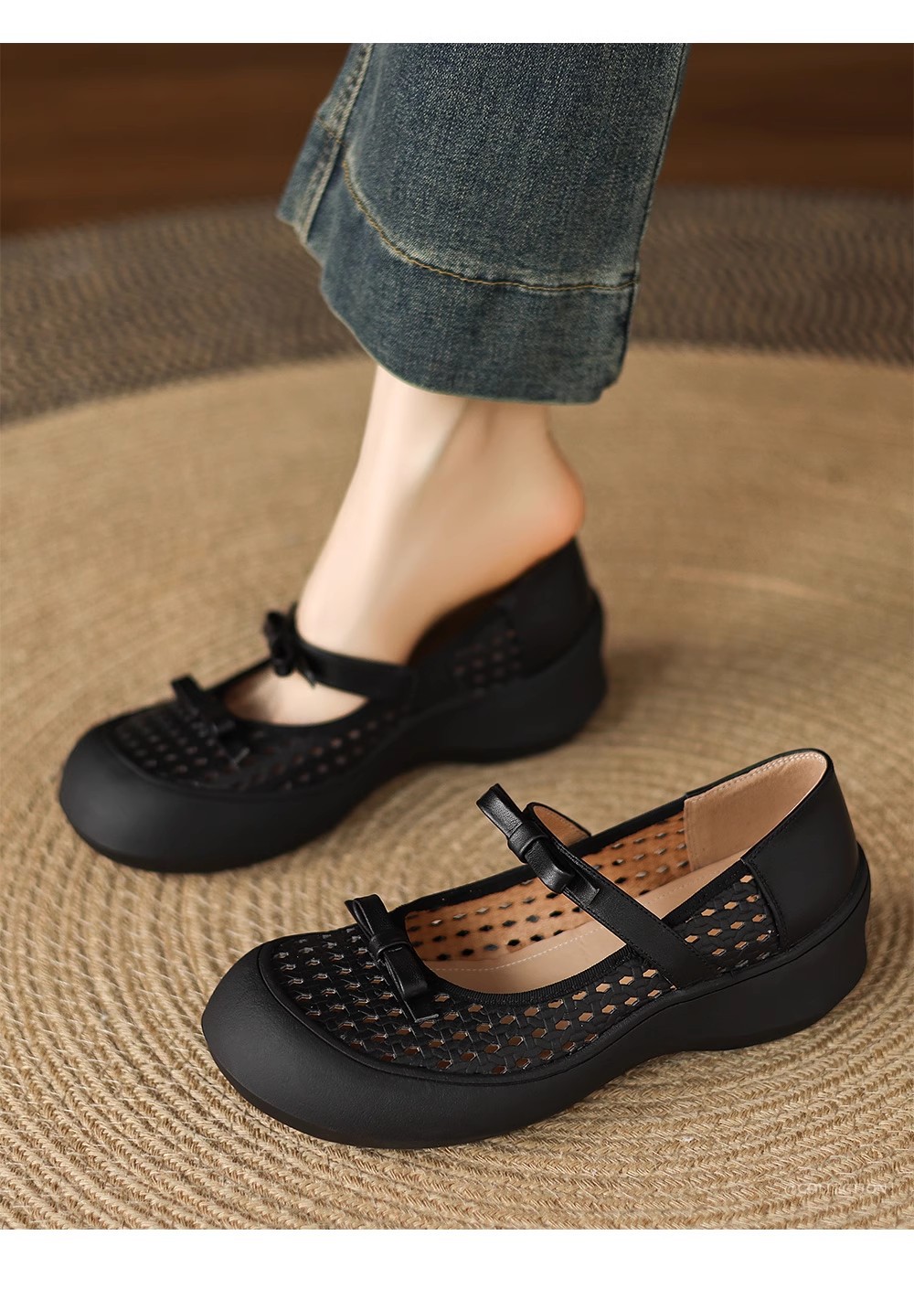 [재고 있음] 5.5cm 부드러운 가죽 두꺼운 밑창 샌들 여성 2025 신작 여름 여성 신발 중공 나비 매듭 캐주얼스토어 가기