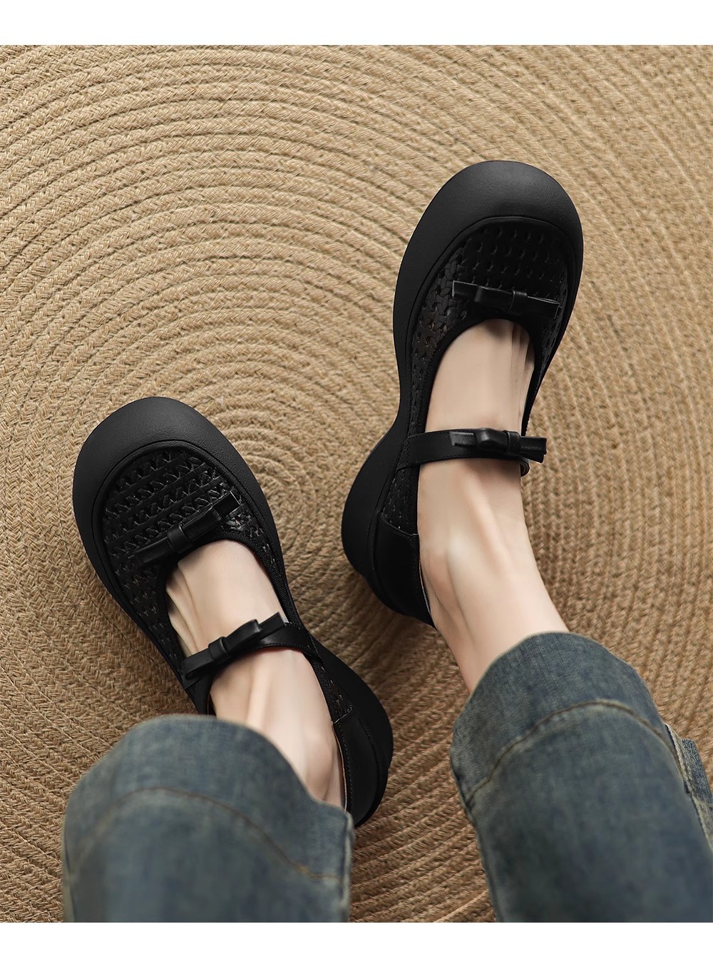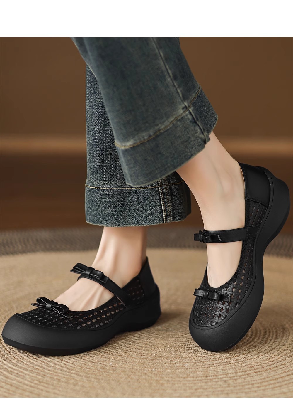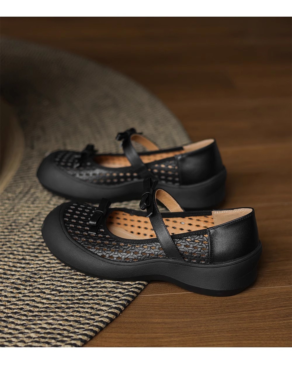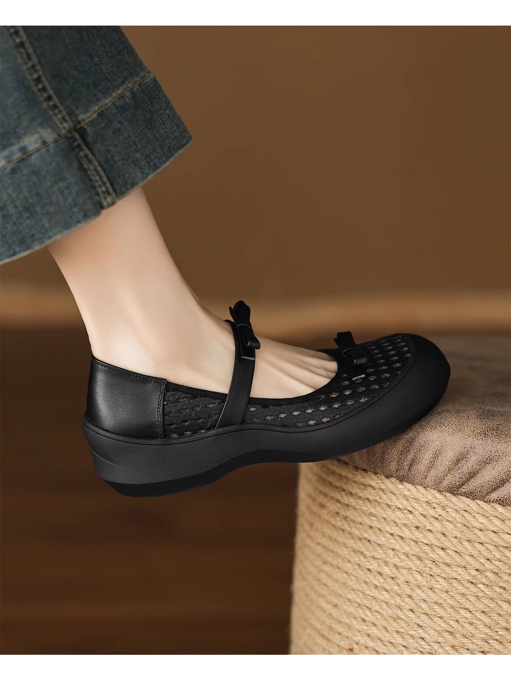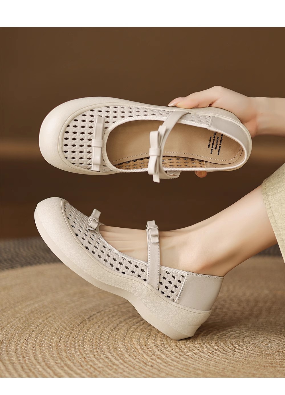 [재고 있음] 5.5cm 부드러운 가죽 두꺼운 밑창 샌들 여성 2025 신작 여름 여성 신발 중공 나비 매듭 캐주얼스토어 가기