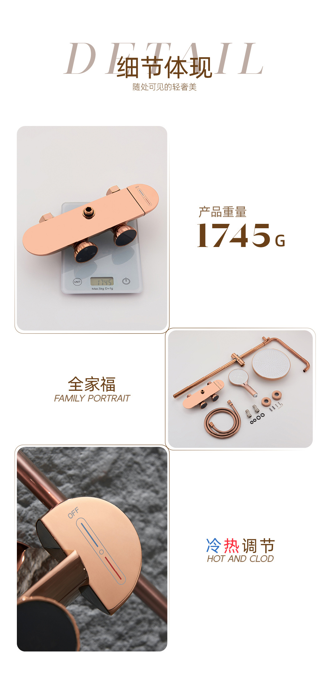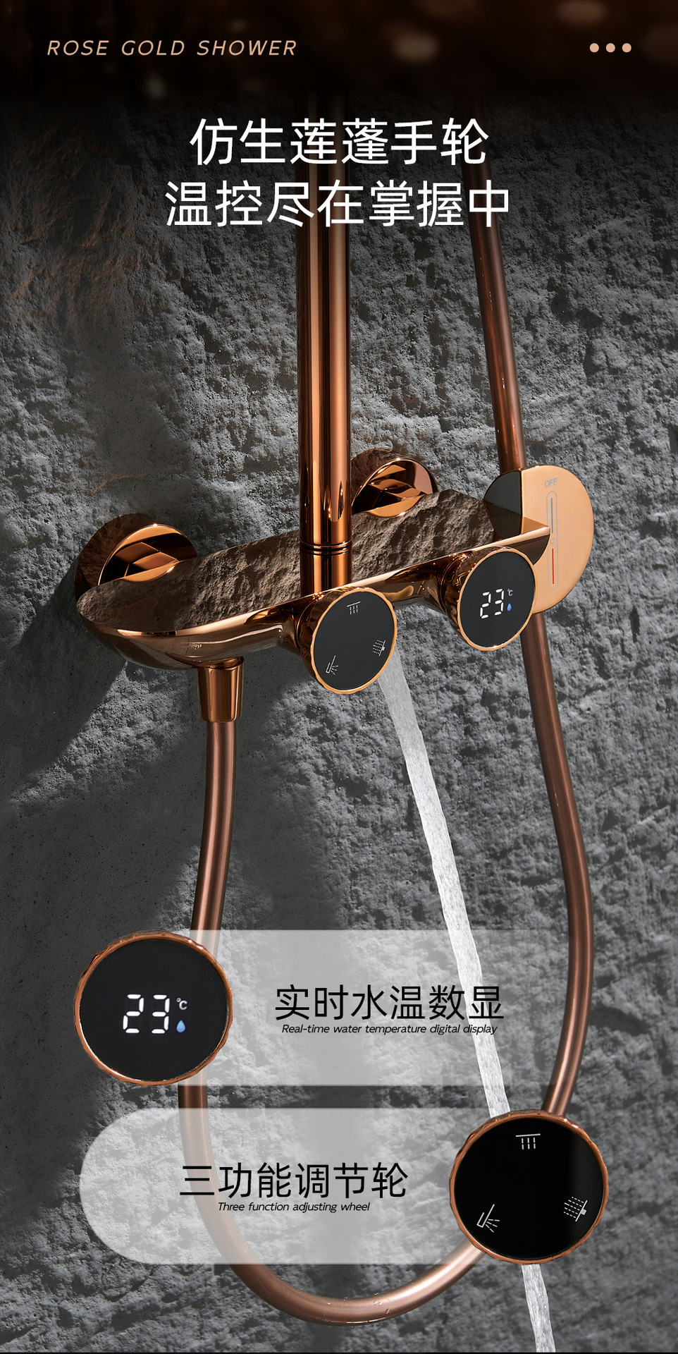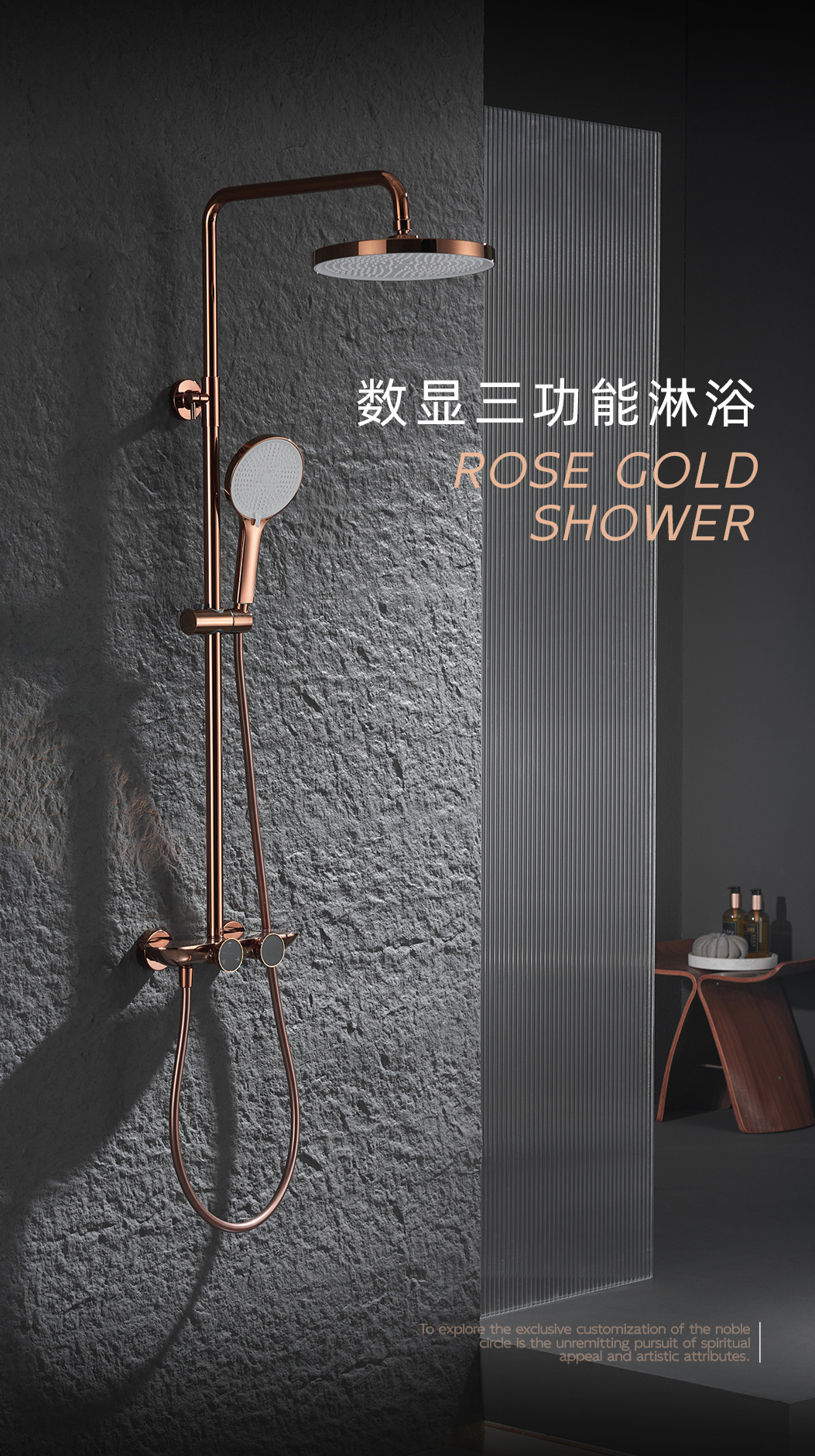 로즈 골드 디지털 디스플레이 샤워 부스터 샤워 세트 홈 욕실 간단한 전체 구리 샤워 샤워 헤드 샤워기