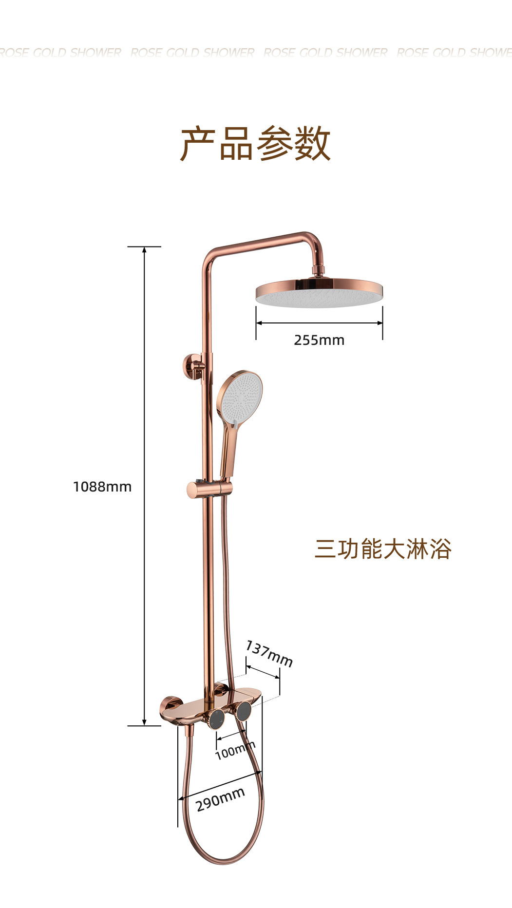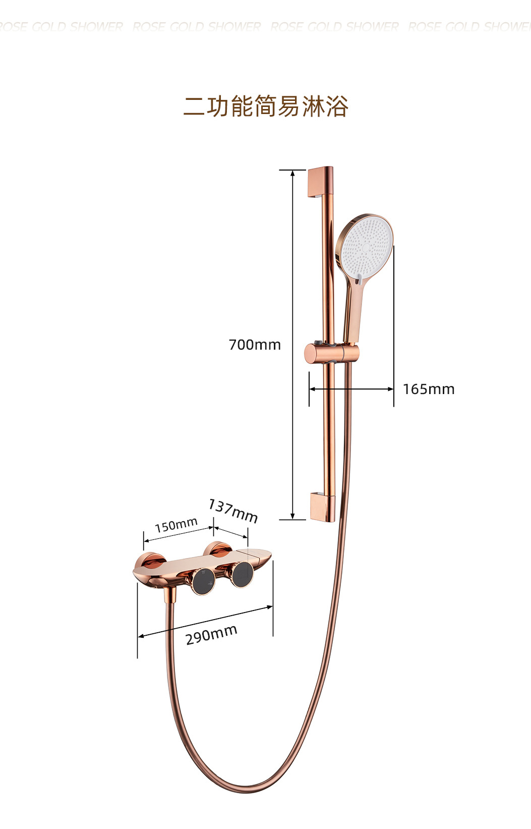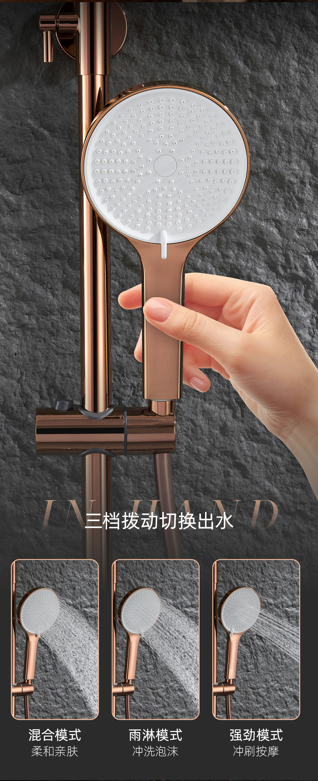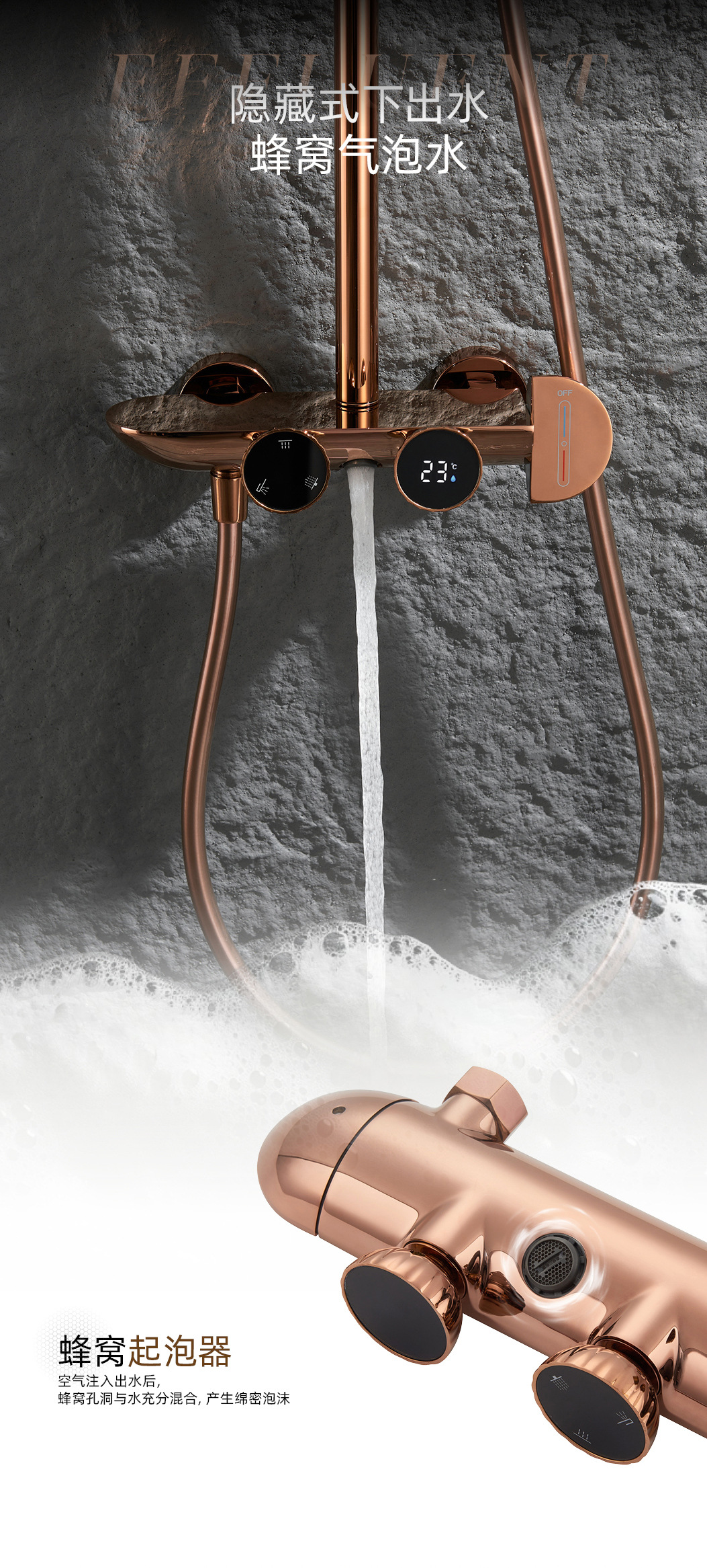 로즈 골드 디지털 디스플레이 샤워 부스터 샤워 세트 홈 욕실 간단한 전체 구리 샤워 샤워 헤드 샤워기