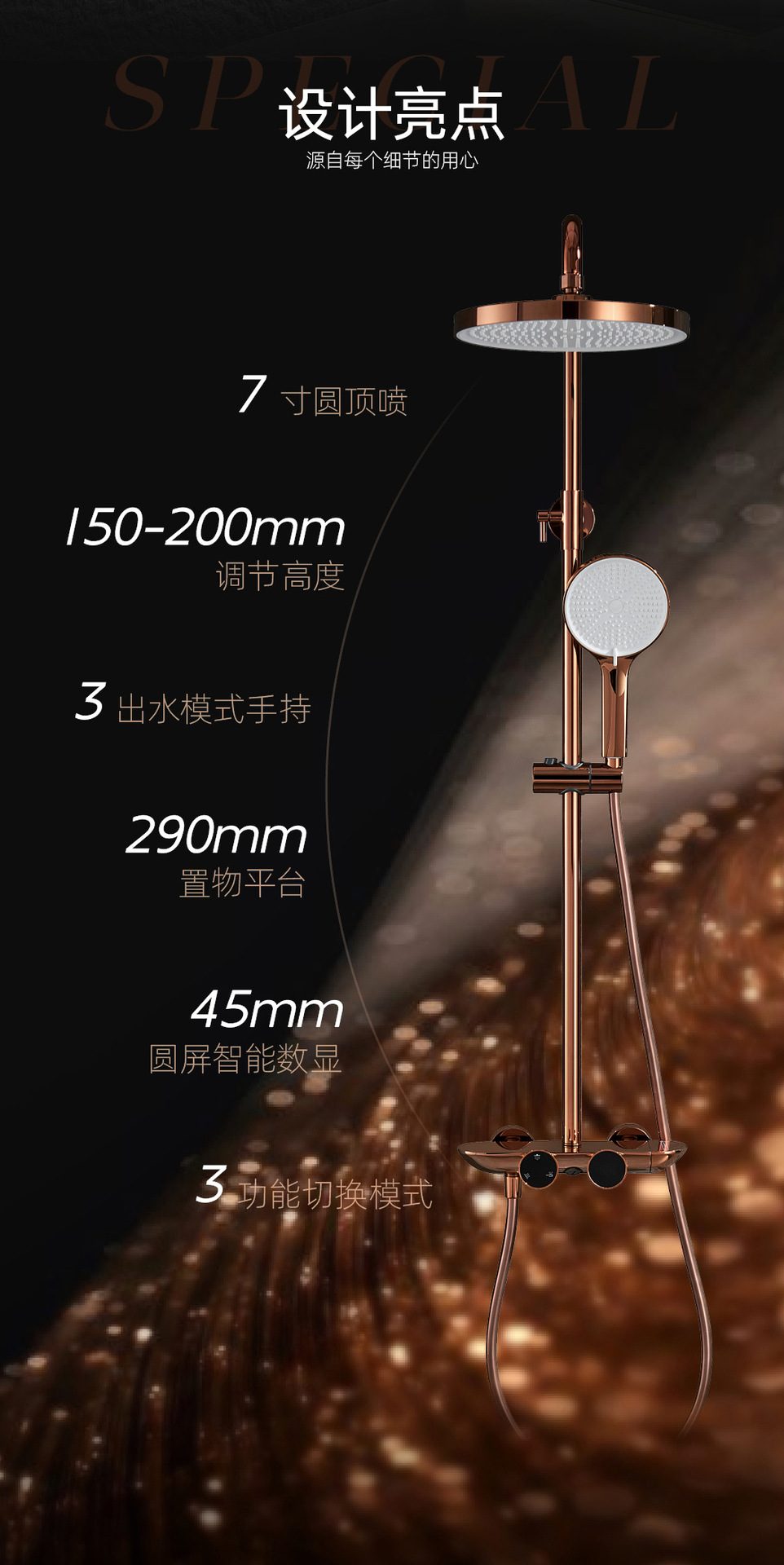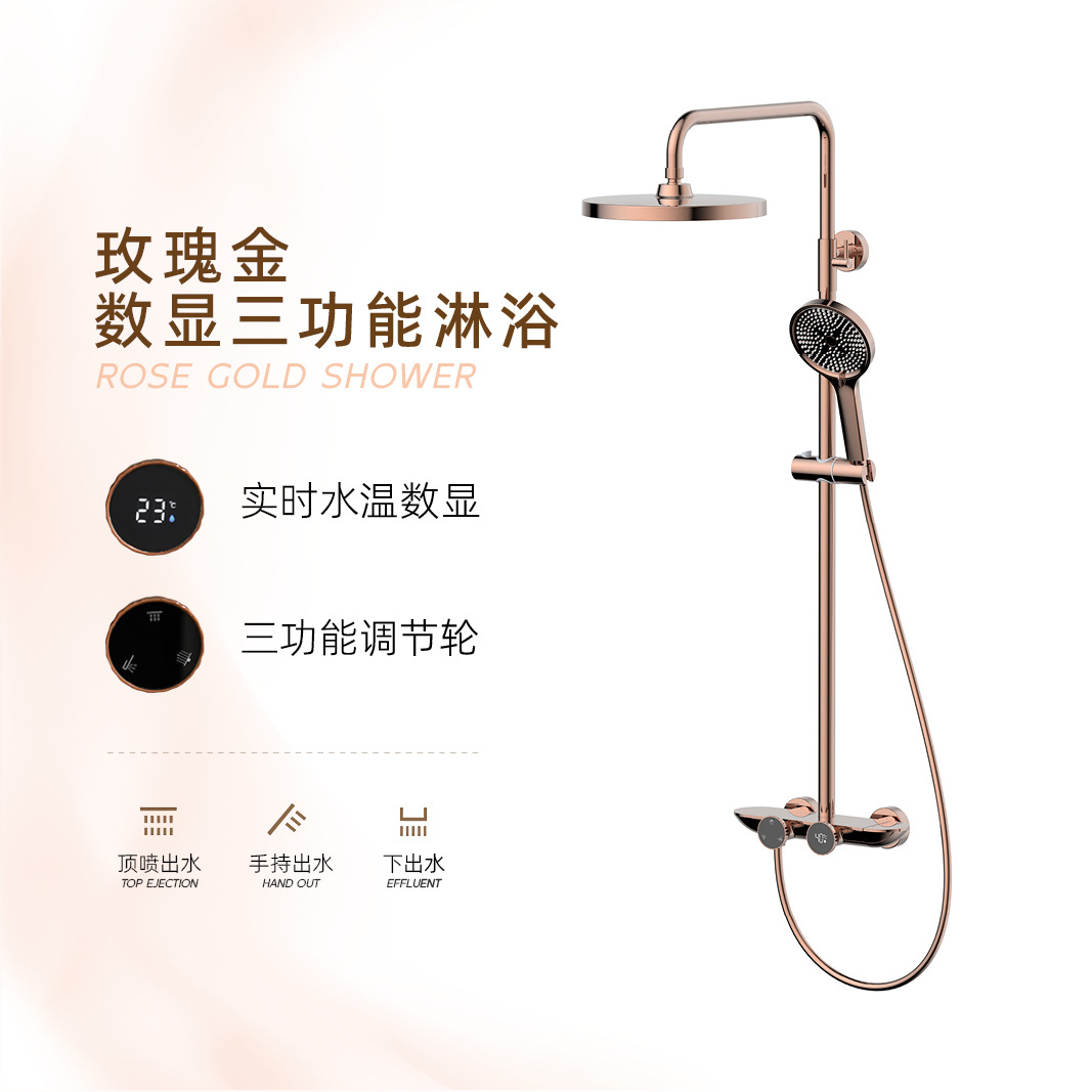 로즈 골드 디지털 디스플레이 샤워 부스터 샤워 세트 홈 욕실 간단한 전체 구리 샤워 샤워 헤드 샤워기스토어 가기