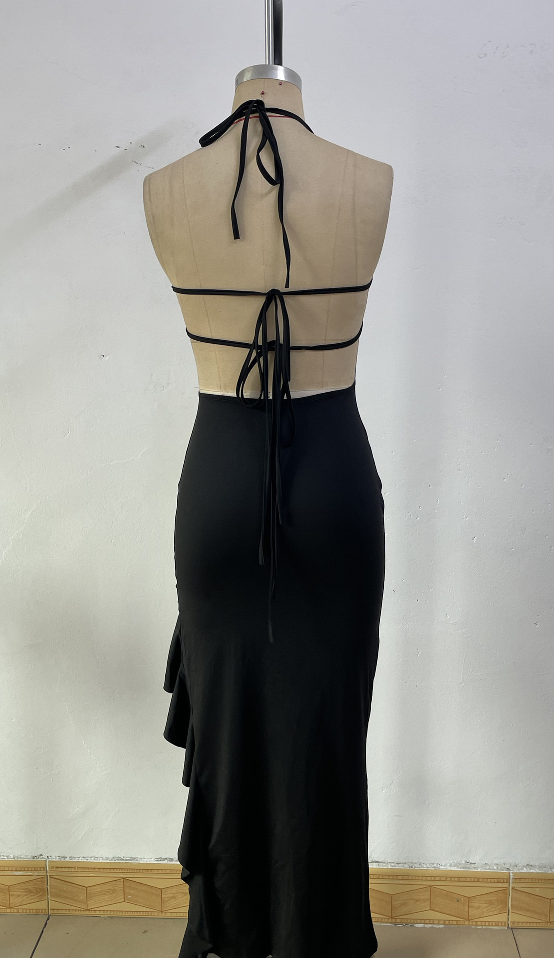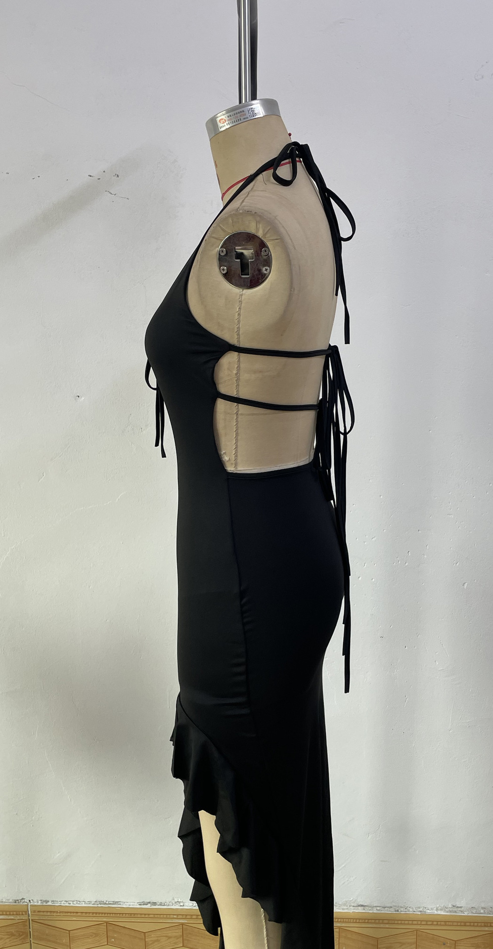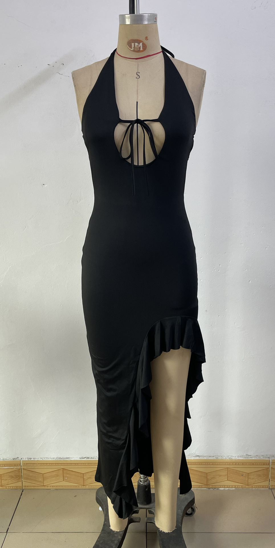 G25D040-2025 새로운 여성의 기질 섹시한 뜨거운 소녀 불규칙한 슬릿 깊은 V 홀터 드레스스토어 가기