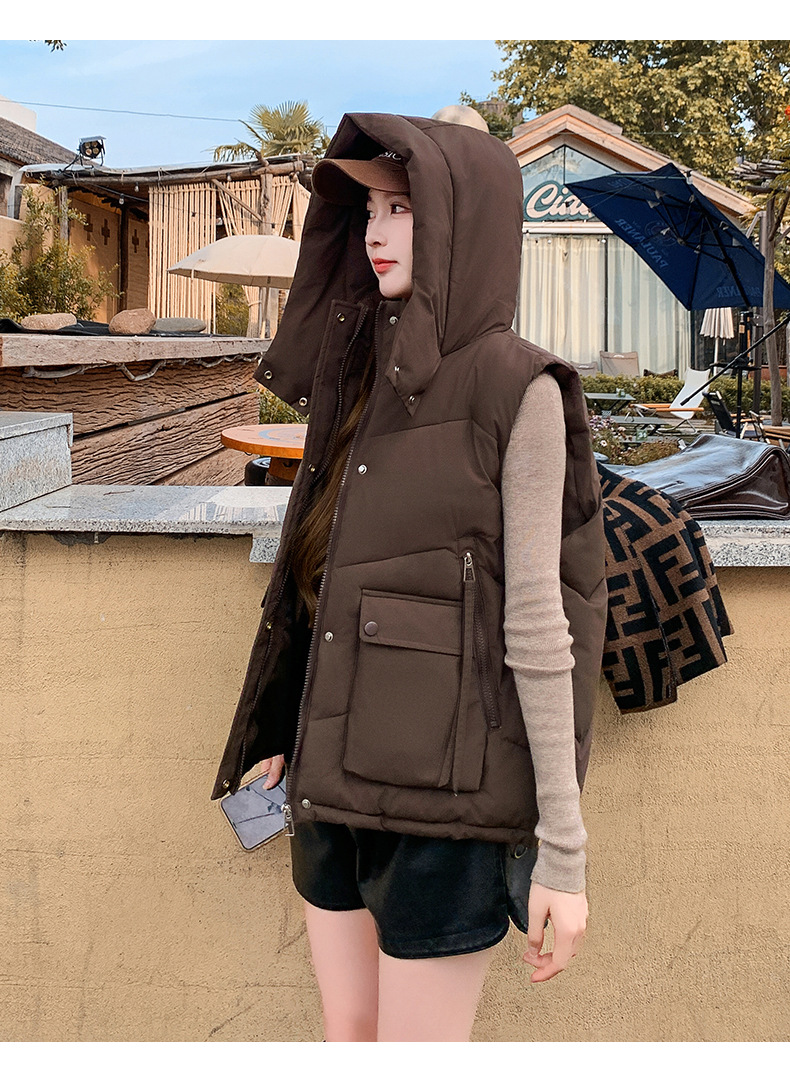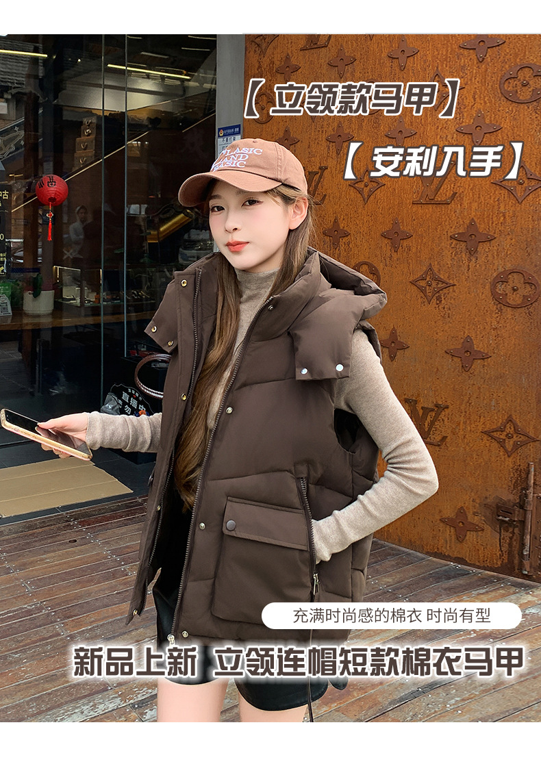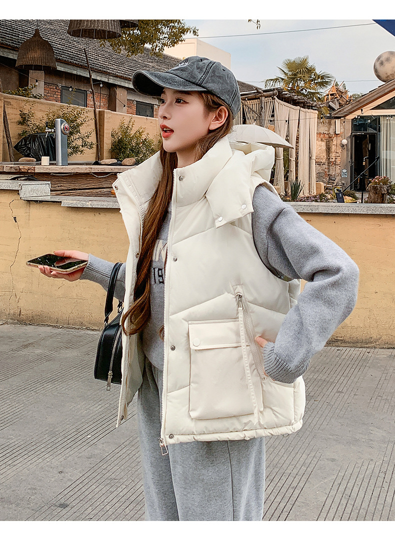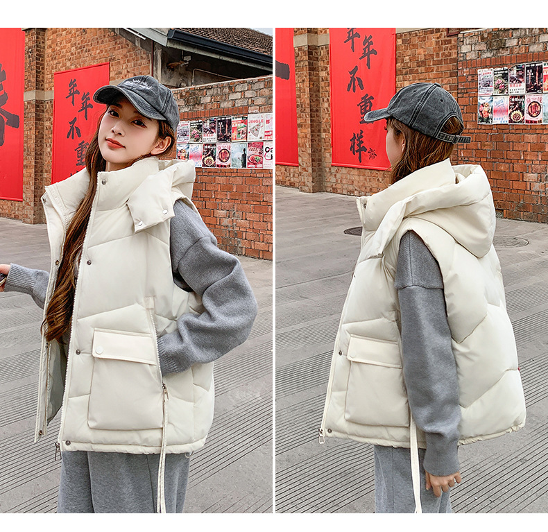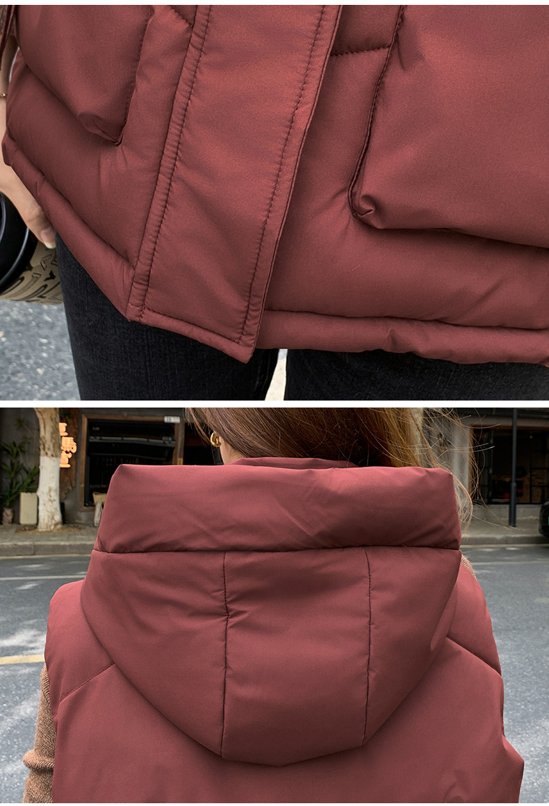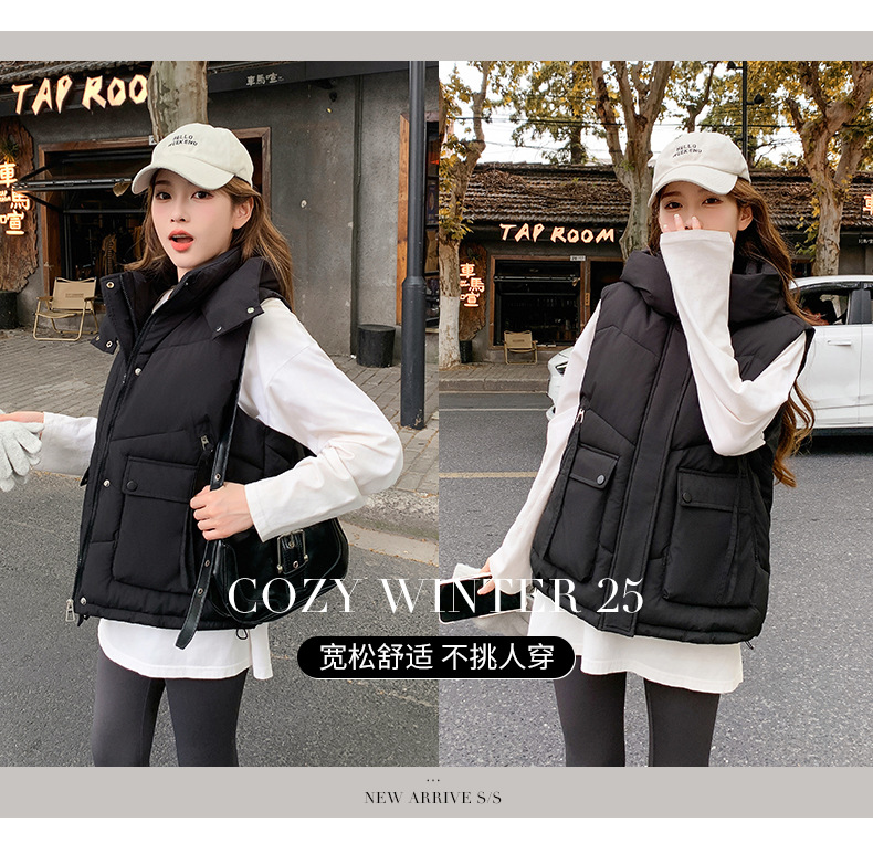2025년 가을 겨울 여성용 짧은 다운 코튼 조끼 새로운 유럽 스타일의 두꺼운 외부 조끼 후드 조끼스토어 가기