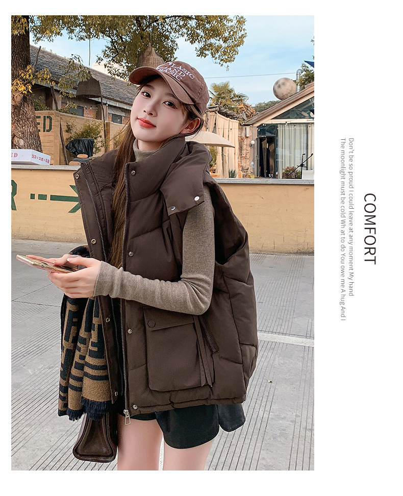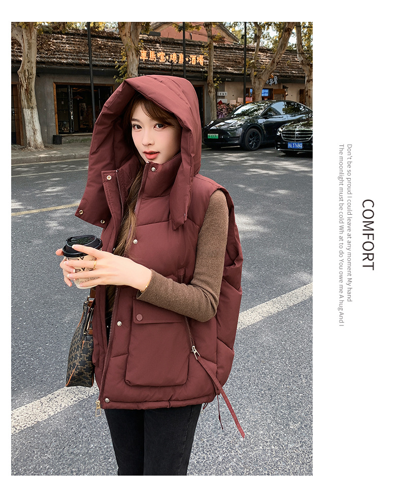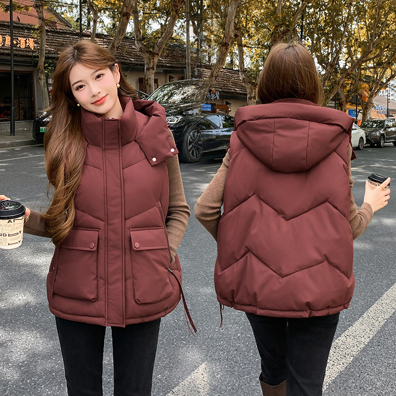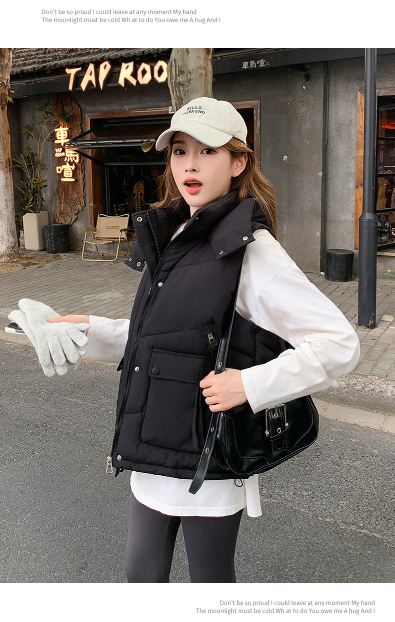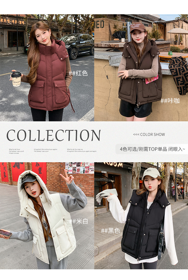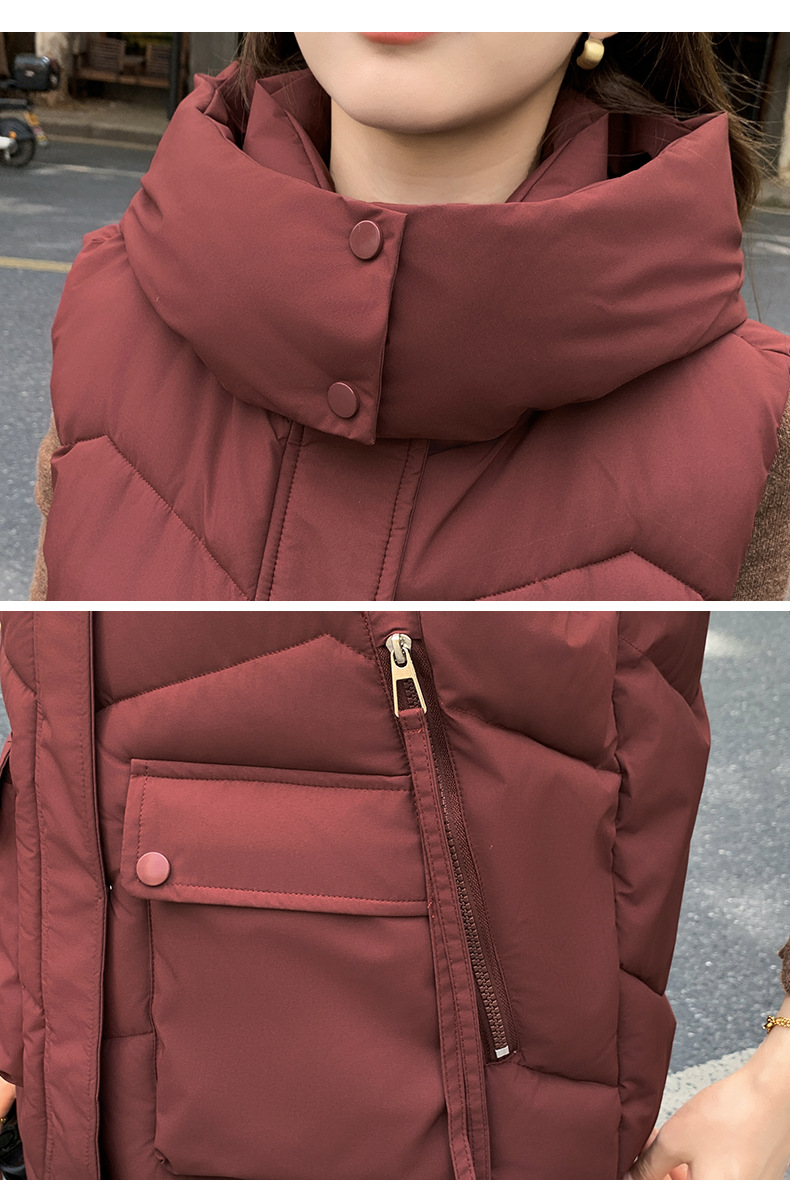 2025년 가을 겨울 여성용 짧은 다운 코튼 조끼 새로운 유럽 스타일의 두꺼운 외부 조끼 후드 조끼스토어 가기