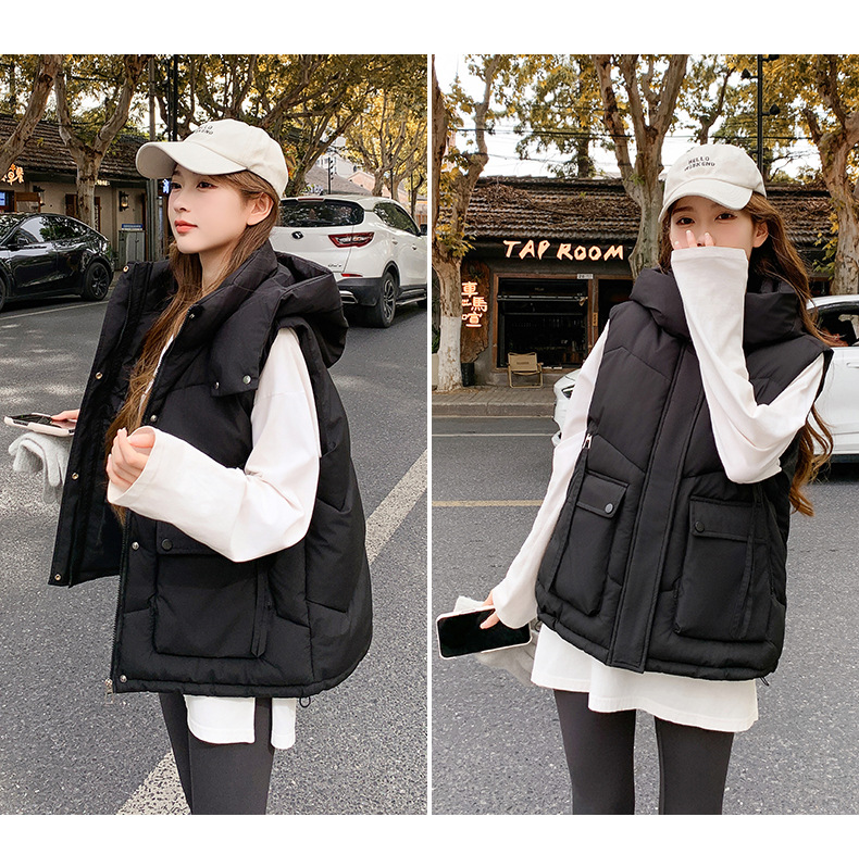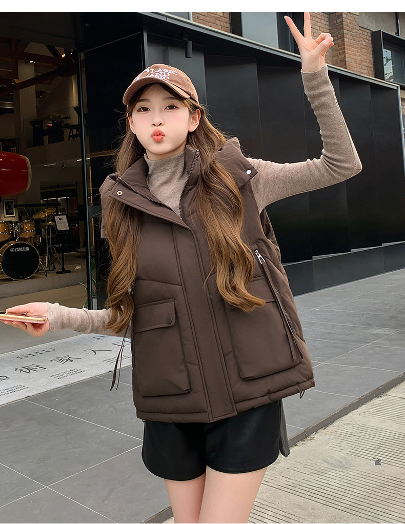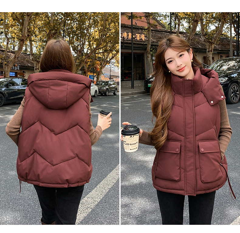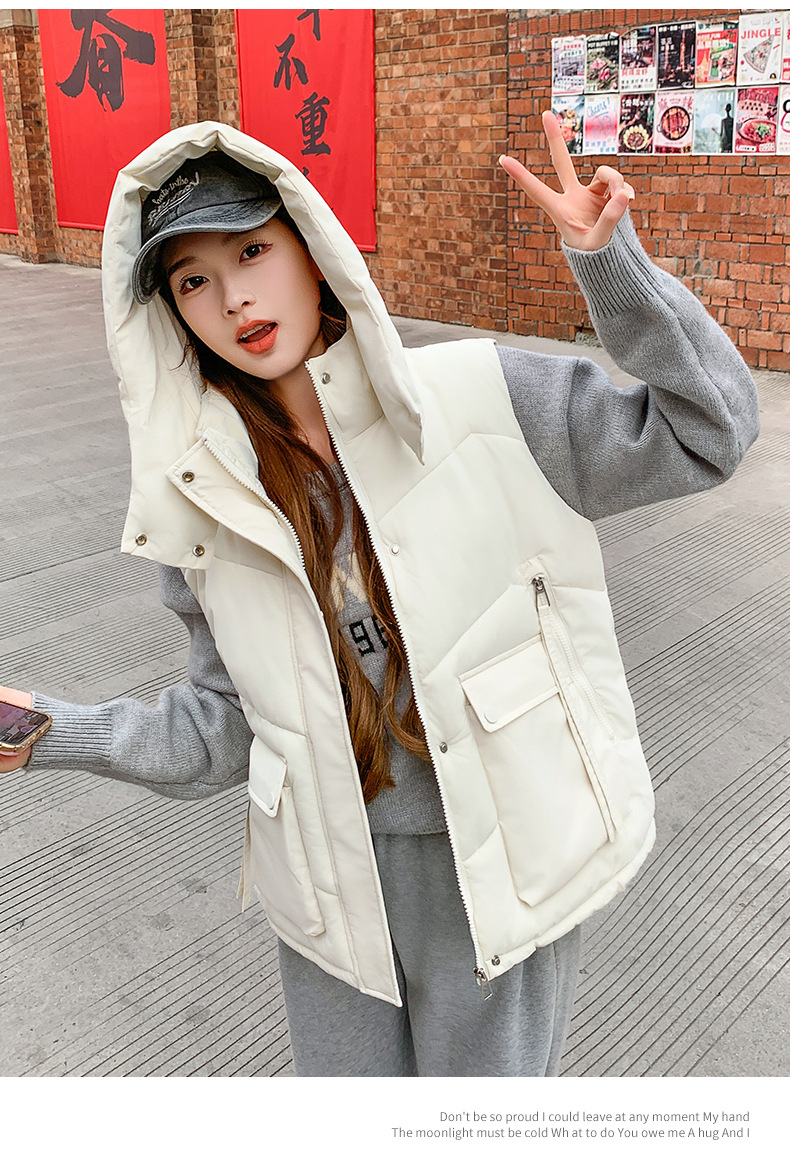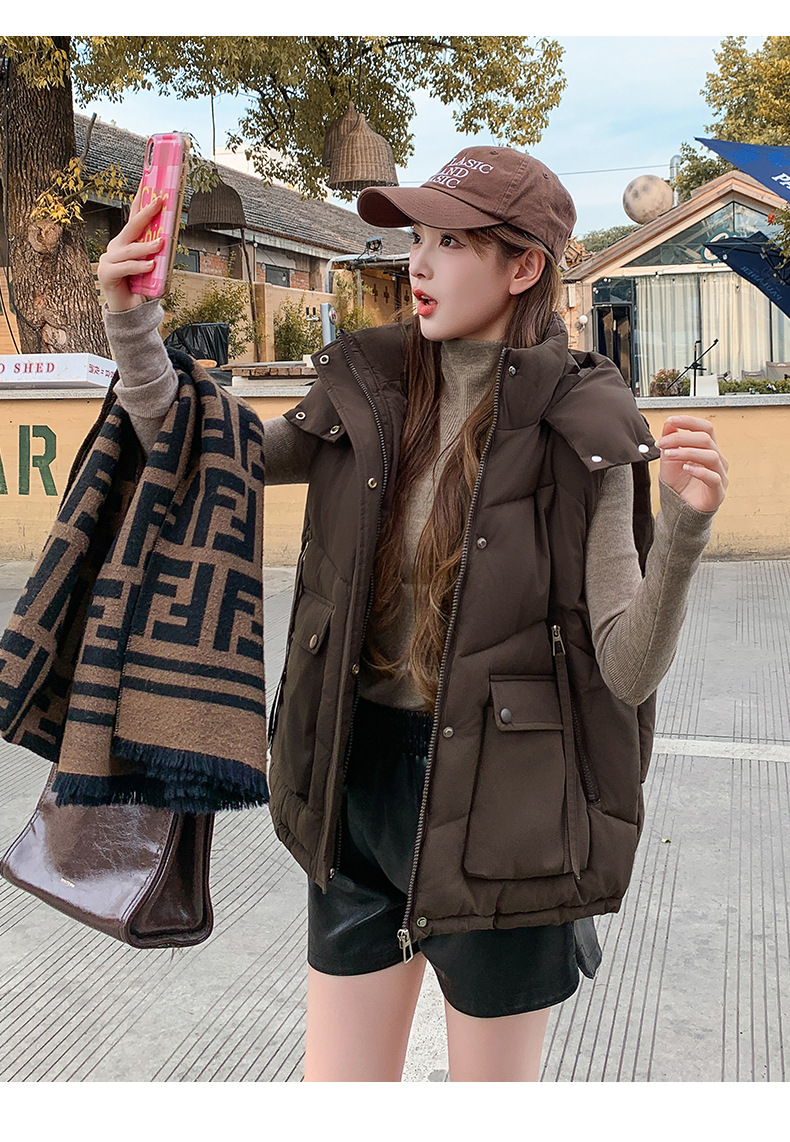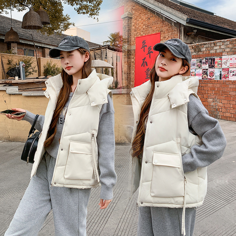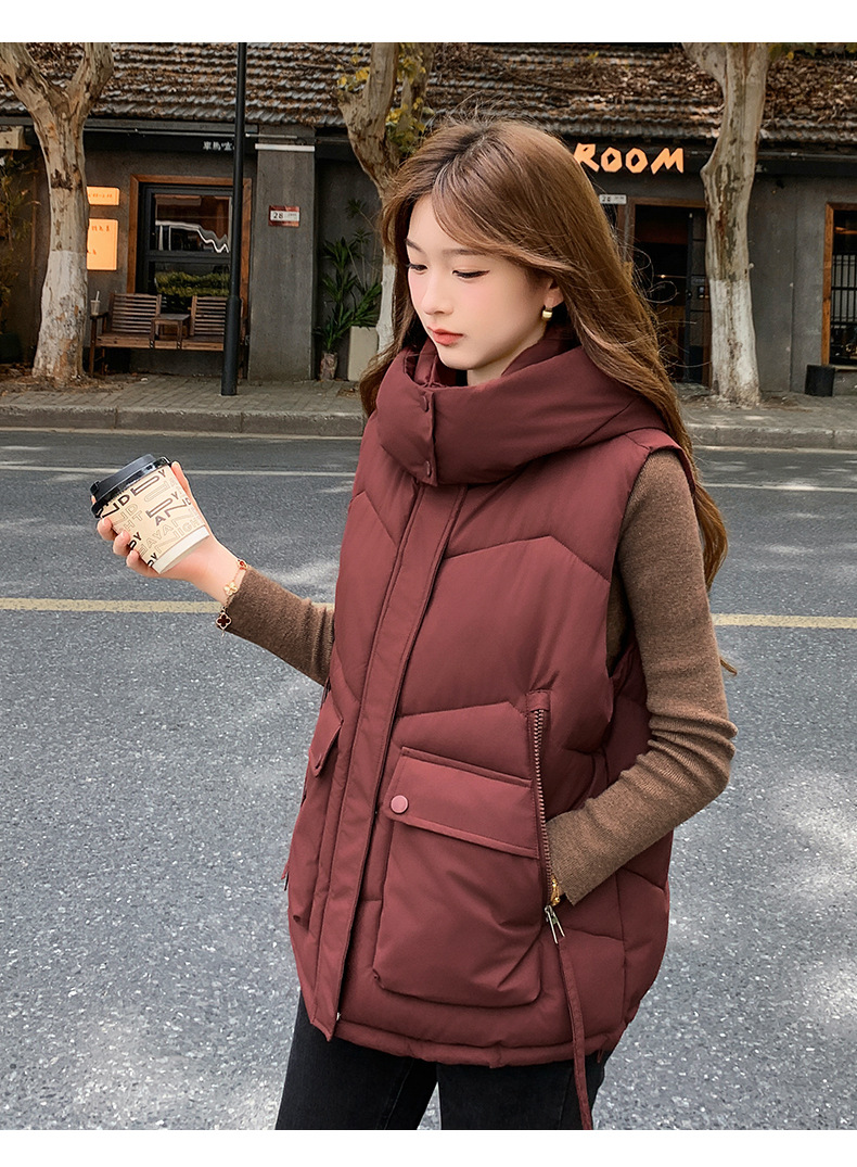 2025년 가을 겨울 여성용 짧은 다운 코튼 조끼 새로운 유럽 스타일의 두꺼운 외부 조끼 후드 조끼스토어 가기