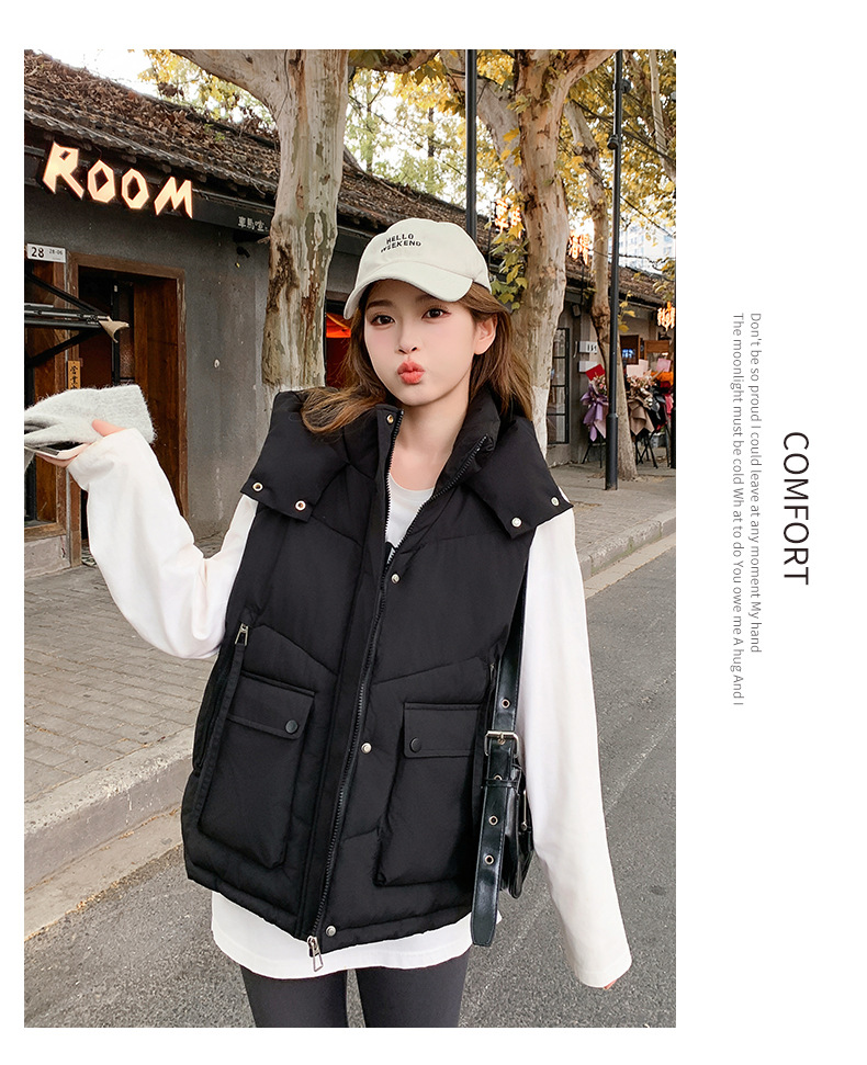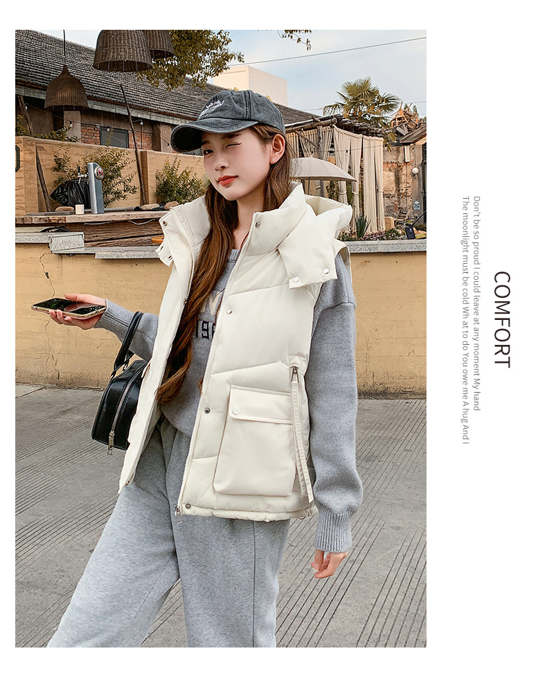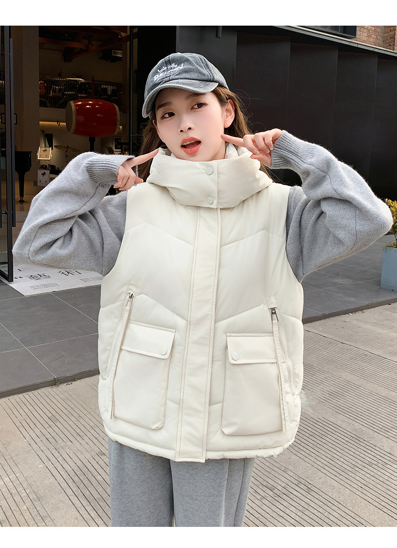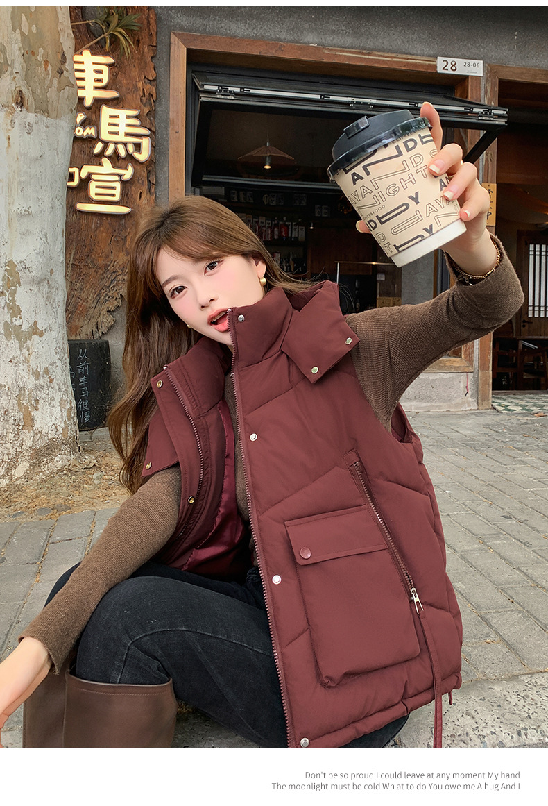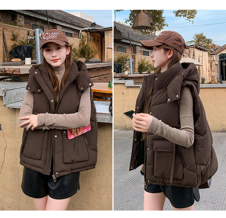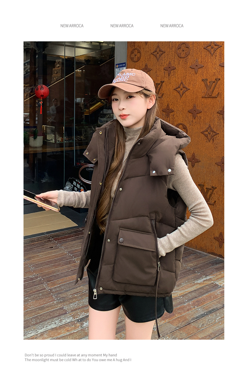 2025년 가을 겨울 여성용 짧은 다운 코튼 조끼 새로운 유럽 스타일의 두꺼운 외부 조끼 후드 조끼스토어 가기
