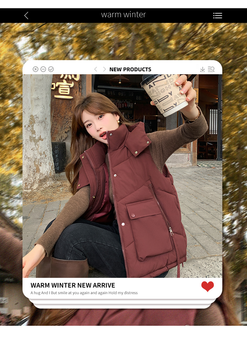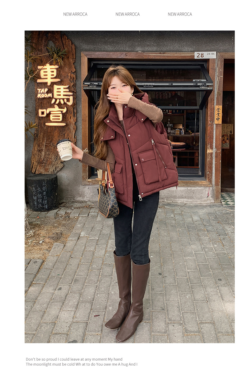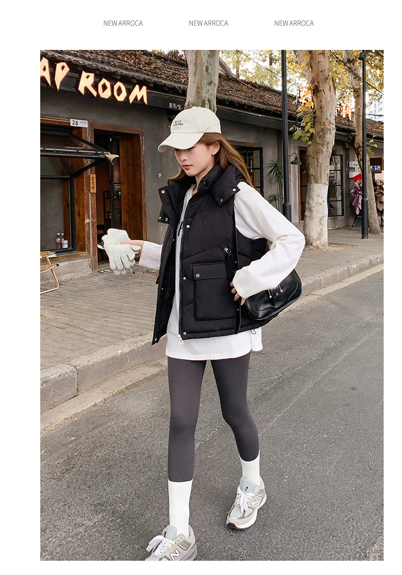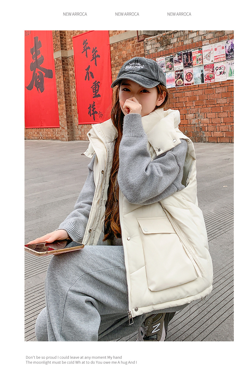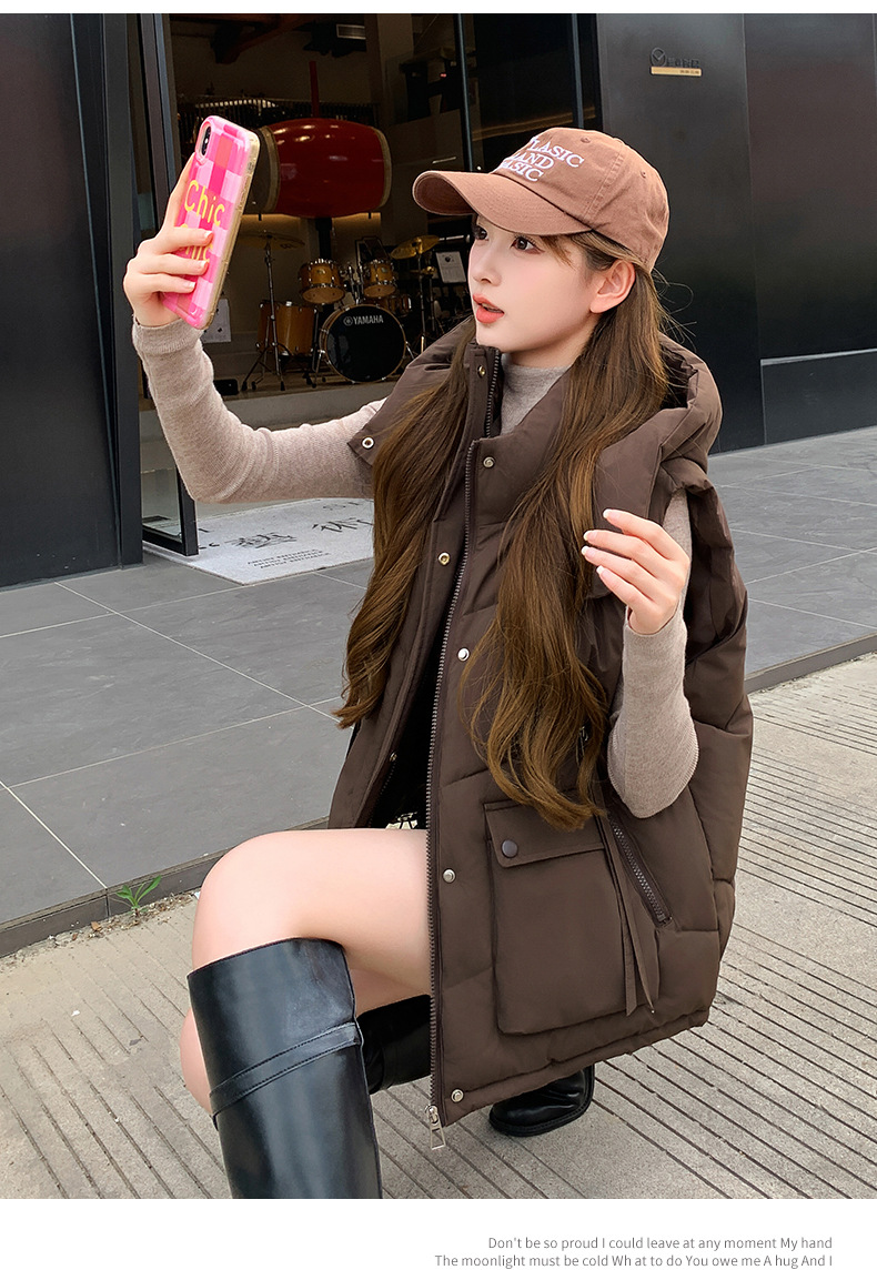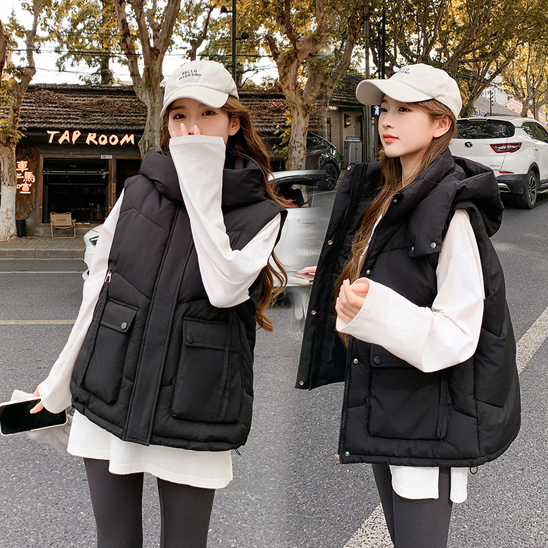 2025년 가을 겨울 여성용 짧은 다운 코튼 조끼 새로운 유럽 스타일의 두꺼운 외부 조끼 후드 조끼스토어 가기