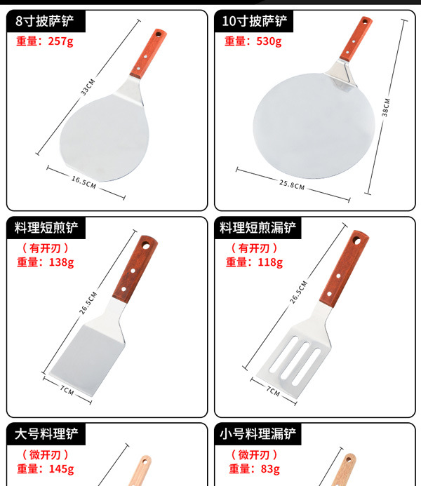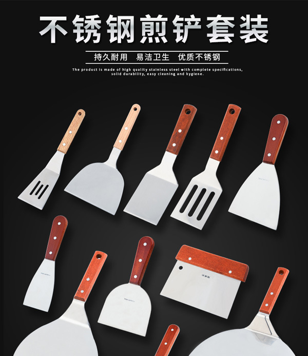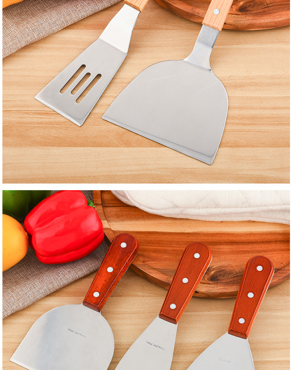 제조 업체 도매 스테인레스 스틸 요리 주걱 피자 주걱 나무 손잡이 스테이크 프라이팬 주방 요리 철판 요리 도구 세트스토어 가기