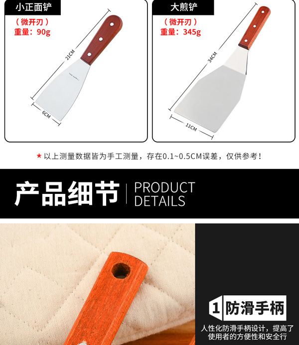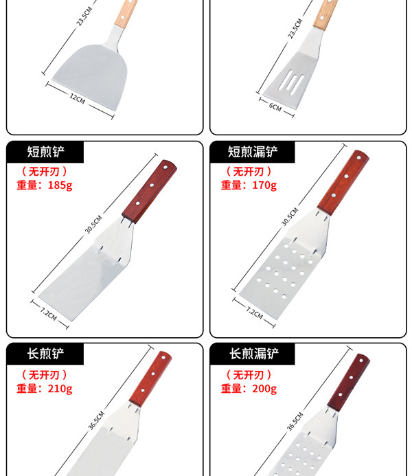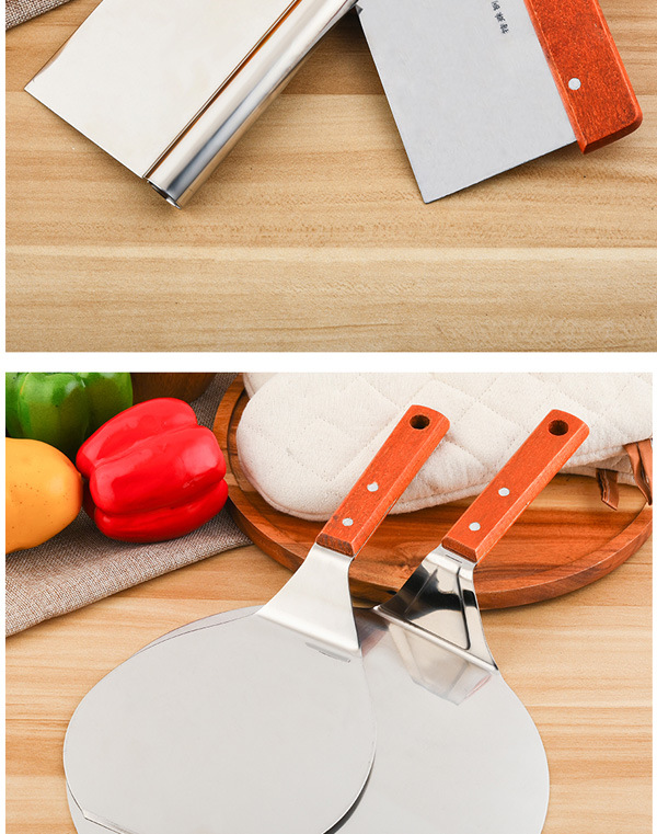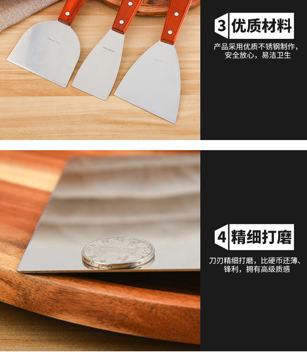 제조 업체 도매 스테인레스 스틸 요리 주걱 피자 주걱 나무 손잡이 스테이크 프라이팬 주방 요리 철판 요리 도구 세트
