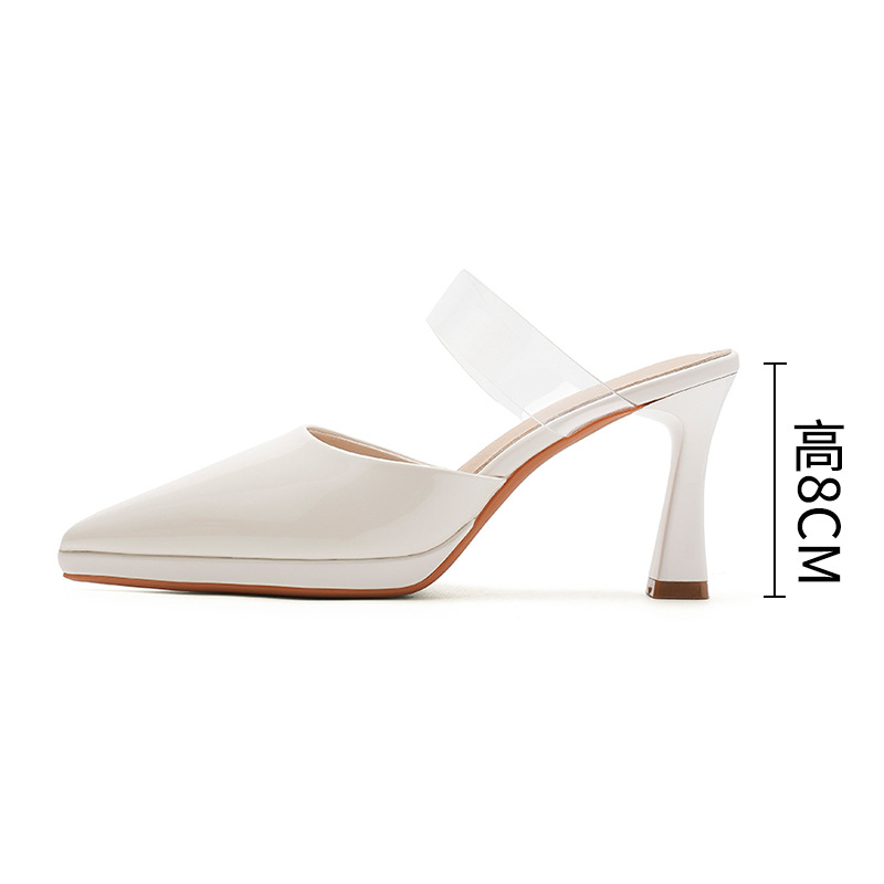 105-A 여성용 투명한 앞코와 뒷부분이 빈 하이힐 슬리퍼, 야외에서 신을 수 있는 뾰족한 발가락과 얇은 굽의 샌들, 게으른 사람들을 위한 슬립온 슬리퍼