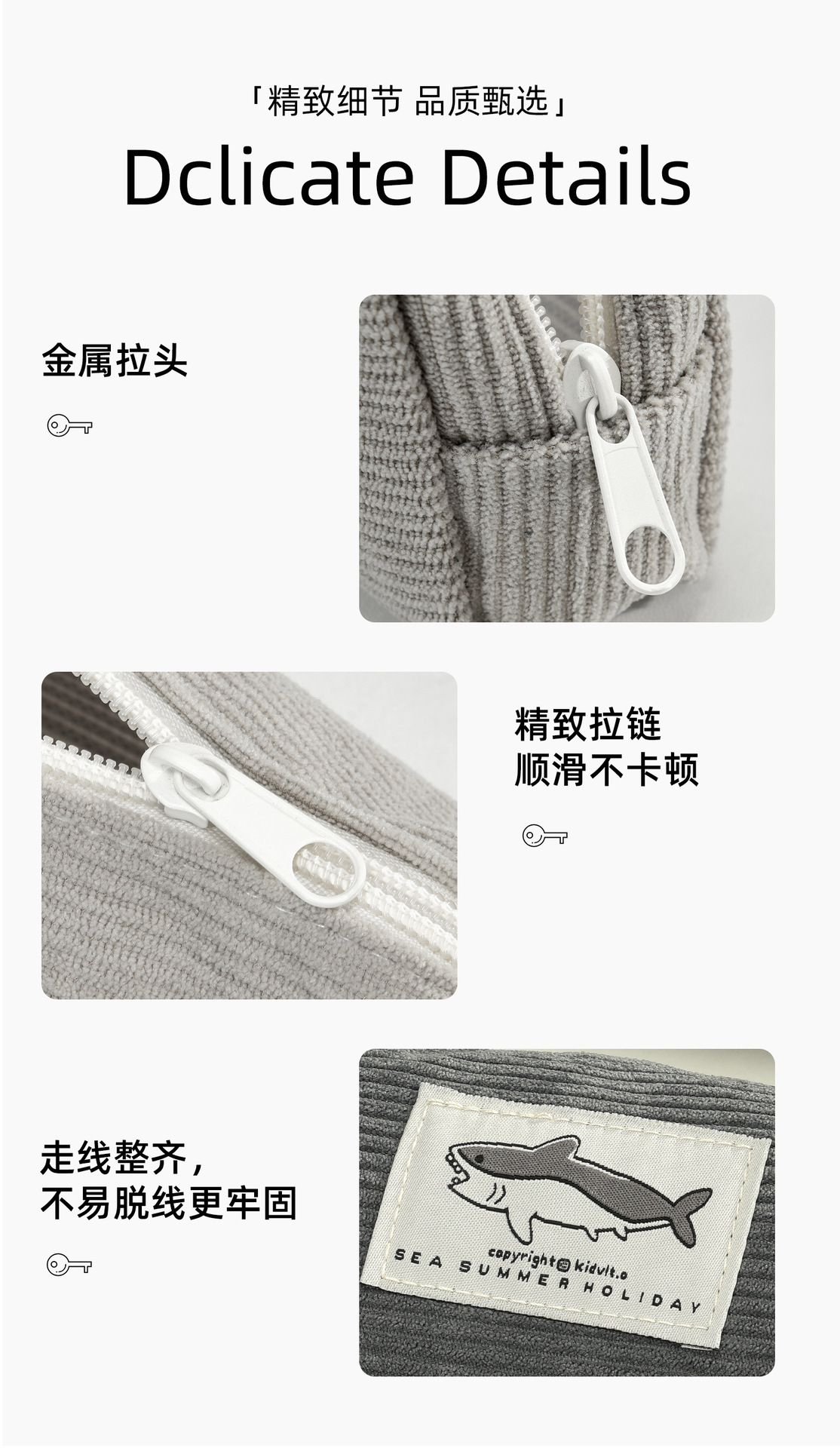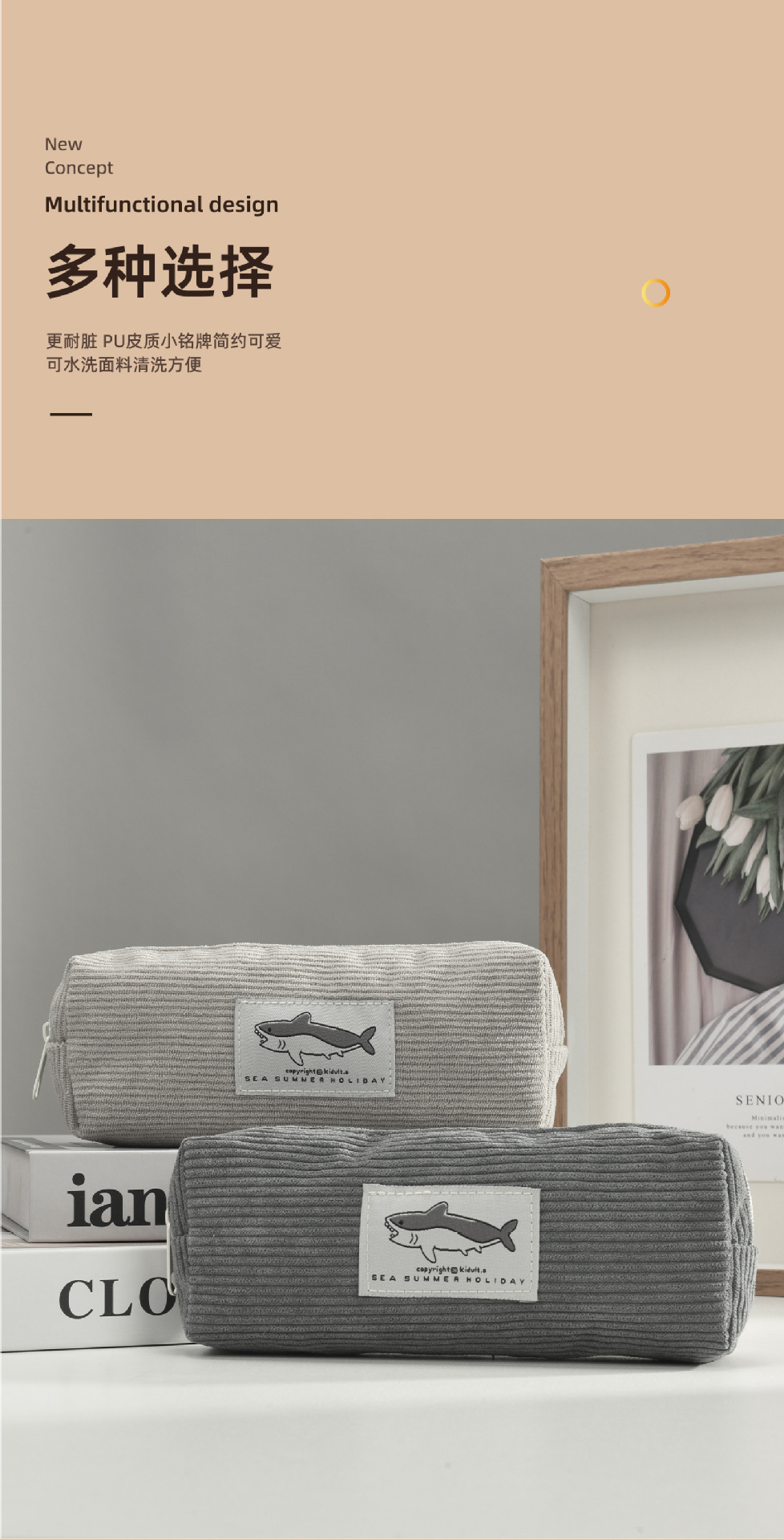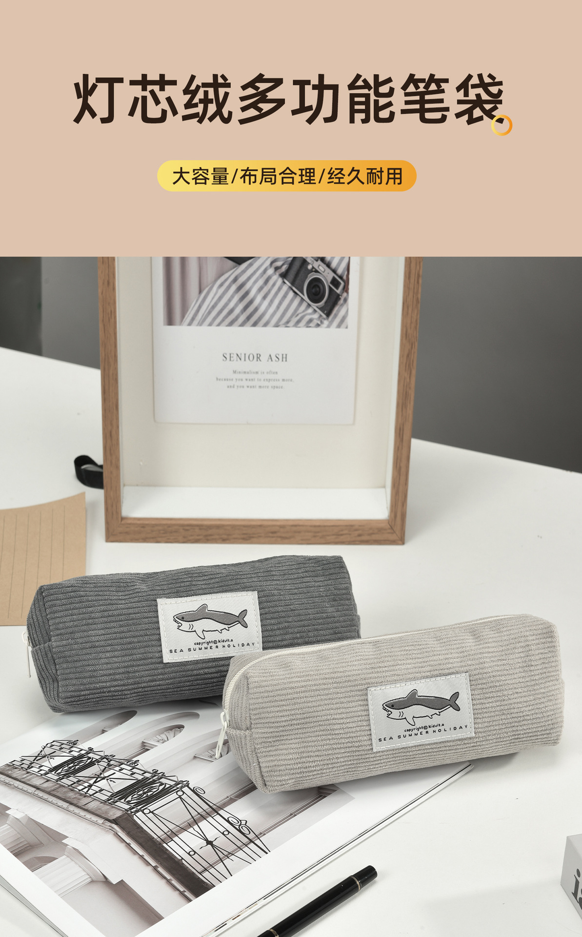 일본과 한국의 패션 코듀로이 소재 필통 대용량 심플 필통 학생 다기능 귀여운 문구 가방 수납