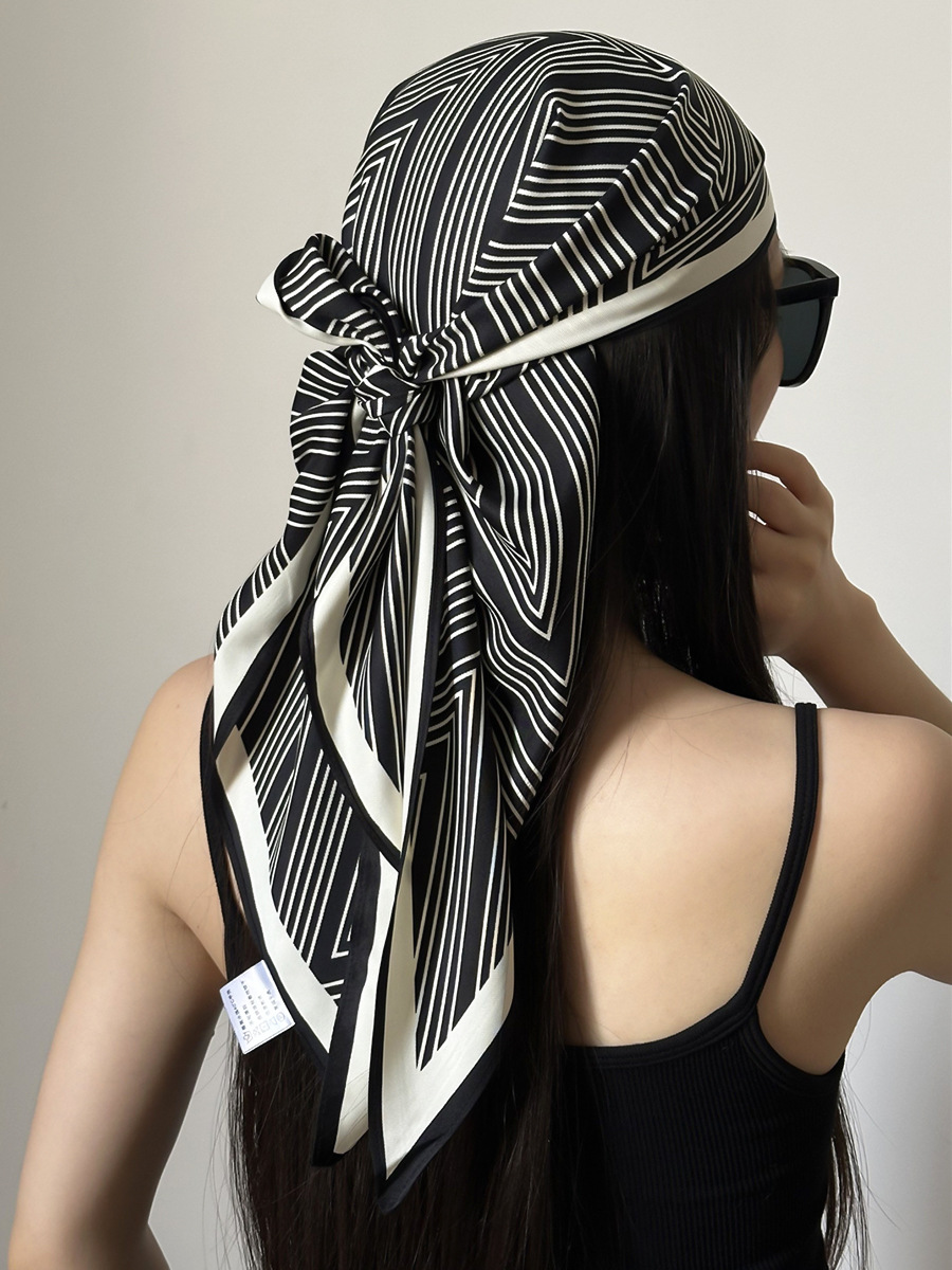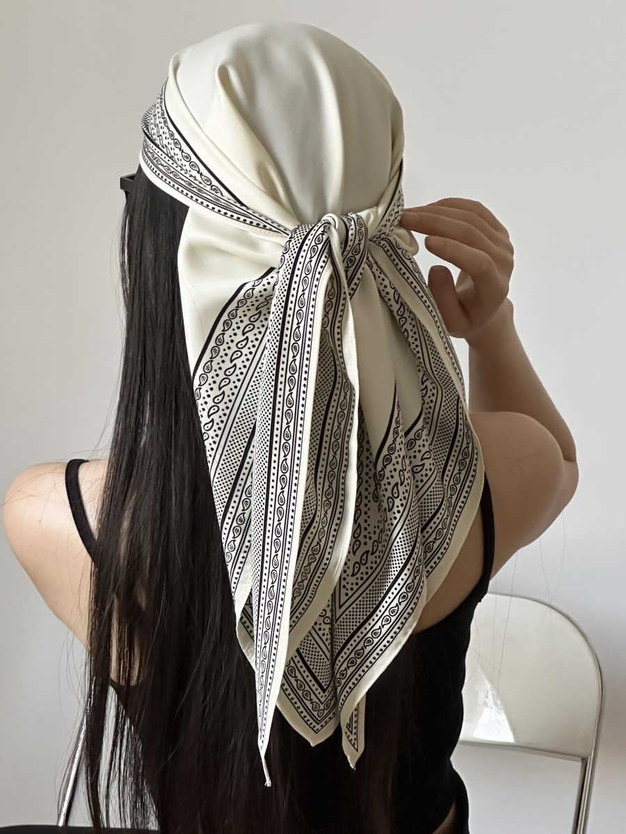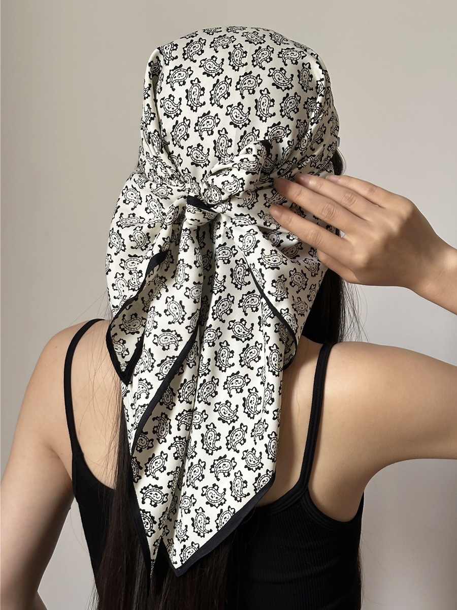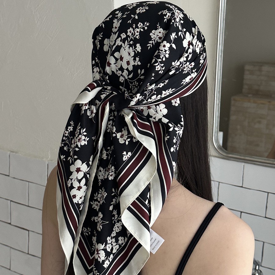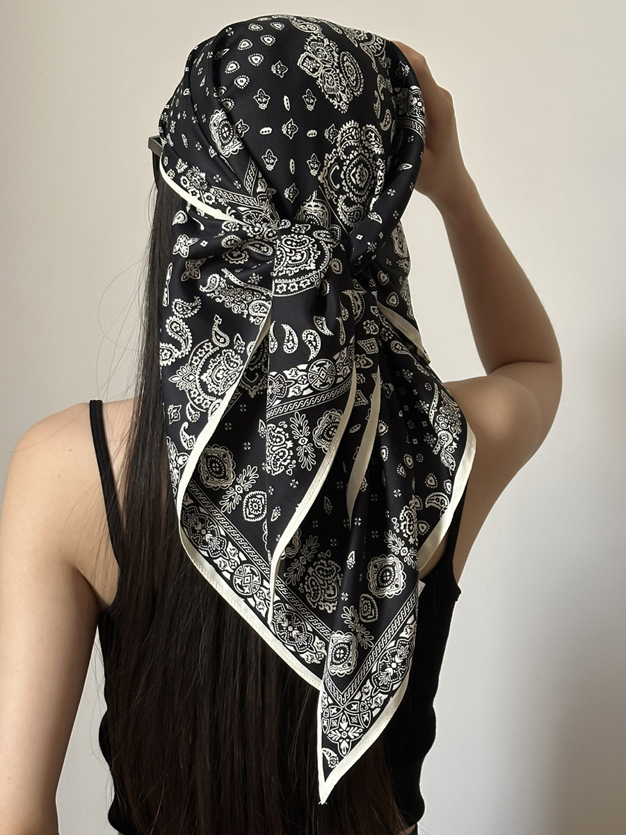 여름 분위기의 여성용 블랙 캐슈 플라워 라지 트라이앵글 스카프, 터번 장식, 여성용 맞춤형 실크 스카프, 가슴 스커트스토어 가기