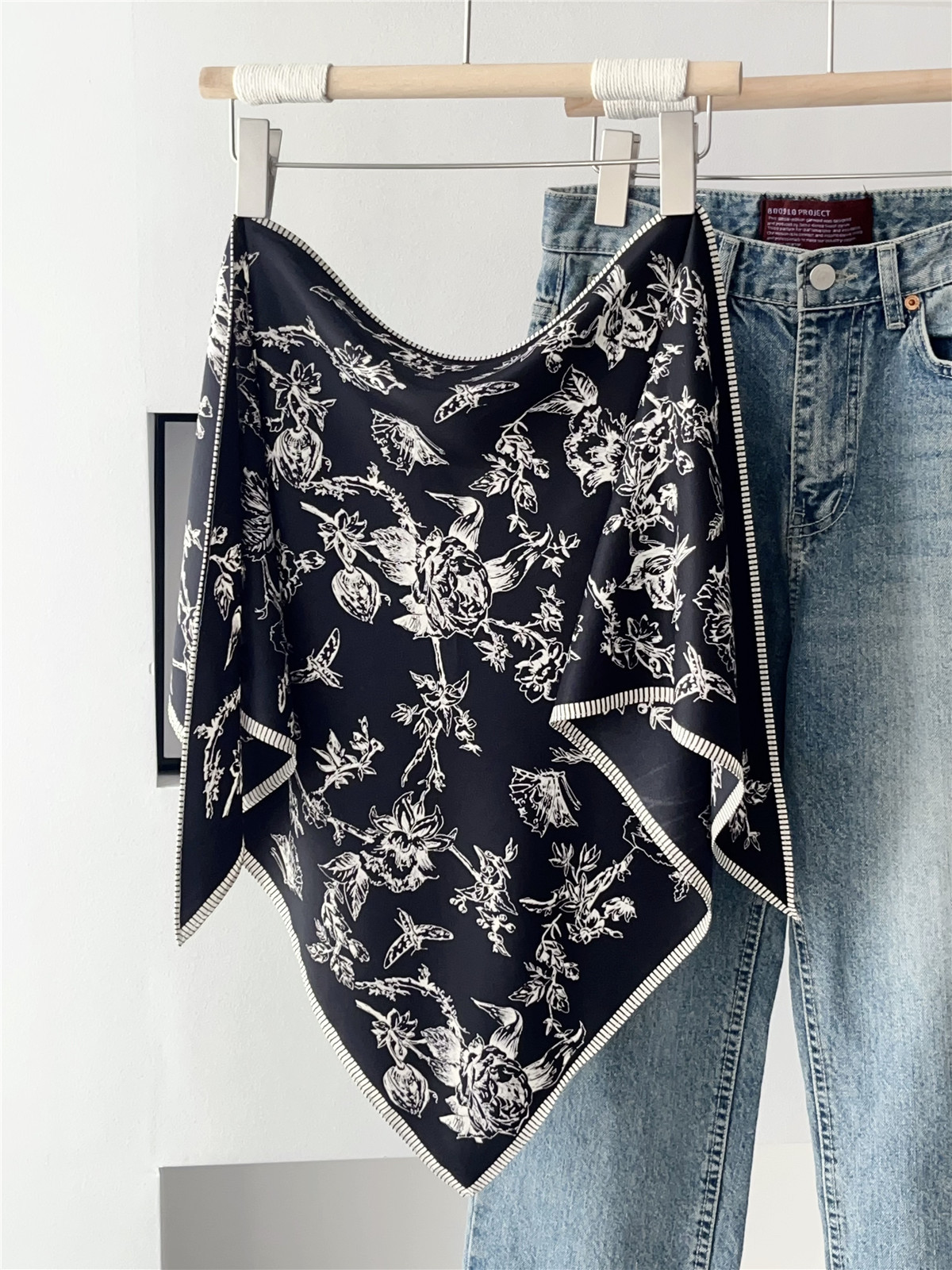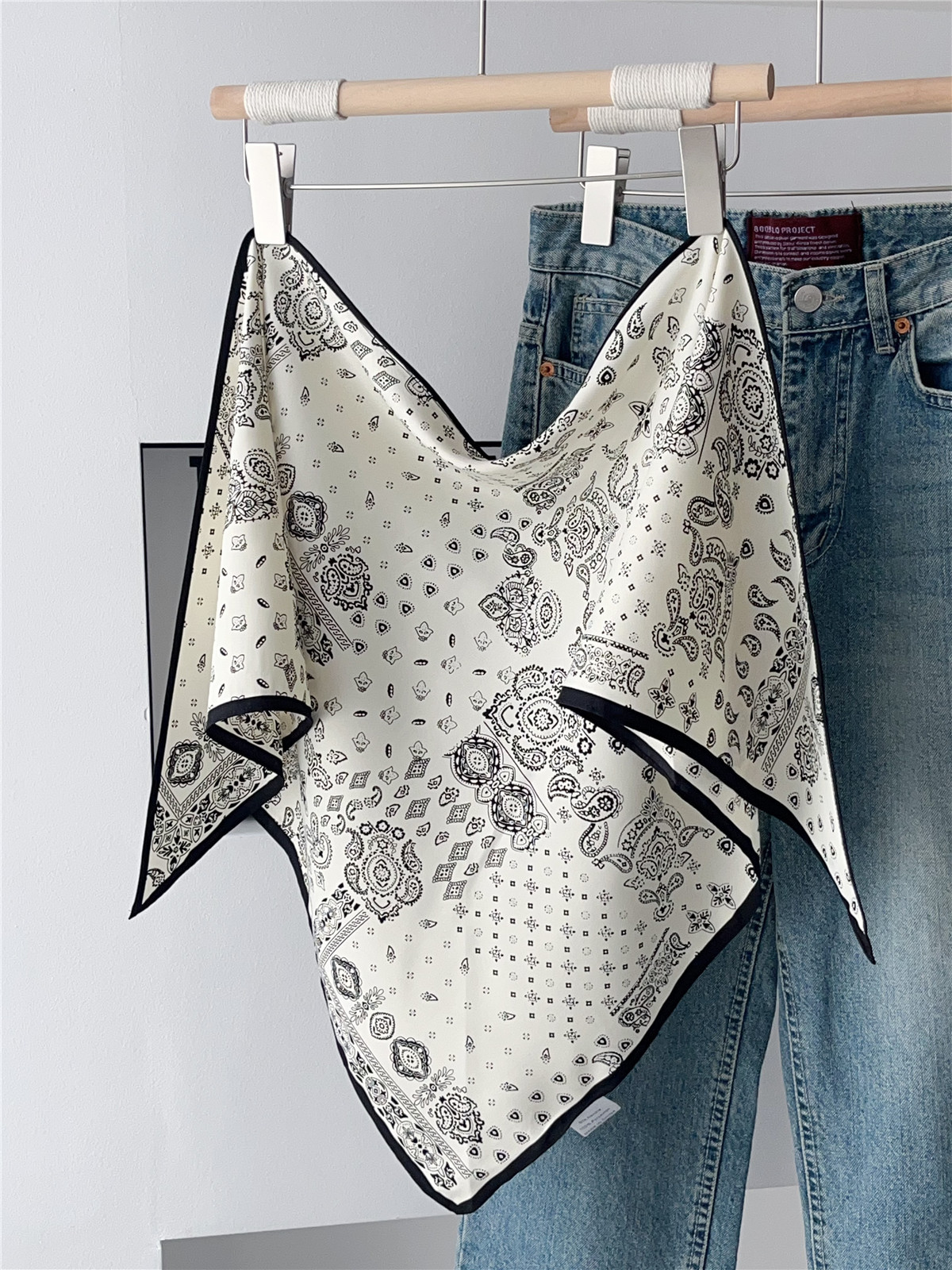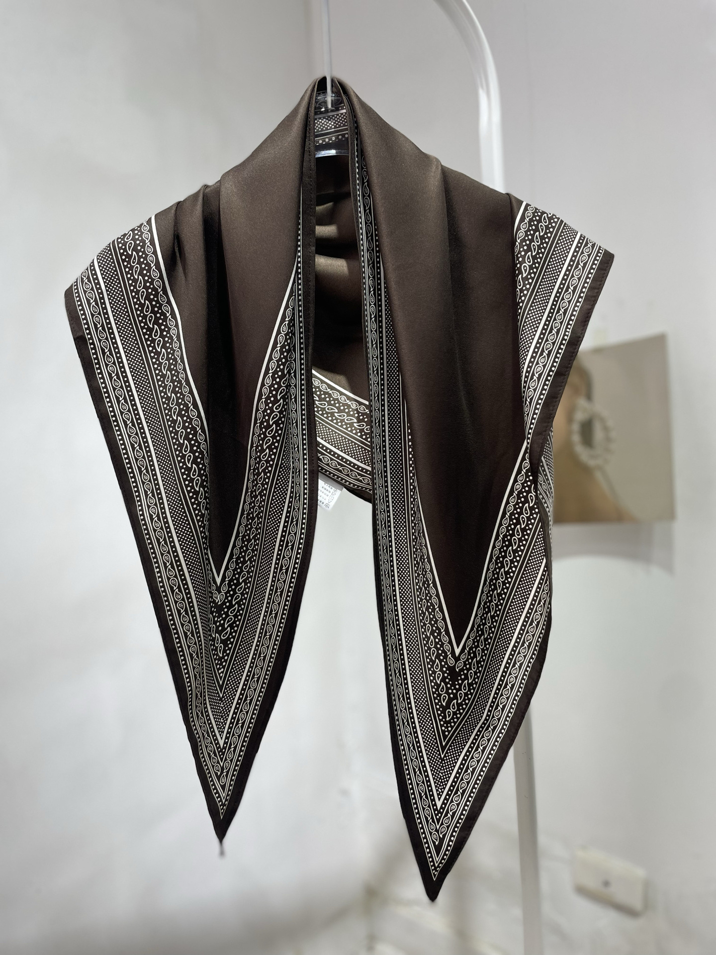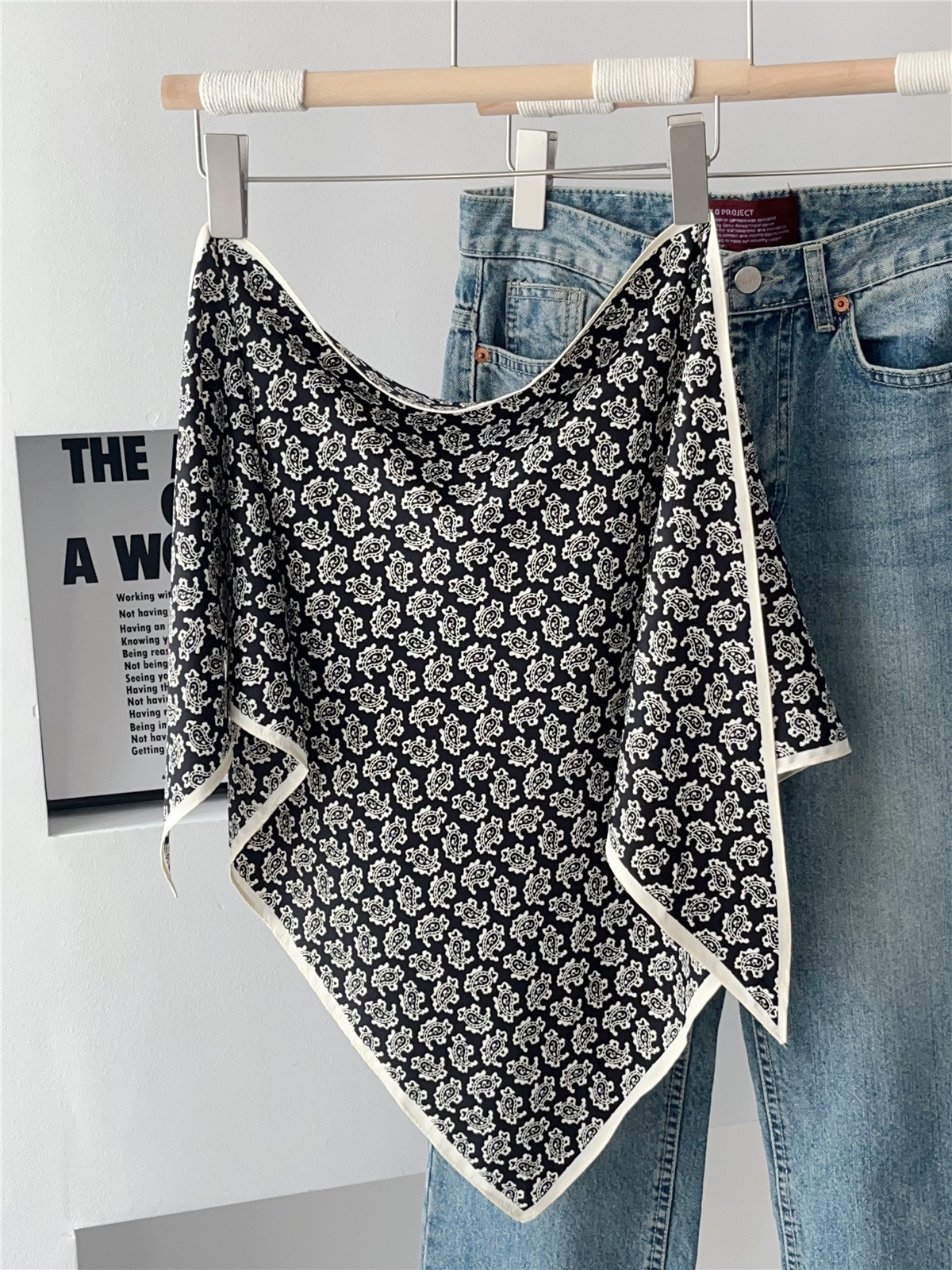 여름 분위기의 여성용 블랙 캐슈 플라워 라지 트라이앵글 스카프, 터번 장식, 여성용 맞춤형 실크 스카프, 가슴 스커트스토어 가기