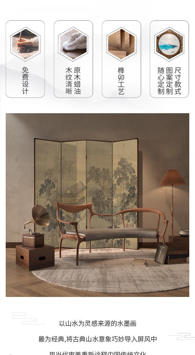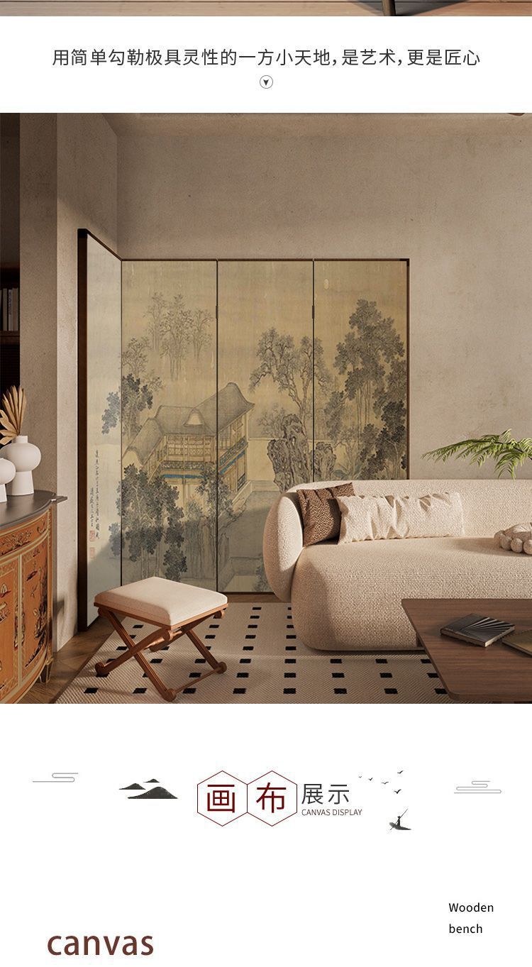 송나라의 미학 고전 풍경 중국 스타일 단단한 나무 스크린 파티션 거실 장식 접이식 모바일 찻집 B&B 차단