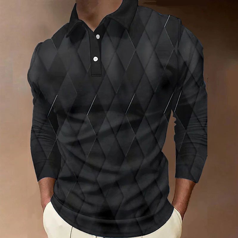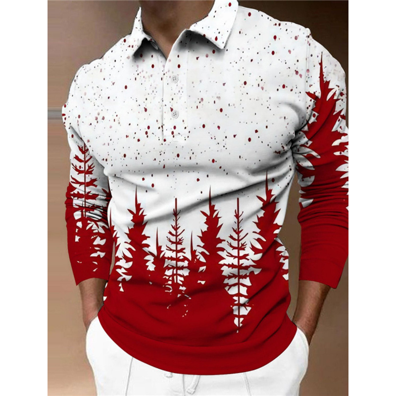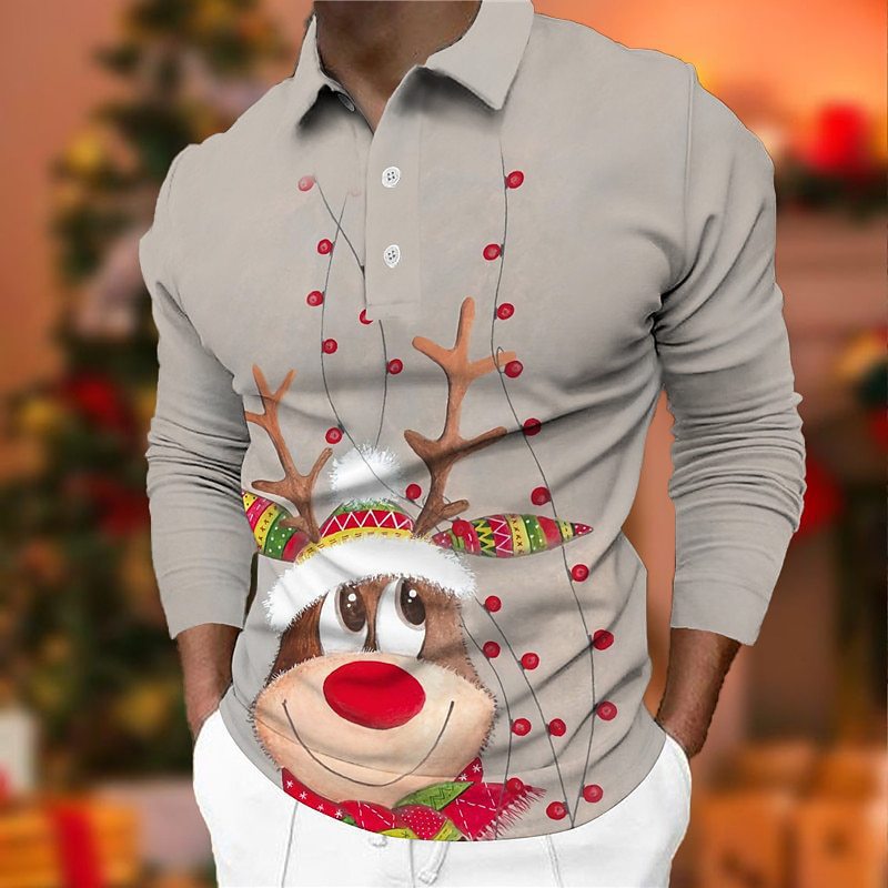 크로스보더 3D 긴팔 버튼 프린트 폴로 셔츠 라펠 남성용 크리스마스 동물 엘크 골프 셔츠 남성용