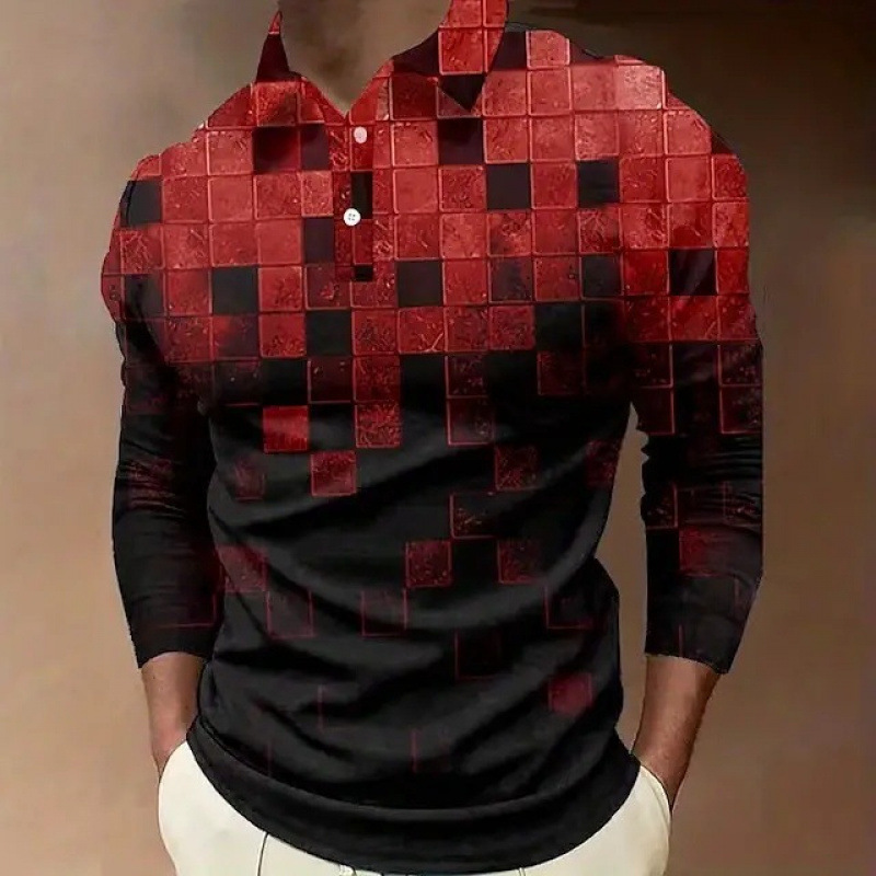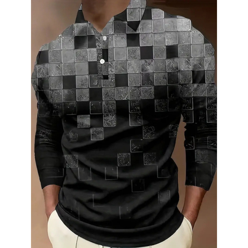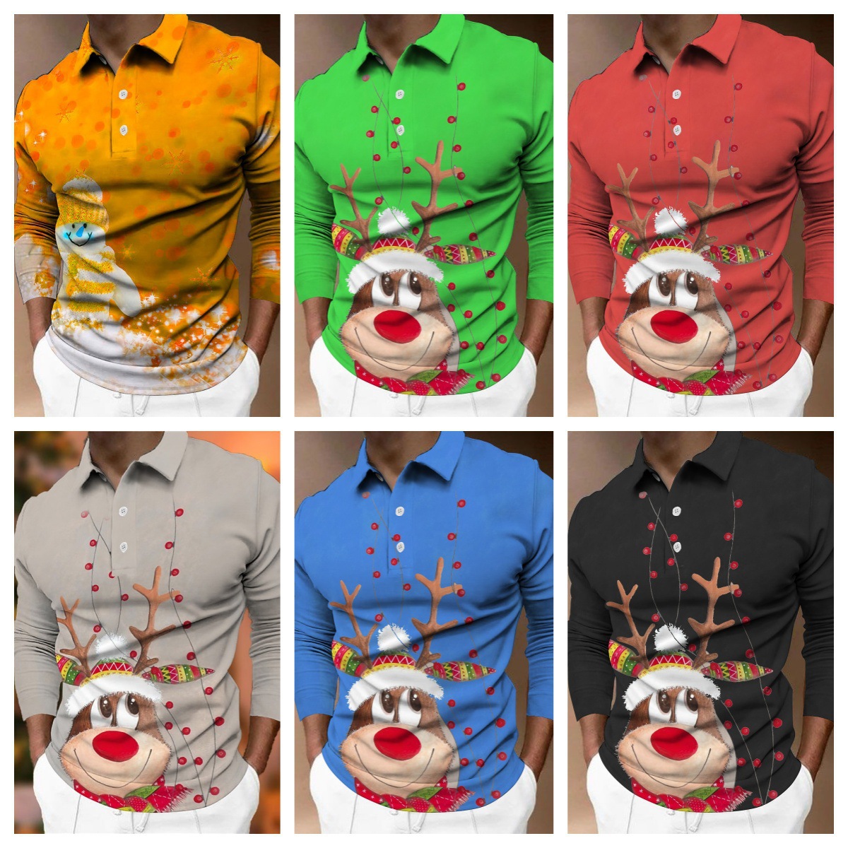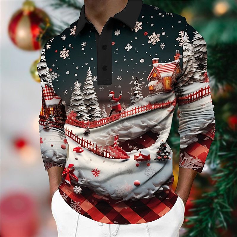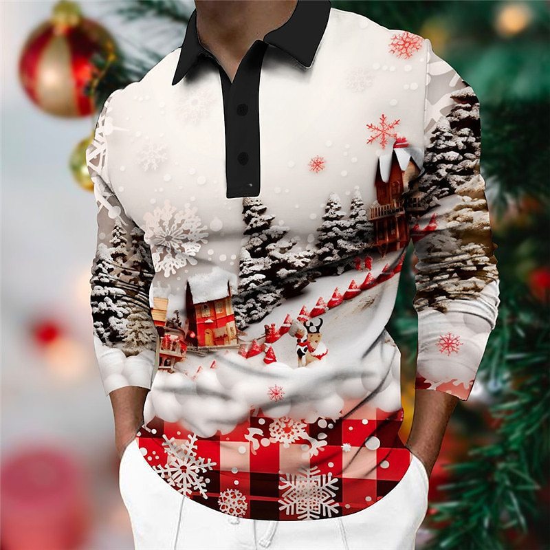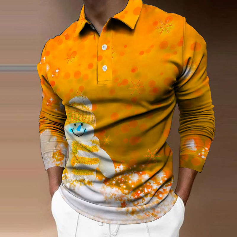 크로스보더 3D 긴팔 버튼 프린트 폴로 셔츠 라펠 남성용 크리스마스 동물 엘크 골프 셔츠 남성용스토어 가기