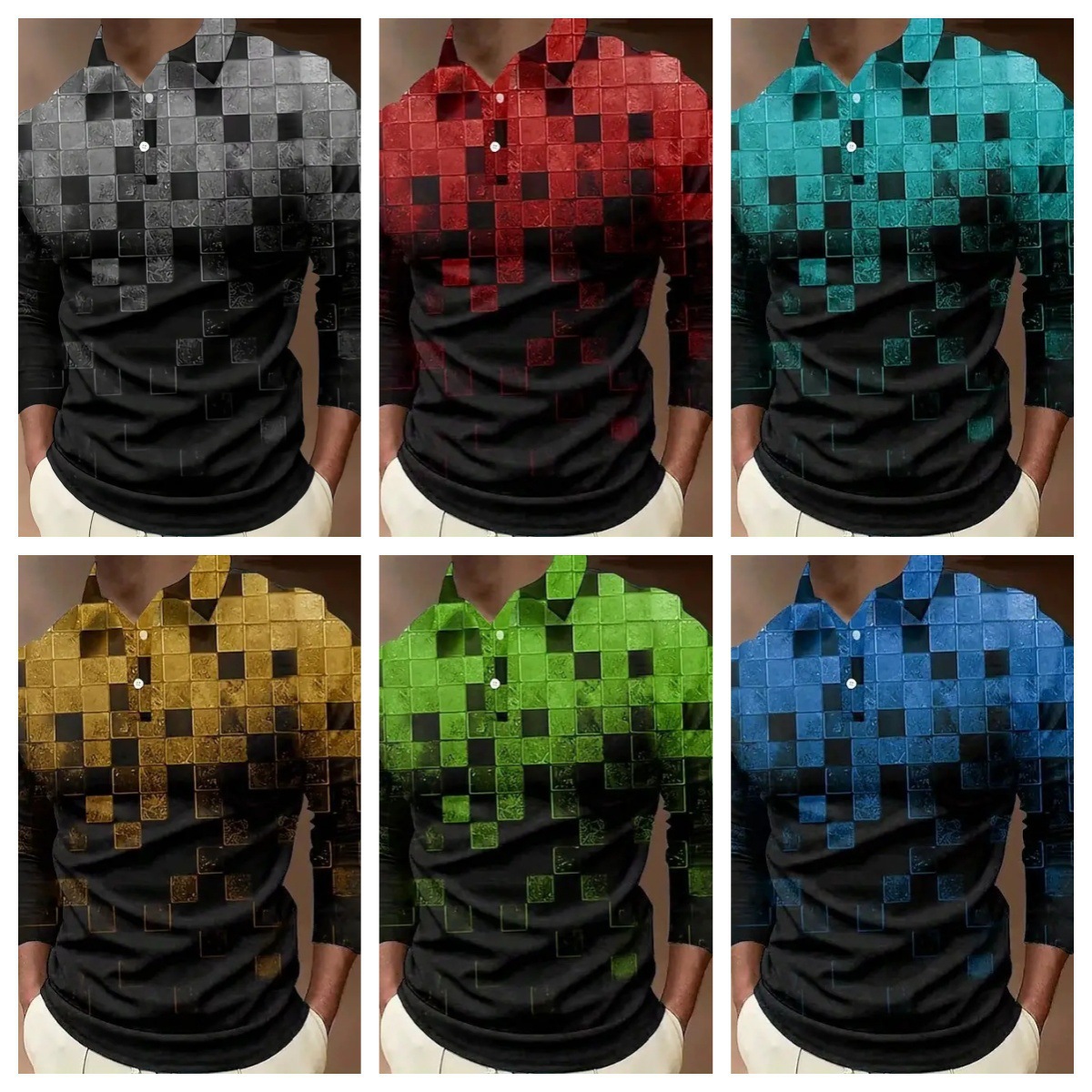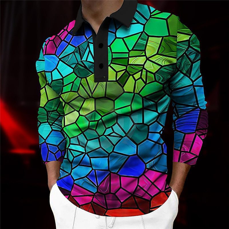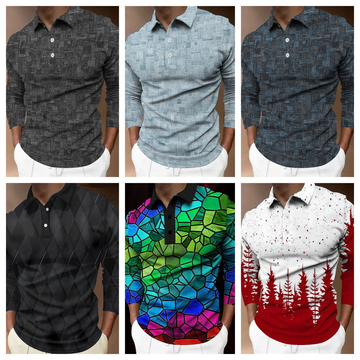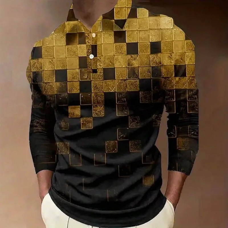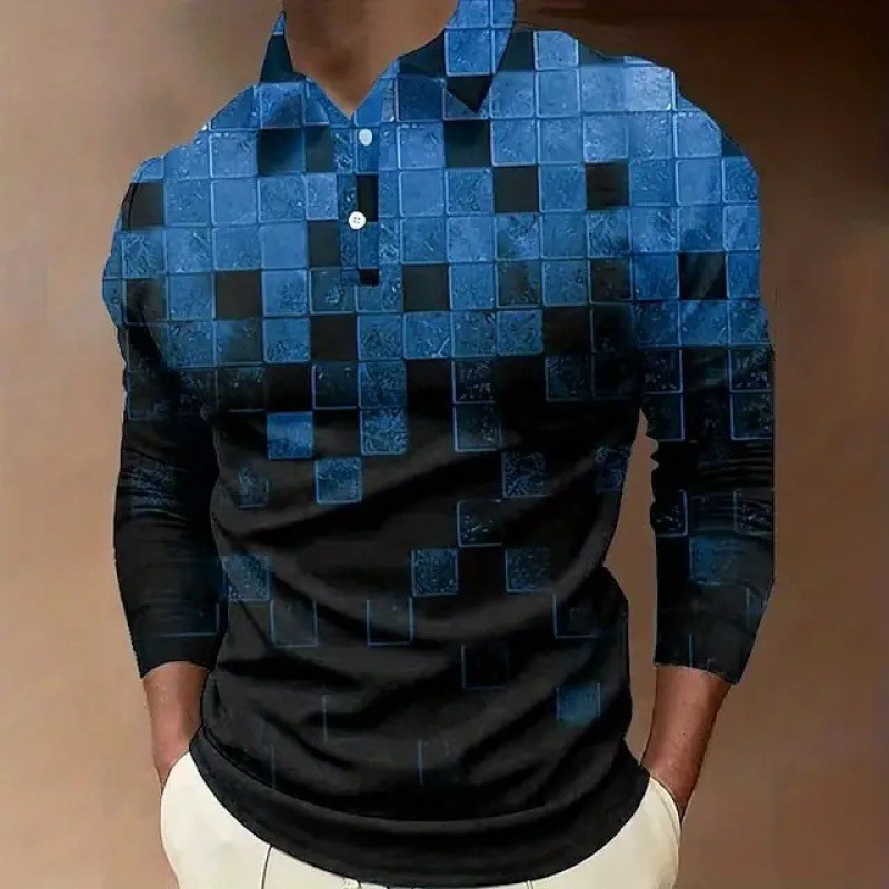 크로스보더 3D 긴팔 버튼 프린트 폴로 셔츠 라펠 남성용 크리스마스 동물 엘크 골프 셔츠 남성용스토어 가기