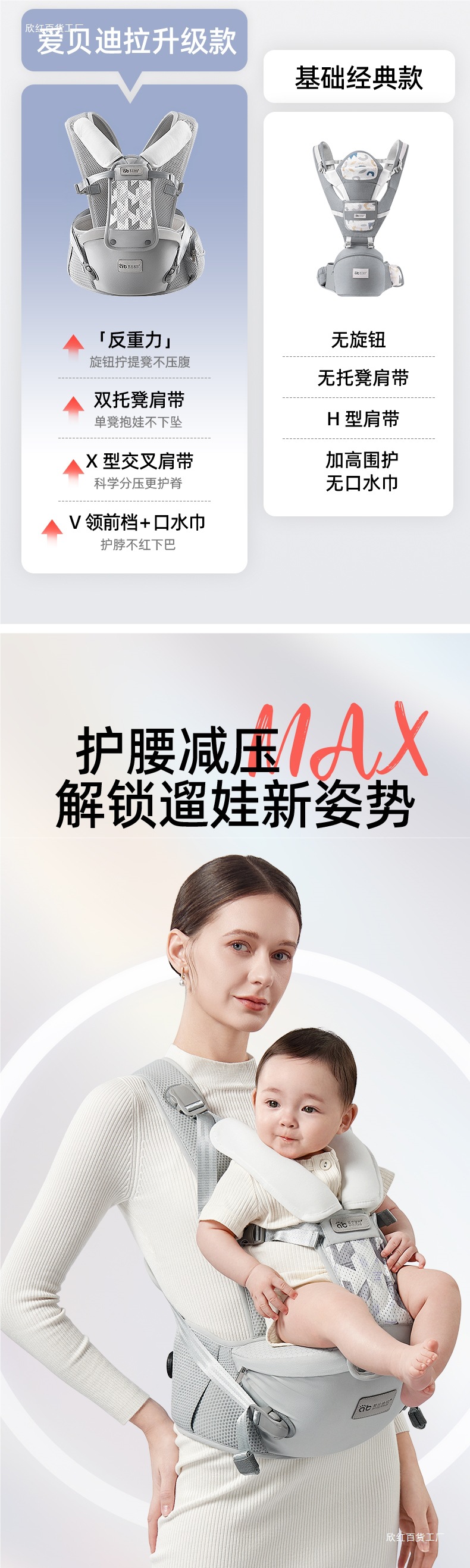 허리스툴 아기띠, 가볍고 사계절 2in1, 1개월 아기 앞안기형, 외출시 아기안기 다기능스토어 가기