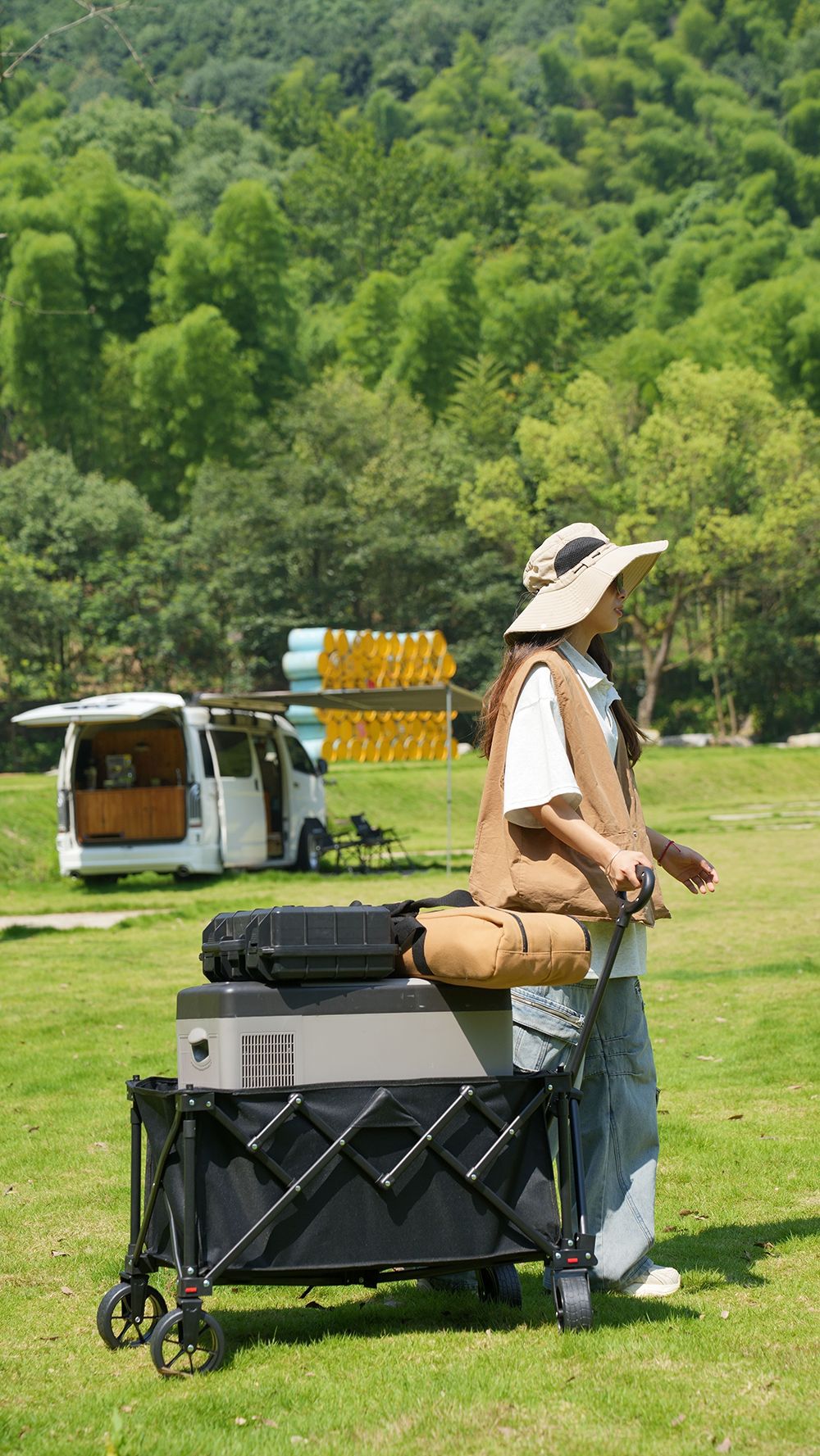 캠핑 카트 휴대용 접이식 모바일 스톨 특수 자동차 텔레스코픽 트롤리 캠핑 카트 대용량 핸드 트레일러스토어 가기