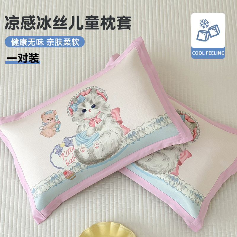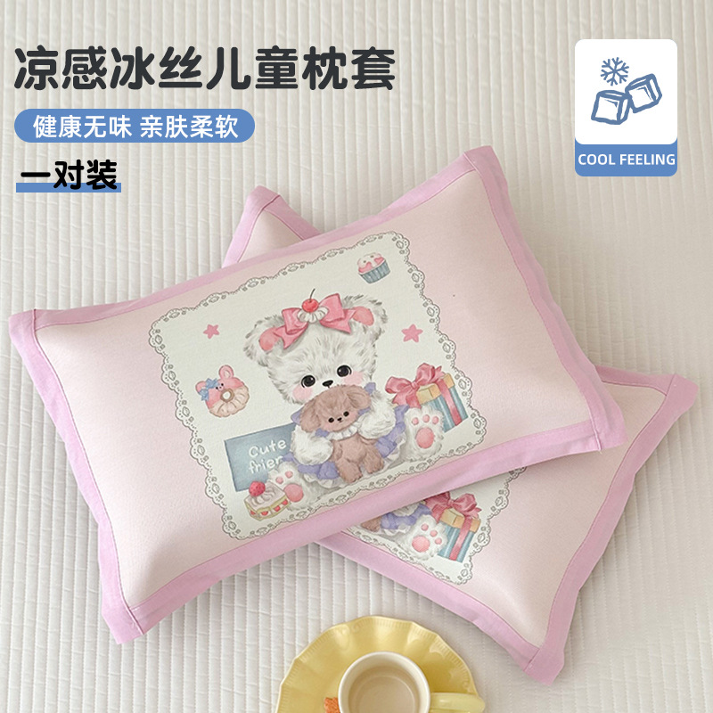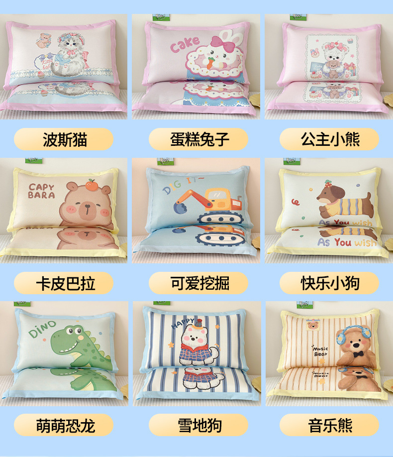 • 귀여운 발굴 [A급 시원한 아이스 실크 어린이 베개 커버] 싱글 팩